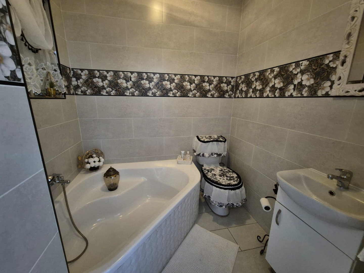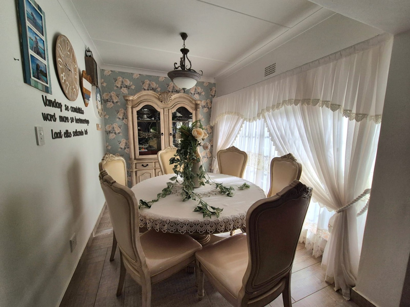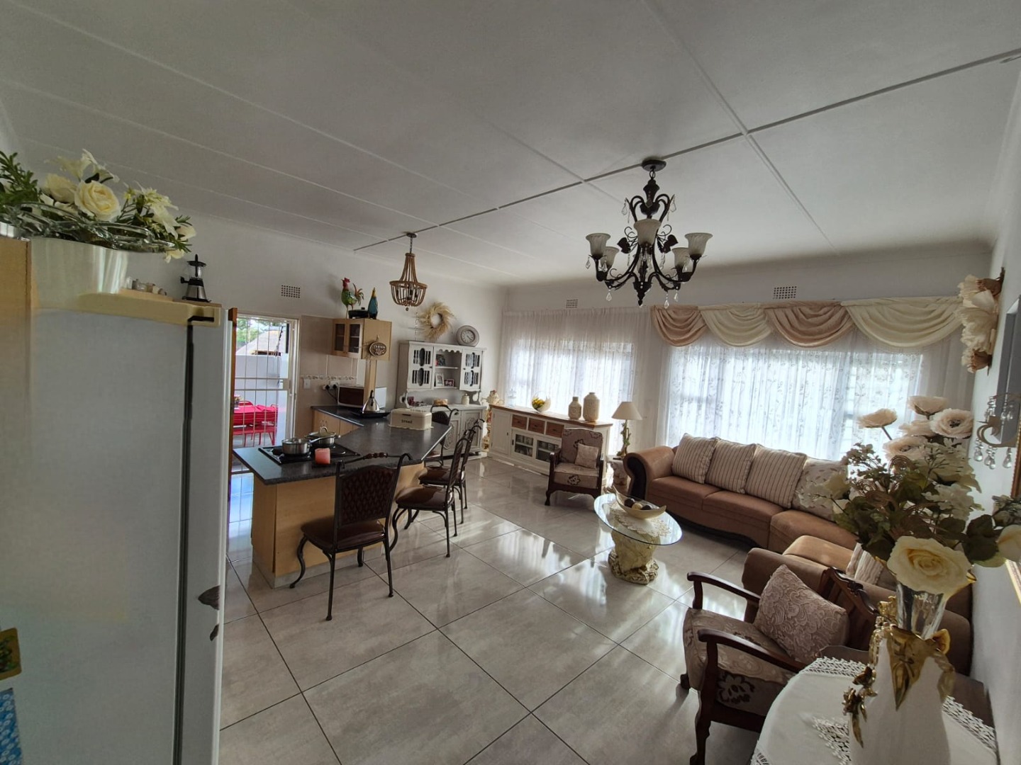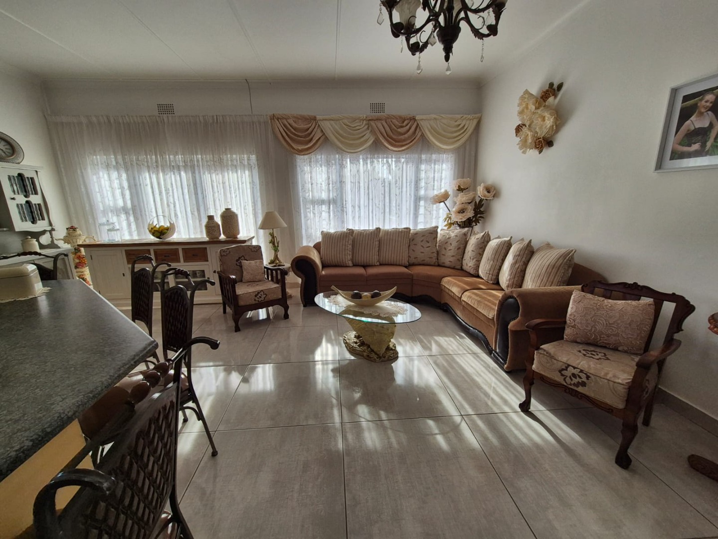 Discover this expansive family home situated on a generous 1518 sqm erf in the suburban heart of Greenhills, Randfontein. Boasting distinctive gabled architecture and a large paved courtyard, this property offers both character and ample space for comfortable living. The well-maintained lawn and charming garden, complete with a children's playhouse, create an inviting outdoor environment.