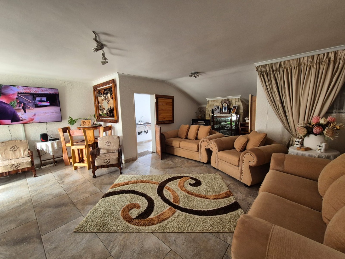 Greenhills offers a tranquil suburban lifestyle within Randfontein, known for its community feel and convenient access to local amenities. This residence presents a unique opportunity for those seeking a substantial home with diverse living spaces and robust security features.