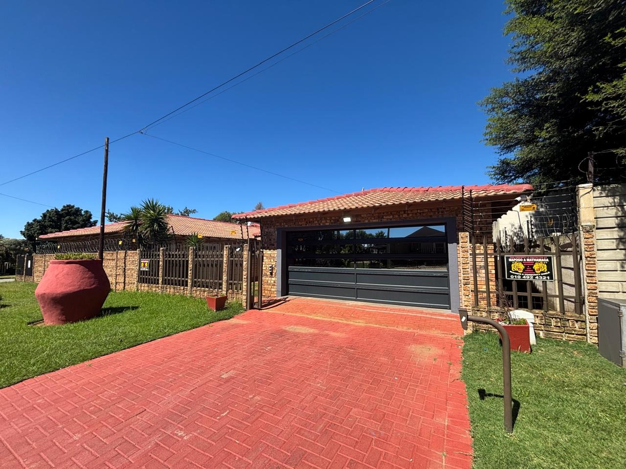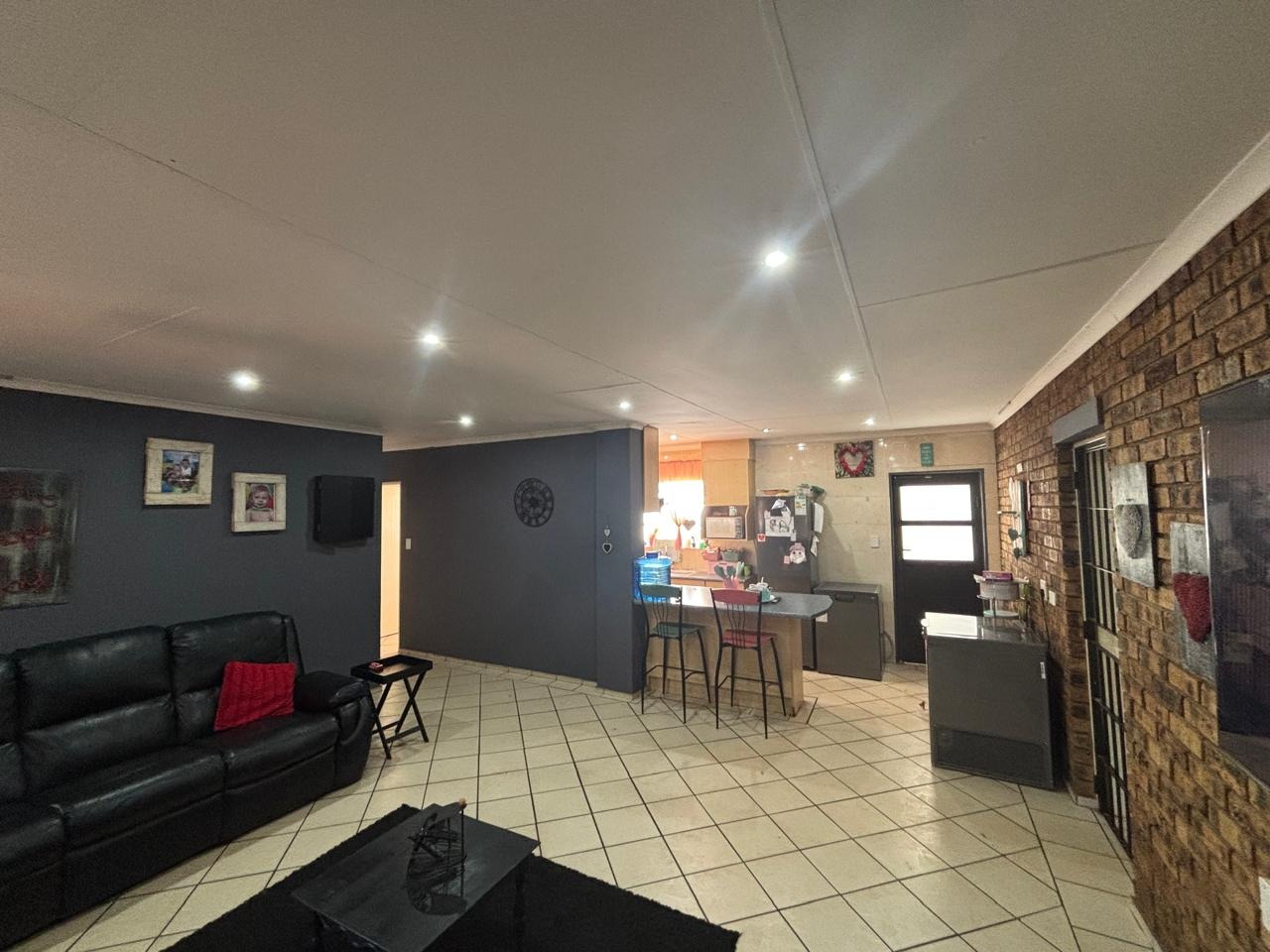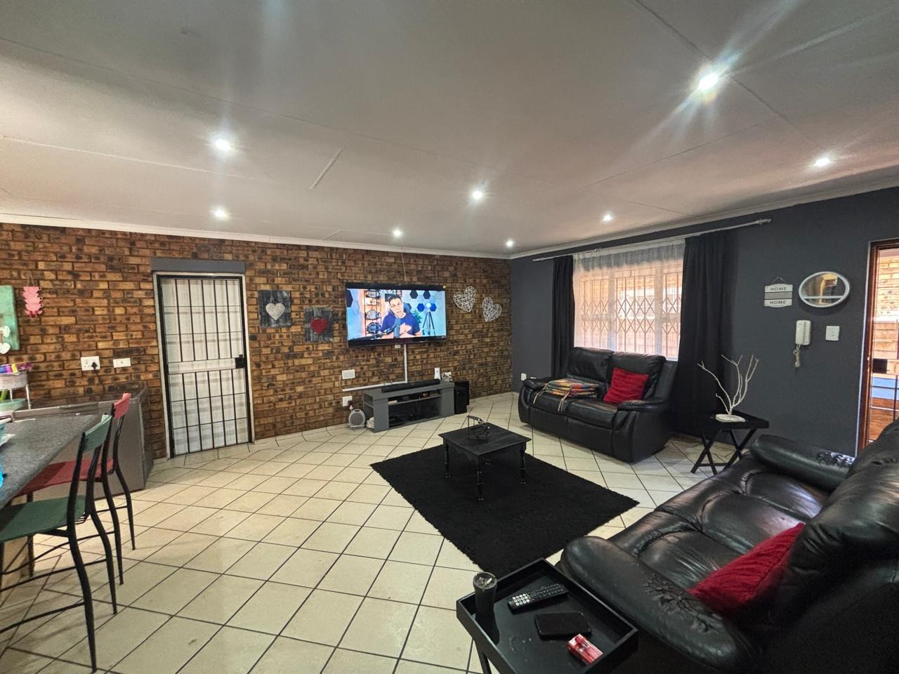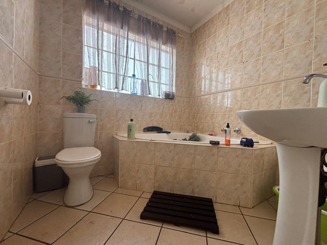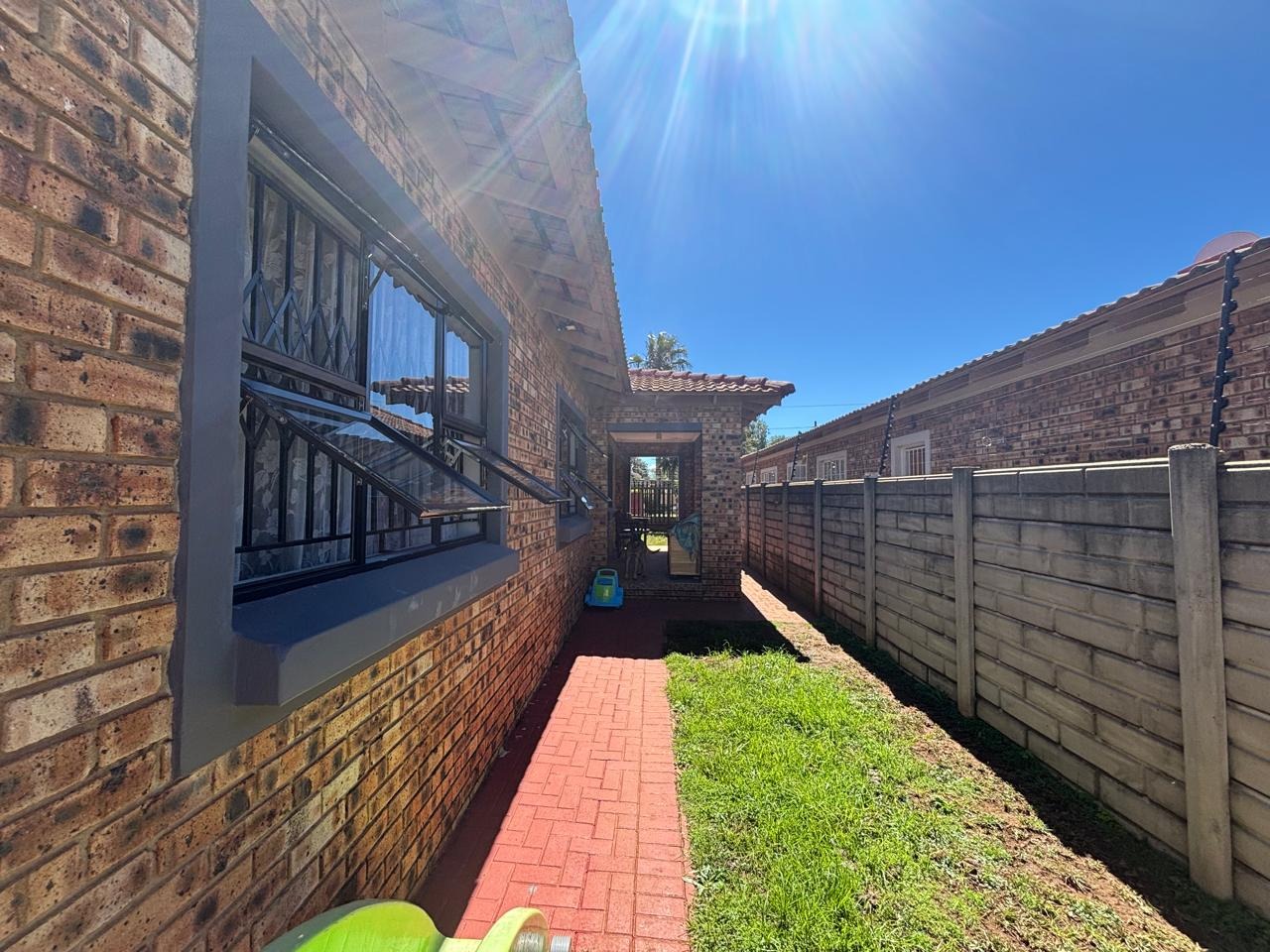 Step into this lovely 3-bedroom, 2-bathroom home nestled in the suburban heart of Helikonpark, Randfontein. From the moment you arrive, you'll appreciate the inviting kerb appeal, featuring a vibrant red brick paved driveway and a neatly manicured green lawn, all secured by robust fencing and an access gate with electric fencing for your peace of mind. The property boasts a sturdy brick exterior and a classic tiled roof, giving it a welcoming and durable feel. Inside, the home offers a comfortable and practical layout. The spacious lounge and family TV room are perfect for relaxing, complete with practical tiled floors and a distinctive exposed brick accent wall that adds a touch of character. The kitchen is a handy space with ample light wood cabinetry, generous counter space for all your cooking adventures, and easy-to-clean tiled walls and floors. You'll find essential appliances like a stove/hob and a large refrigerator, making meal prep a breeze. Plus, there's a dedicated laundry area in the double garage, which is super convenient. When it's time to unwind, the three bedrooms provide comfy retreats, each featuring built-in wooden wardrobes for plenty of storage and modern recessed lighting. The two bathrooms are fully tiled, with one being an ensuite for added privacy, and include a relaxing spa bath – perfect for soaking away the day's stresses. The property is also wheelchair-friendly, ensuring accessibility for everyone. Outdoor living is made easy with a well-maintained garden and the double garage providing secure parking. Security is a top priority here, with an alarm system, electric fencing, and burglar bars on the windows, giving you that extra layer of safety. You'll also enjoy modern conveniences like fibre connectivity, and yes, your furry friends are welcome too! Helikonpark offers a friendly suburban lifestyle in Randfontein, South Africa, making it a great spot to call home. Key Features: * 3 Bedrooms, 2 Bathrooms (1 En-suite) * Double Garage with Laundry Facilities * Spacious Lounge & Family TV Room * Practical Tiled Floors Throughout * Inviting Red Brick Paved Driveway * Secure with Alarm, Electric Fencing & Burglar Bars * Fibre Ready * Wheelchair Friendly * Pets Allowed * Spa Bath for Relaxation