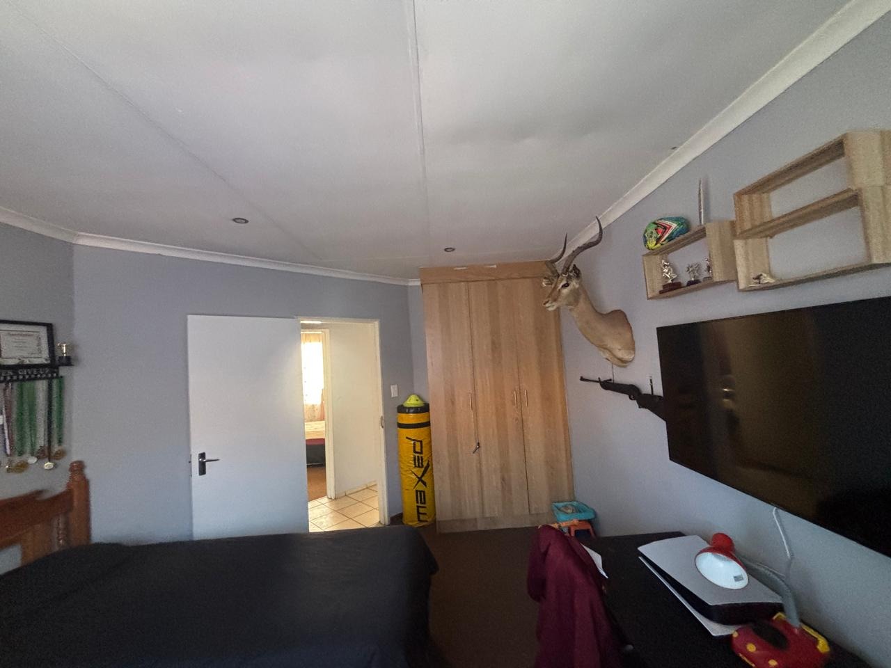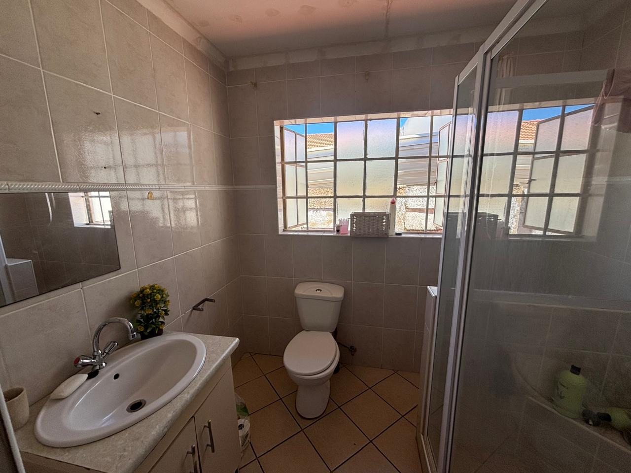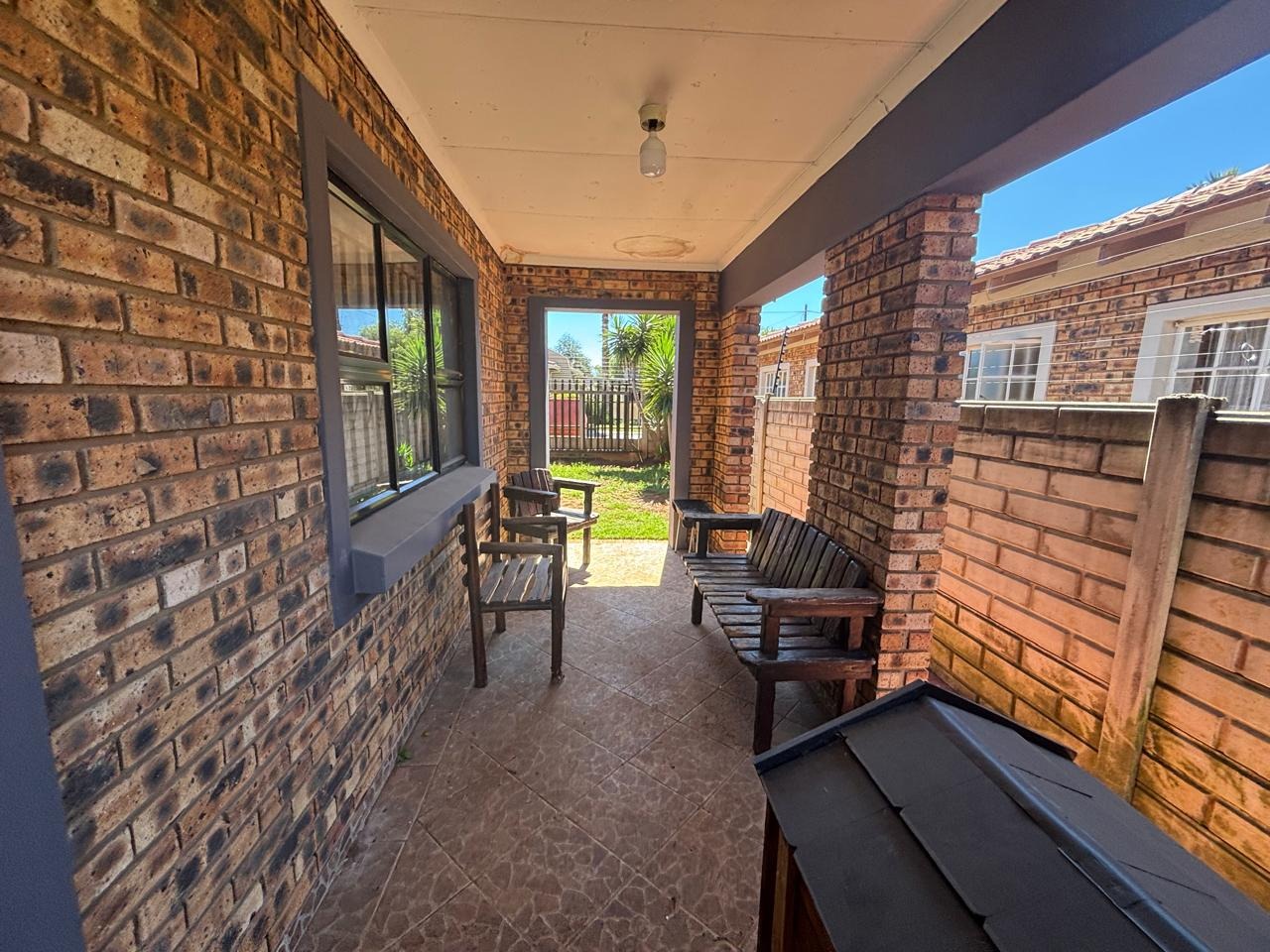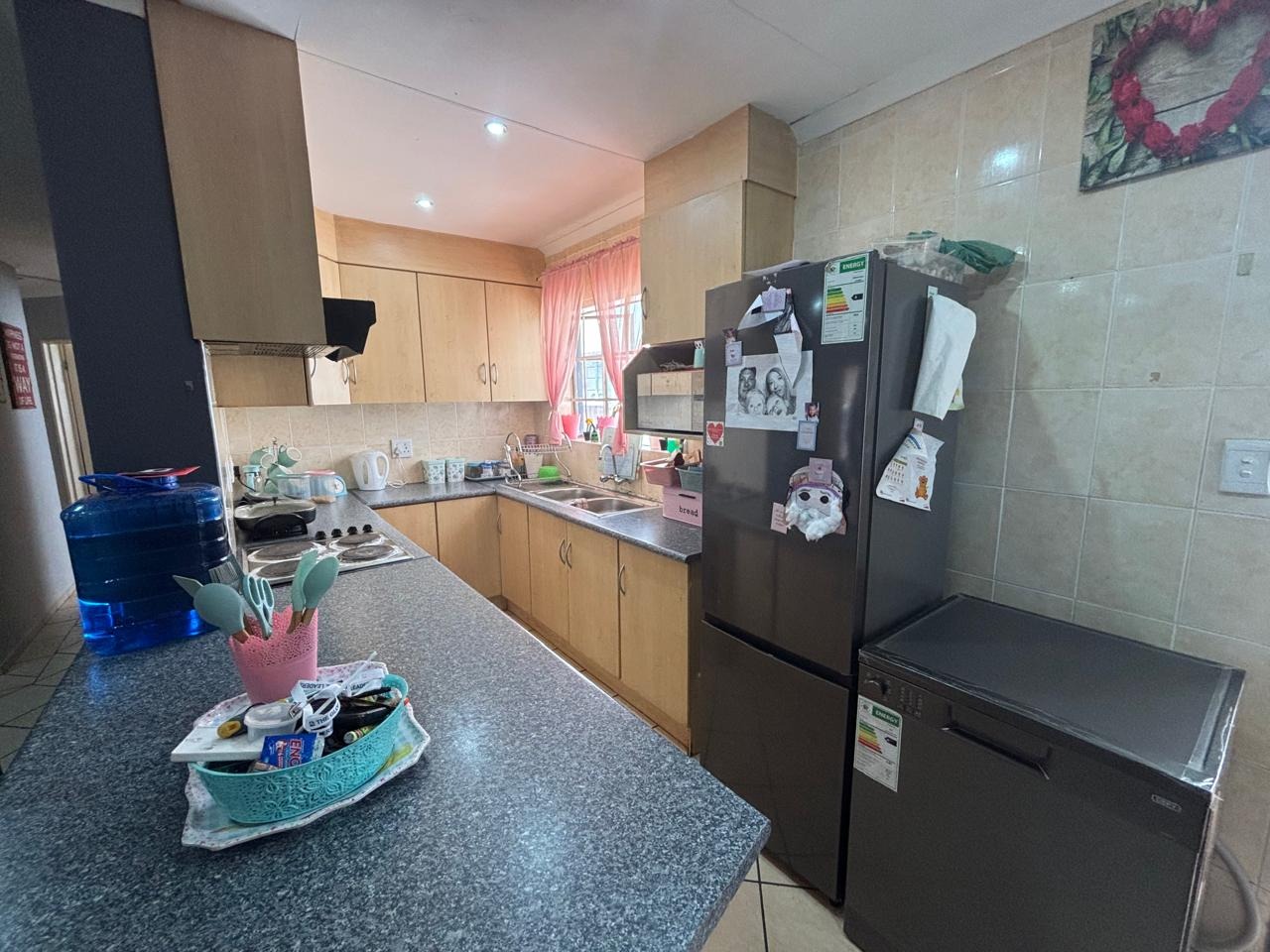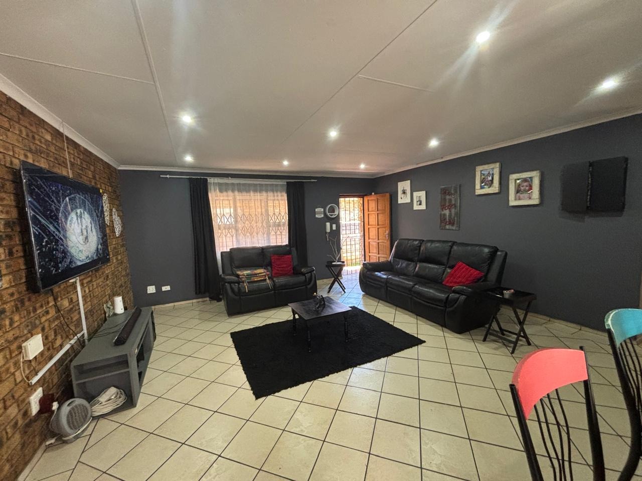 Step into this lovely 3-bedroom, 2-bathroom home nestled in the suburban heart of Helikonpark, Randfontein. From the moment you arrive, you'll appreciate the inviting kerb appeal, featuring a vibrant red brick paved driveway and a neatly manicured green lawn, all secured by robust fencing and an access gate with electric fencing for your peace of mind. The property boasts a sturdy brick exterior and a classic tiled roof, giving it a welcoming and durable feel. Inside, the home offers a comfortable and practical layout. The spacious lounge and family TV room are perfect for relaxing, complete with practical tiled floors and a distinctive exposed brick accent wall that adds a touch of character. The kitchen is a handy space with ample light wood cabinetry, generous counter space for all your cooking adventures, and easy-to-clean tiled walls and floors. You'll find essential appliances like a stove/hob and a large refrigerator, making meal prep a breeze. Plus, there's a dedicated laundry area in the double garage, which is super convenient. When it's time to unwind, the three bedrooms provide comfy retreats, each featuring built-in wooden wardrobes for plenty of storage and modern recessed lighting. The two bathrooms are fully tiled, with one being an ensuite for added privacy, and include a relaxing spa bath – perfect for soaking away the day's stresses. The property is also wheelchair-friendly, ensuring accessibility for everyone. Outdoor living is made easy with a well-maintained garden and the double garage providing secure parking. Security is a top priority here, with an alarm system, electric fencing, and burglar bars on the windows, giving you that extra layer of safety. You'll also enjoy modern conveniences like fibre connectivity, and yes, your furry friends are welcome too! Helikonpark offers a friendly suburban lifestyle in Randfontein, South Africa, making it a great spot to call home. Key Features: * 3 Bedrooms, 2 Bathrooms (1 En-suite) * Double Garage with Laundry Facilities * Spacious Lounge & Family TV Room * Practical Tiled Floors Throughout * Inviting Red Brick Paved Driveway * Secure with Alarm, Electric Fencing & Burglar Bars * Fibre Ready * Wheelchair Friendly * Pets Allowed * Spa Bath for Relaxation