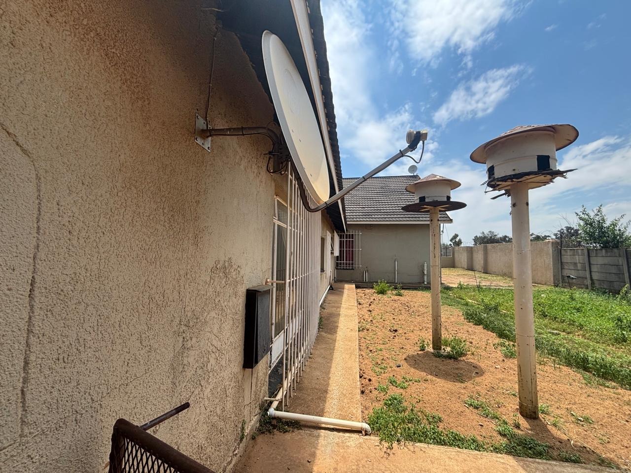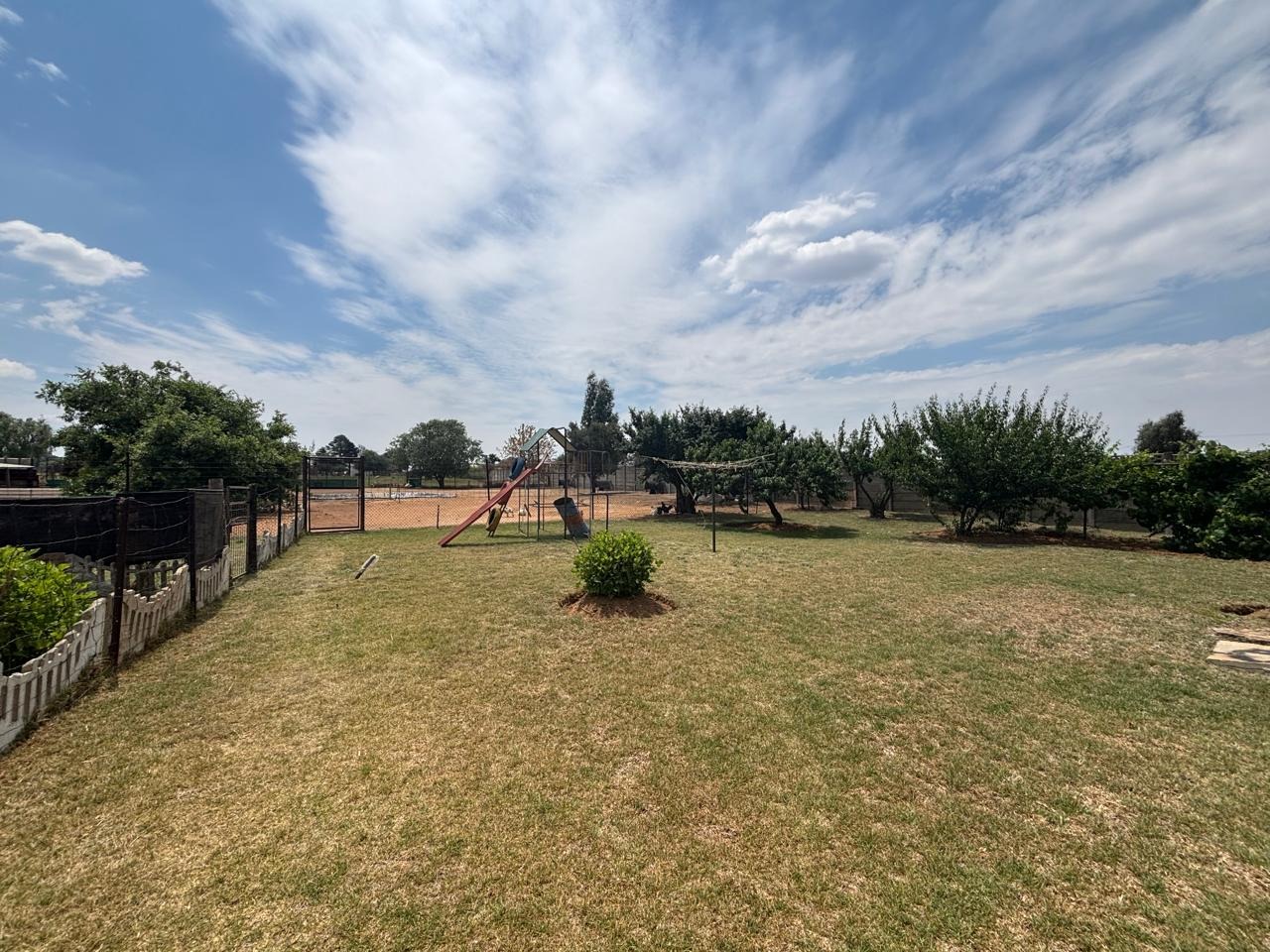 Discover an exceptional residential offering in the serene Hillside area of Randfontein, South Africa. This expansive property, boasting a substantial 17152 sqm erf and an impressive 1000 sqm under roof, presents a unique opportunity for spacious living with robust security. The exterior features a highly secure perimeter, defined by tall concrete walls, security wire, and a robust spiked access gate, ensuring privacy and peace of mind. A long, paved driveway leads into the property, flanked by mature trees that provide natural shade and a sense of established tranquility. Inside, the generously proportioned home offers five comfortable bedrooms and three well-appointed bathrooms, including two en-suite facilities, providing ample space for family and guests. The interior layout features two inviting lounges, a dedicated dining room, and a functional kitchen, all designed with an open-plan flow. Notable interior details include charming wood ceilings and sliding doors that enhance the sense of space and light. For entertainment, the property includes a built-in bar and a dedicated braai room, perfect for social gatherings. Outdoor living is a highlight, with a refreshing swimming pool and a deck for relaxation. The property also features a lapa, ideal for alfresco dining and entertaining. Practical amenities include two garages and four additional parking spaces, ensuring ample vehicle accommodation. Further enhancing convenience are staff quarters, a dedicated laundry room, and ample storage facilities. The expansive garden, though currently featuring some dry grass areas, offers significant potential for landscaping and is pet-friendly. Sustainability is addressed with a borehole and water tanks, providing a degree of water independence. Security is paramount, with an alarm system, access gate, comprehensive fencing, and burglar bars throughout the home. This property is ideal for those seeking a secure, spacious lifestyle reminiscent of country living within a convenient Randfontein location. Key Features: * 5 Bedrooms, 3 Bathrooms (2 En-suite) * 17152 sqm Erf, 1000 sqm Floor Size * 2 Lounges, Dining Room, Kitchen * Swimming Pool, Deck, Lapa, Braai Room, Built-in Bar * 2 Garages, 4 Parking Spaces * Staff Quarters, Laundry, Storage * Borehole, Water Tanks * Robust Security: Alarm, Access Gate, Fencing, Burglar Bars * Open Plan Living, Wood Ceilings, Sliding Doors