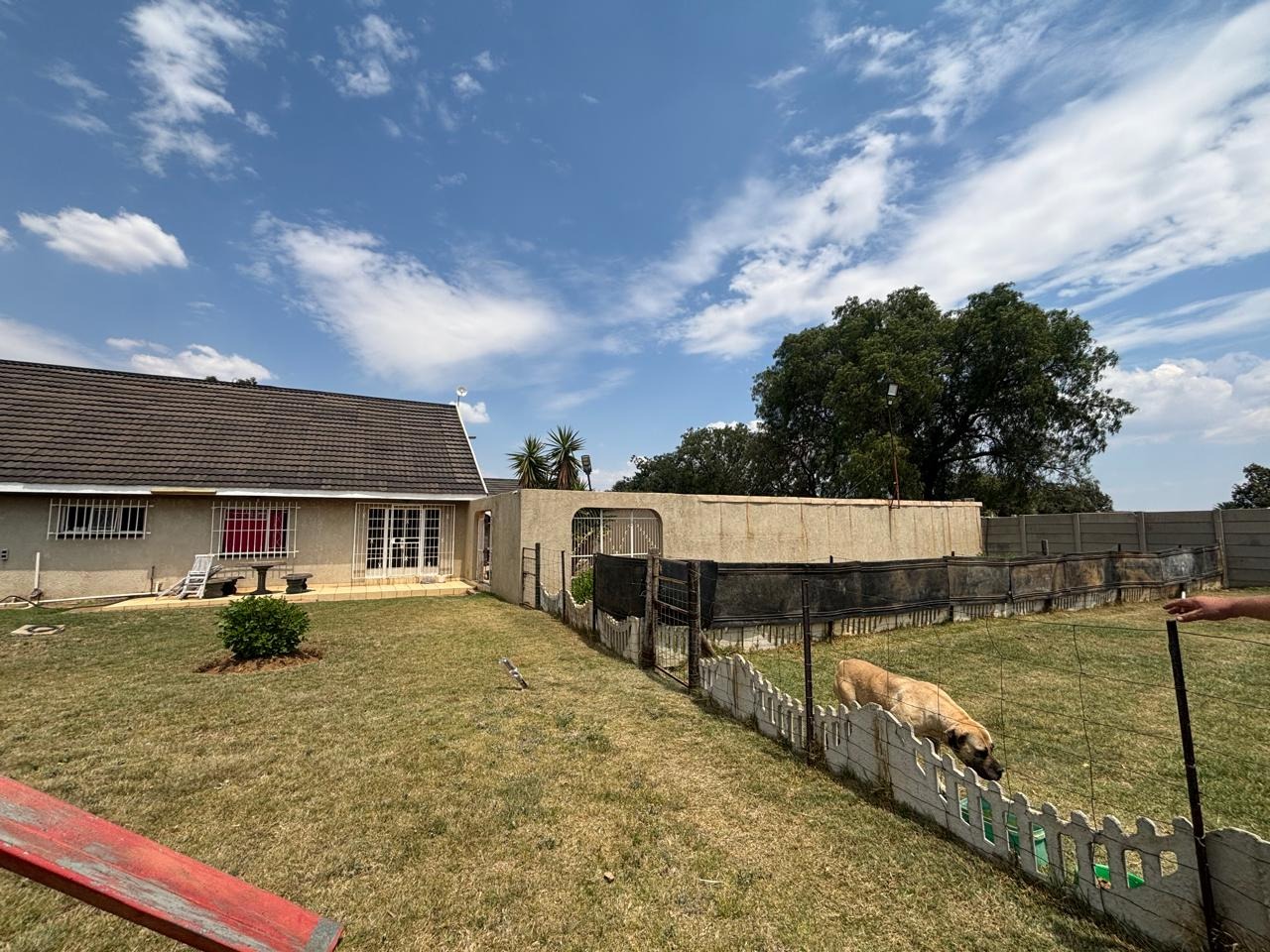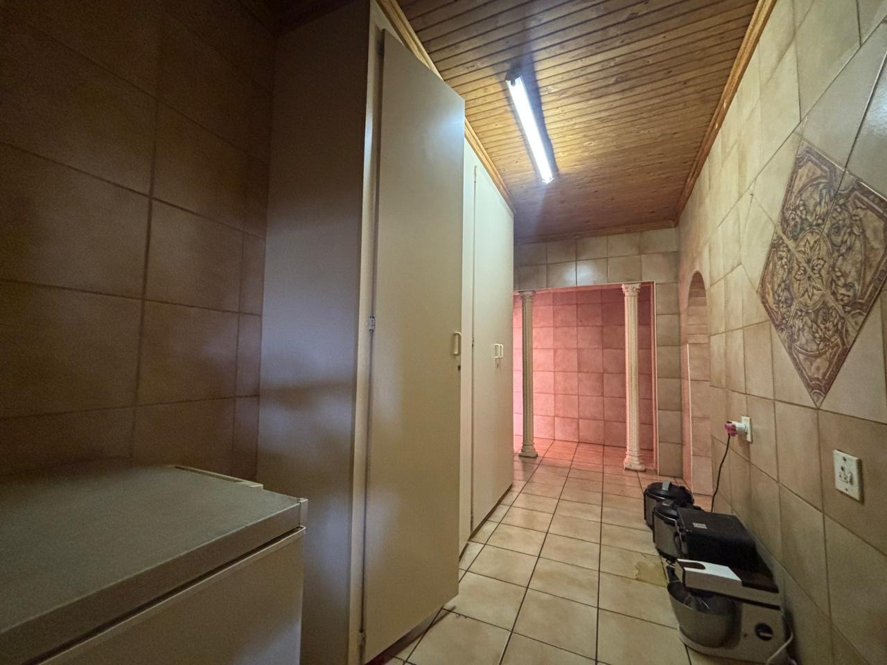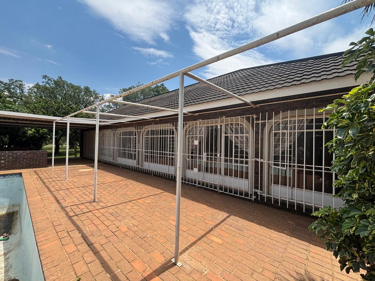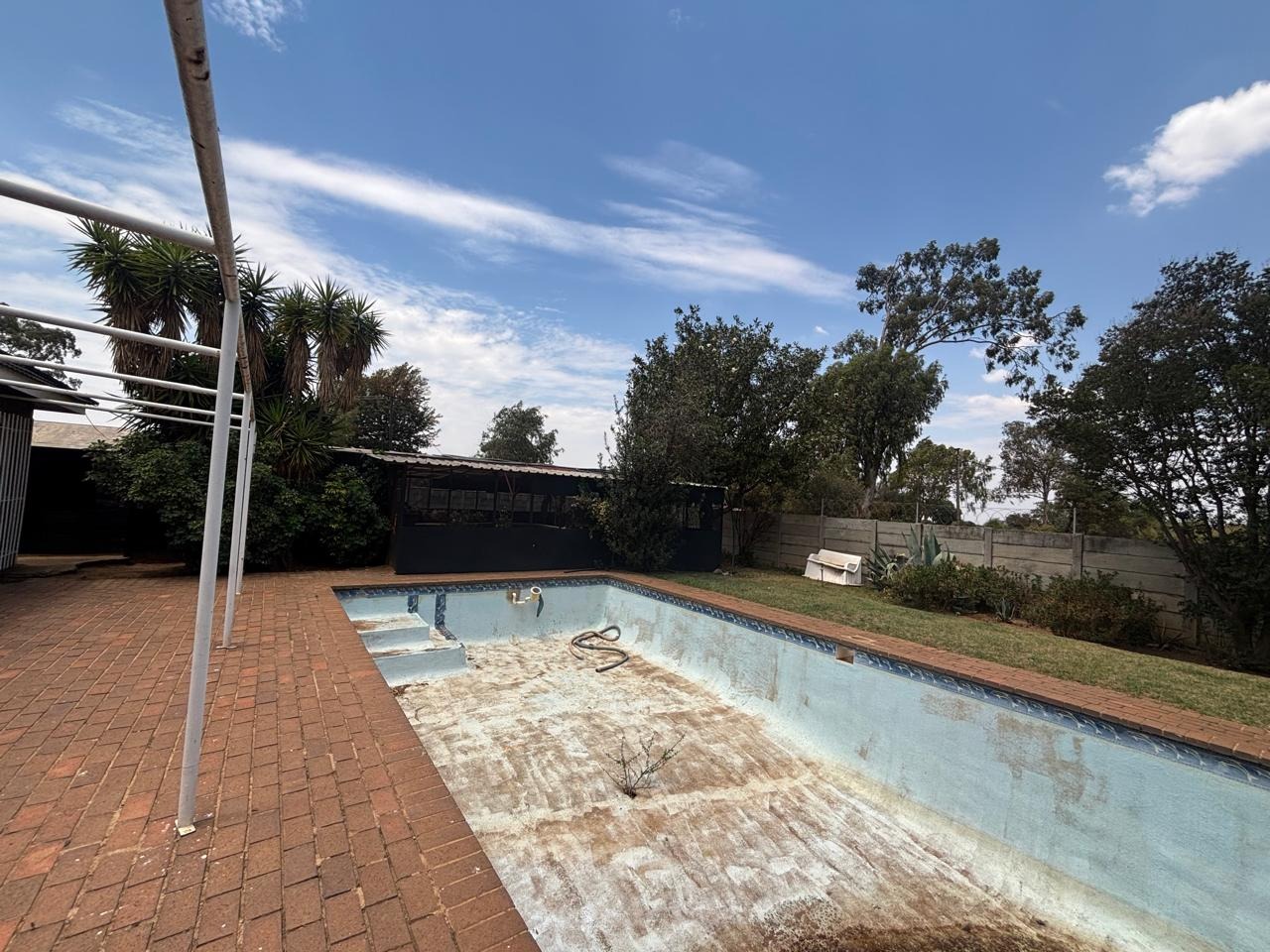 Discover an exceptional residential offering in the serene Hillside area of Randfontein, South Africa. This expansive property, boasting a substantial 17152 sqm erf and an impressive 1000 sqm under roof, presents a unique opportunity for spacious living with robust security. The exterior features a highly secure perimeter, defined by tall concrete walls, security wire, and a robust spiked access gate, ensuring privacy and peace of mind. A long, paved driveway leads into the property, flanked by mature trees that provide natural shade and a sense of established tranquility. Inside, the generously proportioned home offers five comfortable bedrooms and three well-appointed bathrooms, including two en-suite facilities, providing ample space for family and guests. The interior layout features two inviting lounges, a dedicated dining room, and a functional kitchen, all designed with an open-plan flow. Notable interior details include charming wood ceilings and sliding doors that enhance the sense of space and light. For entertainment, the property includes a built-in bar and a dedicated braai room, perfect for social gatherings. Outdoor living is a highlight, with a refreshing swimming pool and a deck for relaxation. The property also features a lapa, ideal for alfresco dining and entertaining. Practical amenities include two garages and four additional parking spaces, ensuring ample vehicle accommodation. Further enhancing convenience are staff quarters, a dedicated laundry room, and ample storage facilities. The expansive garden, though currently featuring some dry grass areas, offers significant potential for landscaping and is pet-friendly. Sustainability is addressed with a borehole and water tanks, providing a degree of water independence. Security is paramount, with an alarm system, access gate, comprehensive fencing, and burglar bars throughout the home. This property is ideal for those seeking a secure, spacious lifestyle reminiscent of country living within a convenient Randfontein location. Key Features: * 5 Bedrooms, 3 Bathrooms (2 En-suite) * 17152 sqm Erf, 1000 sqm Floor Size * 2 Lounges, Dining Room, Kitchen * Swimming Pool, Deck, Lapa, Braai Room, Built-in Bar * 2 Garages, 4 Parking Spaces * Staff Quarters, Laundry, Storage * Borehole, Water Tanks * Robust Security: Alarm, Access Gate, Fencing, Burglar Bars * Open Plan Living, Wood Ceilings, Sliding Doors