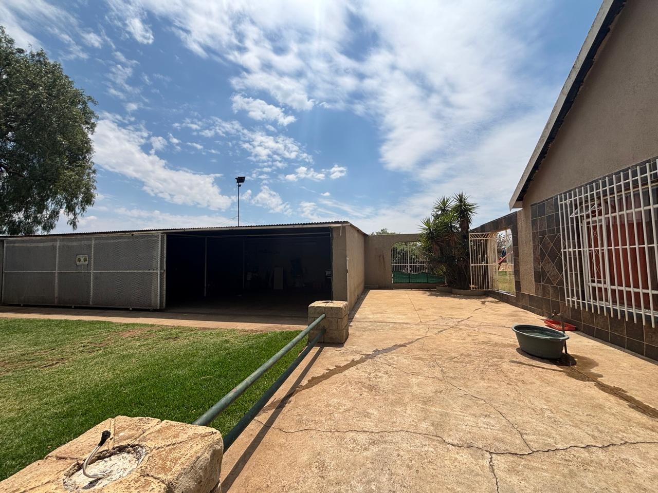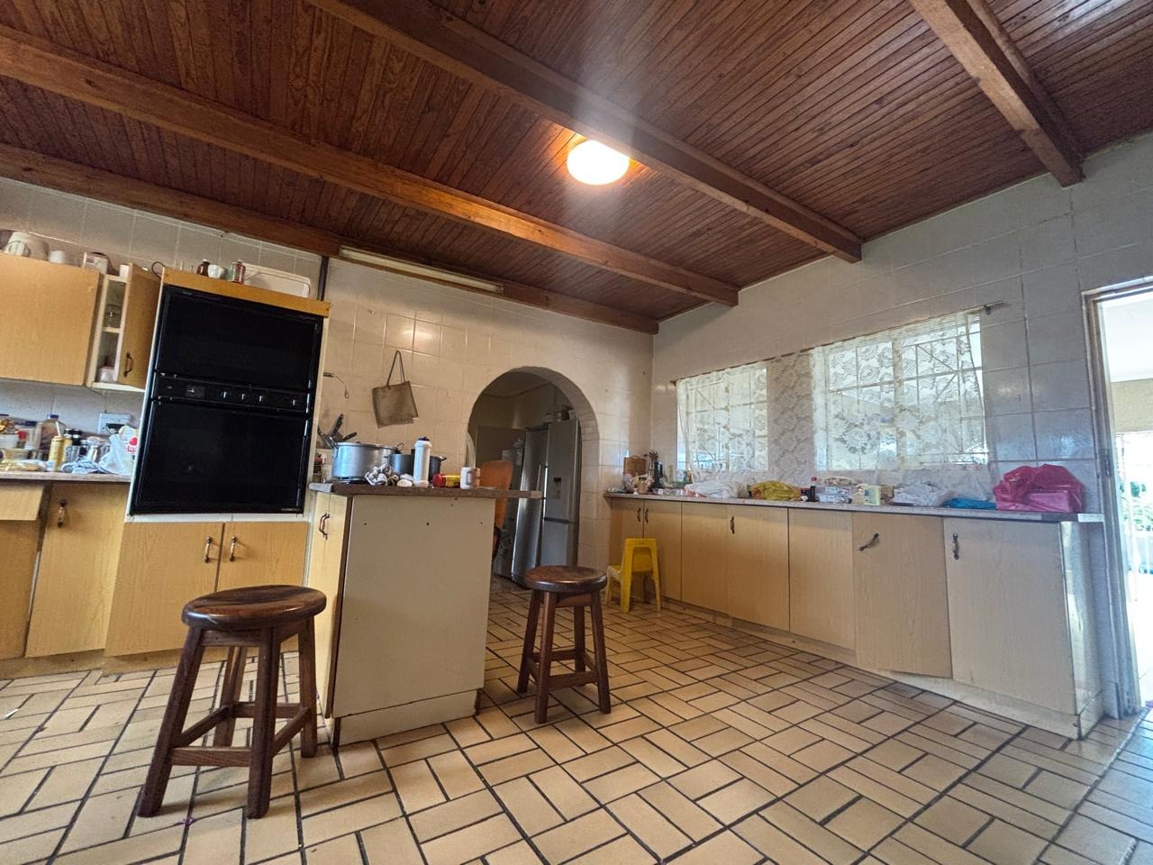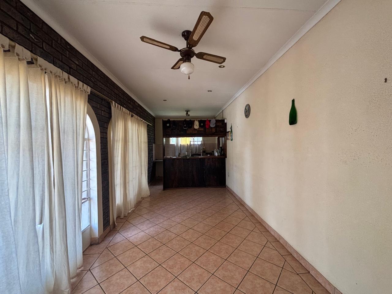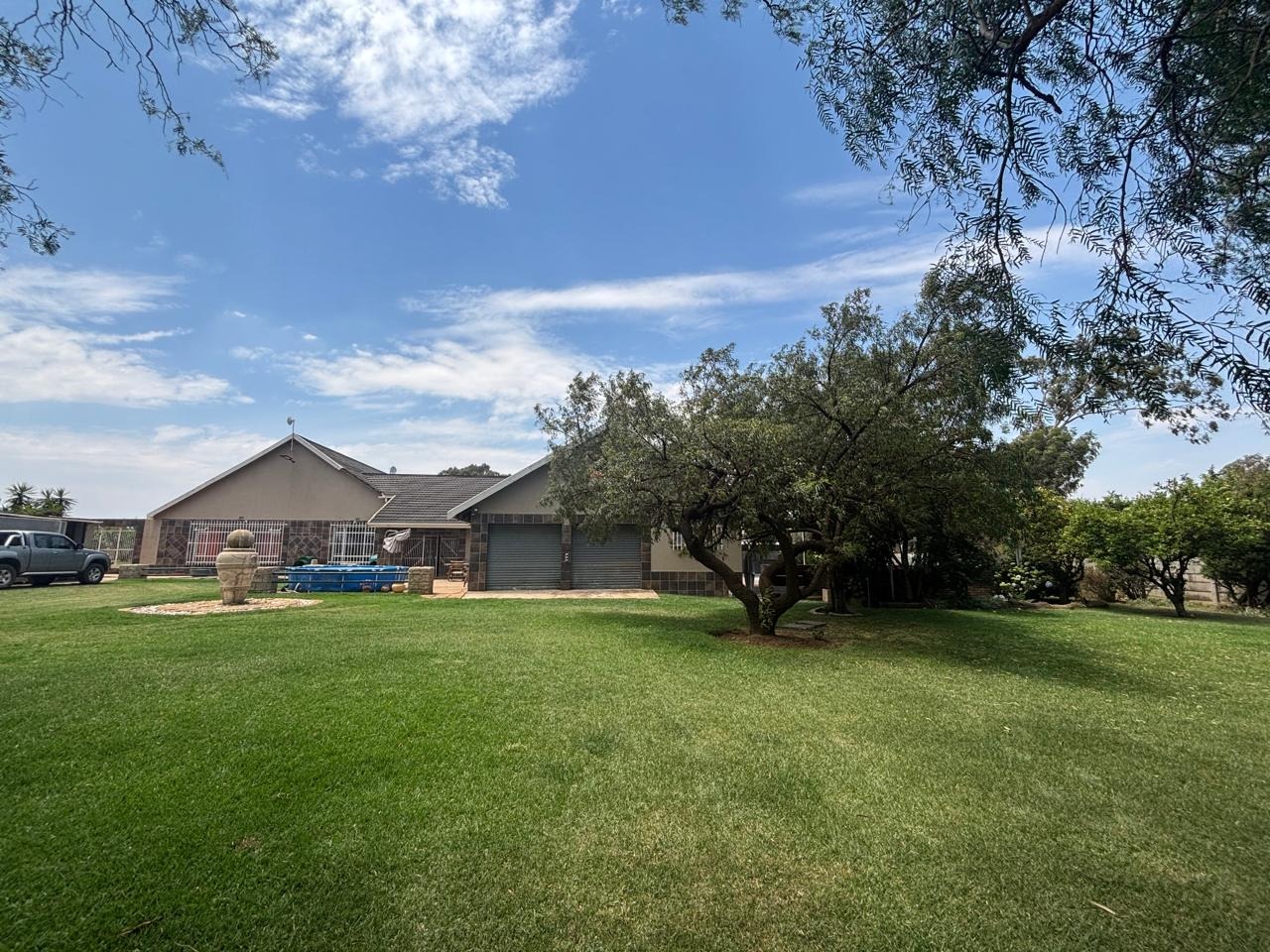 Discover an exceptional residential offering in the serene Hillside area of Randfontein, South Africa. This expansive property, boasting a substantial 17152 sqm erf and an impressive 1000 sqm under roof, presents a unique opportunity for spacious living with robust security. The exterior features a highly secure perimeter, defined by tall concrete walls, security wire, and a robust spiked access gate, ensuring privacy and peace of mind. A long, paved driveway leads into the property, flanked by mature trees that provide natural shade and a sense of established tranquility. Inside, the generously proportioned home offers five comfortable bedrooms and three well-appointed bathrooms, including two en-suite facilities, providing ample space for family and guests. The interior layout features two inviting lounges, a dedicated dining room, and a functional kitchen, all designed with an open-plan flow. Notable interior details include charming wood ceilings and sliding doors that enhance the sense of space and light. For entertainment, the property includes a built-in bar and a dedicated braai room, perfect for social gatherings. Outdoor living is a highlight, with a refreshing swimming pool and a deck for relaxation. The property also features a lapa, ideal for alfresco dining and entertaining. Practical amenities include two garages and four additional parking spaces, ensuring ample vehicle accommodation. Further enhancing convenience are staff quarters, a dedicated laundry room, and ample storage facilities. The expansive garden, though currently featuring some dry grass areas, offers significant potential for landscaping and is pet-friendly. Sustainability is addressed with a borehole and water tanks, providing a degree of water independence. Security is paramount, with an alarm system, access gate, comprehensive fencing, and burglar bars throughout the home. This property is ideal for those seeking a secure, spacious lifestyle reminiscent of country living within a convenient Randfontein location. Key Features: * 5 Bedrooms, 3 Bathrooms (2 En-suite) * 17152 sqm Erf, 1000 sqm Floor Size * 2 Lounges, Dining Room, Kitchen * Swimming Pool, Deck, Lapa, Braai Room, Built-in Bar * 2 Garages, 4 Parking Spaces * Staff Quarters, Laundry, Storage * Borehole, Water Tanks * Robust Security: Alarm, Access Gate, Fencing, Burglar Bars * Open Plan Living, Wood Ceilings, Sliding Doors