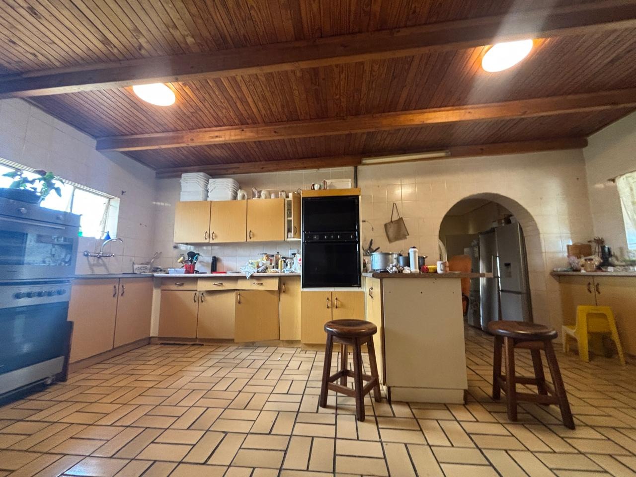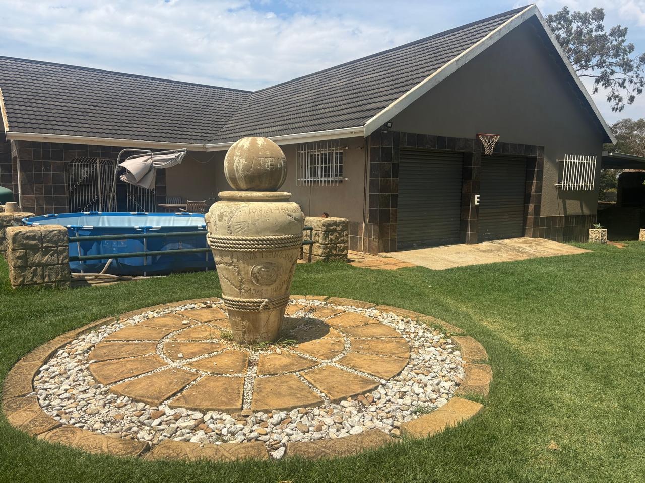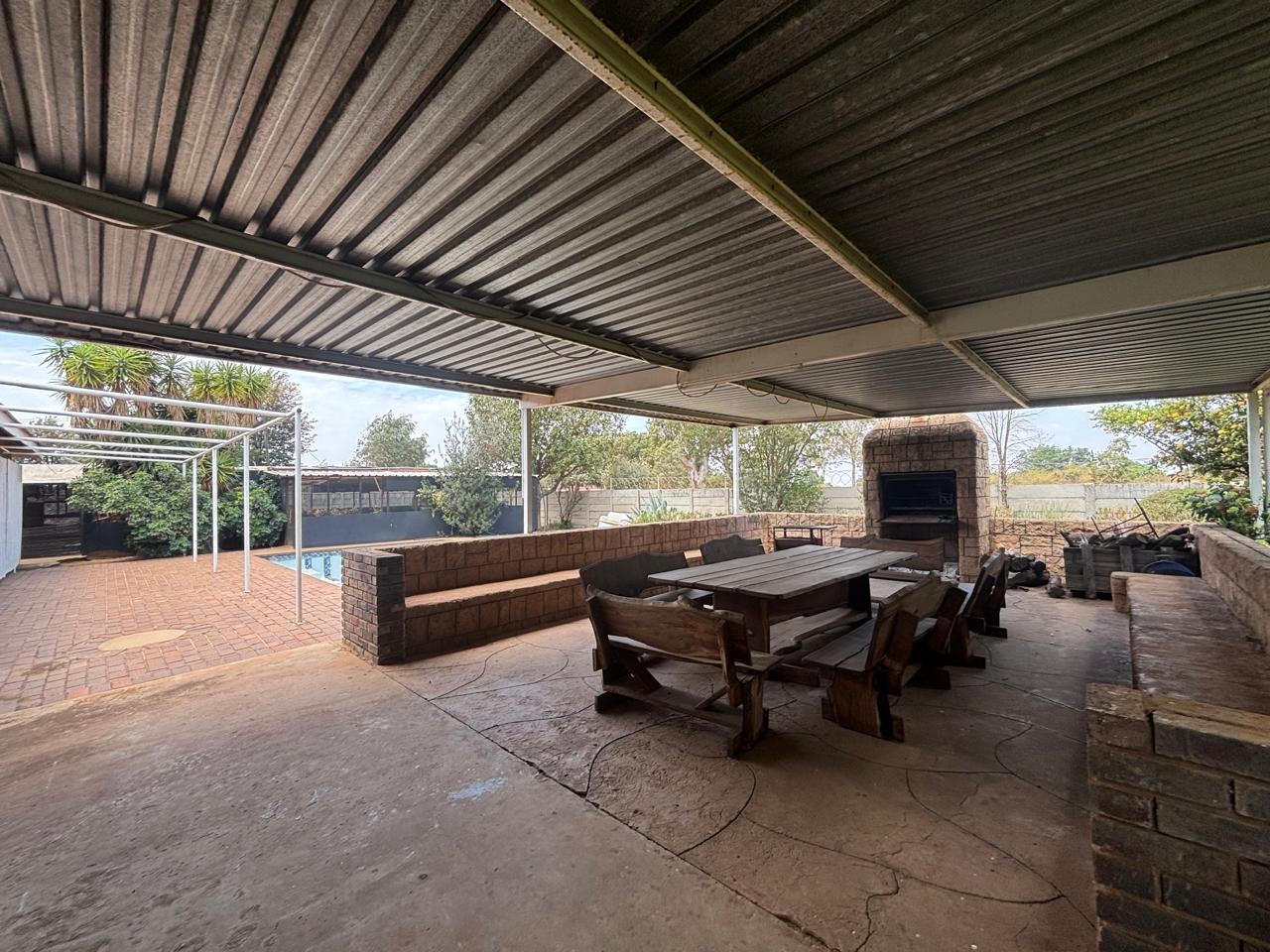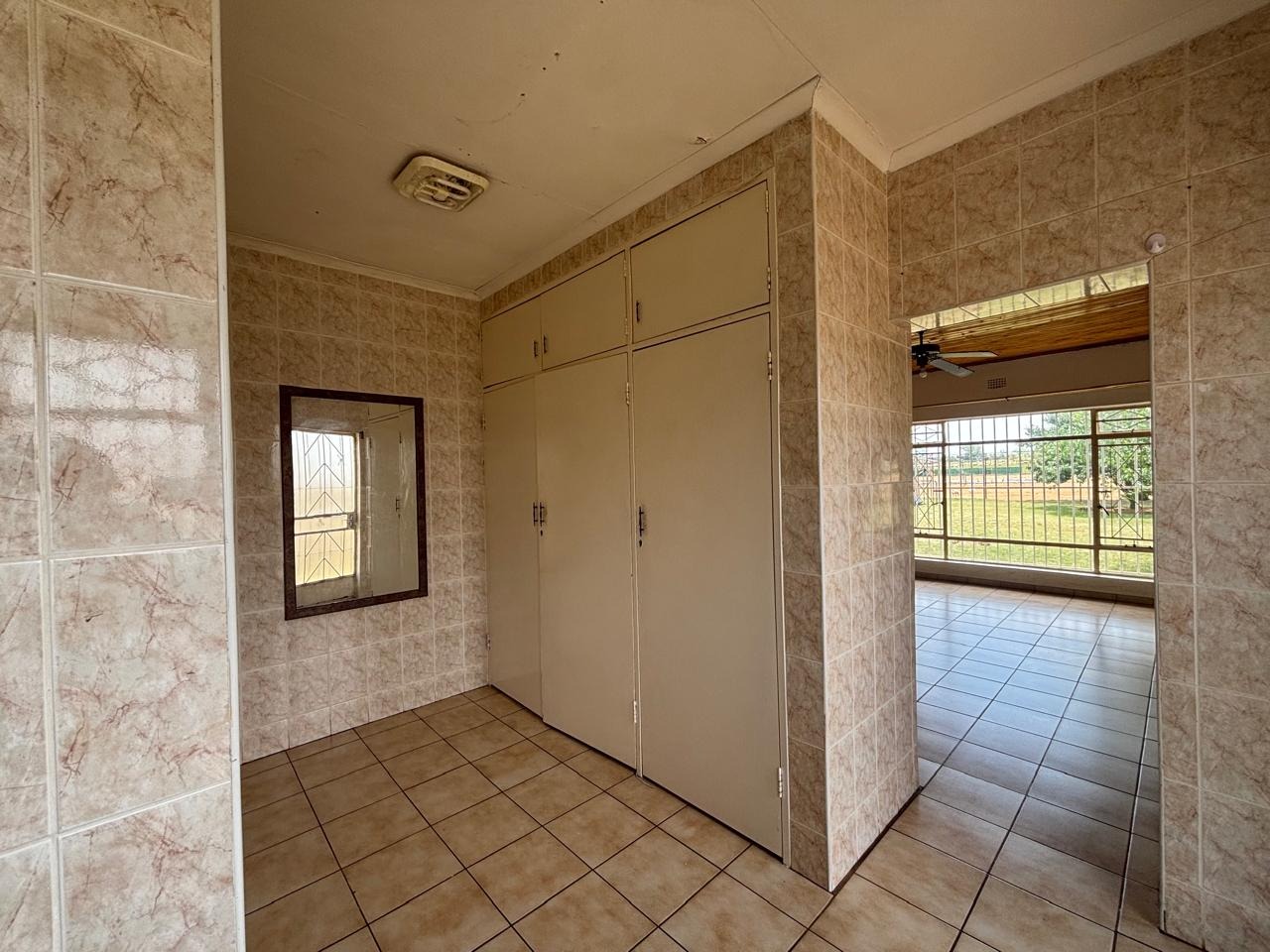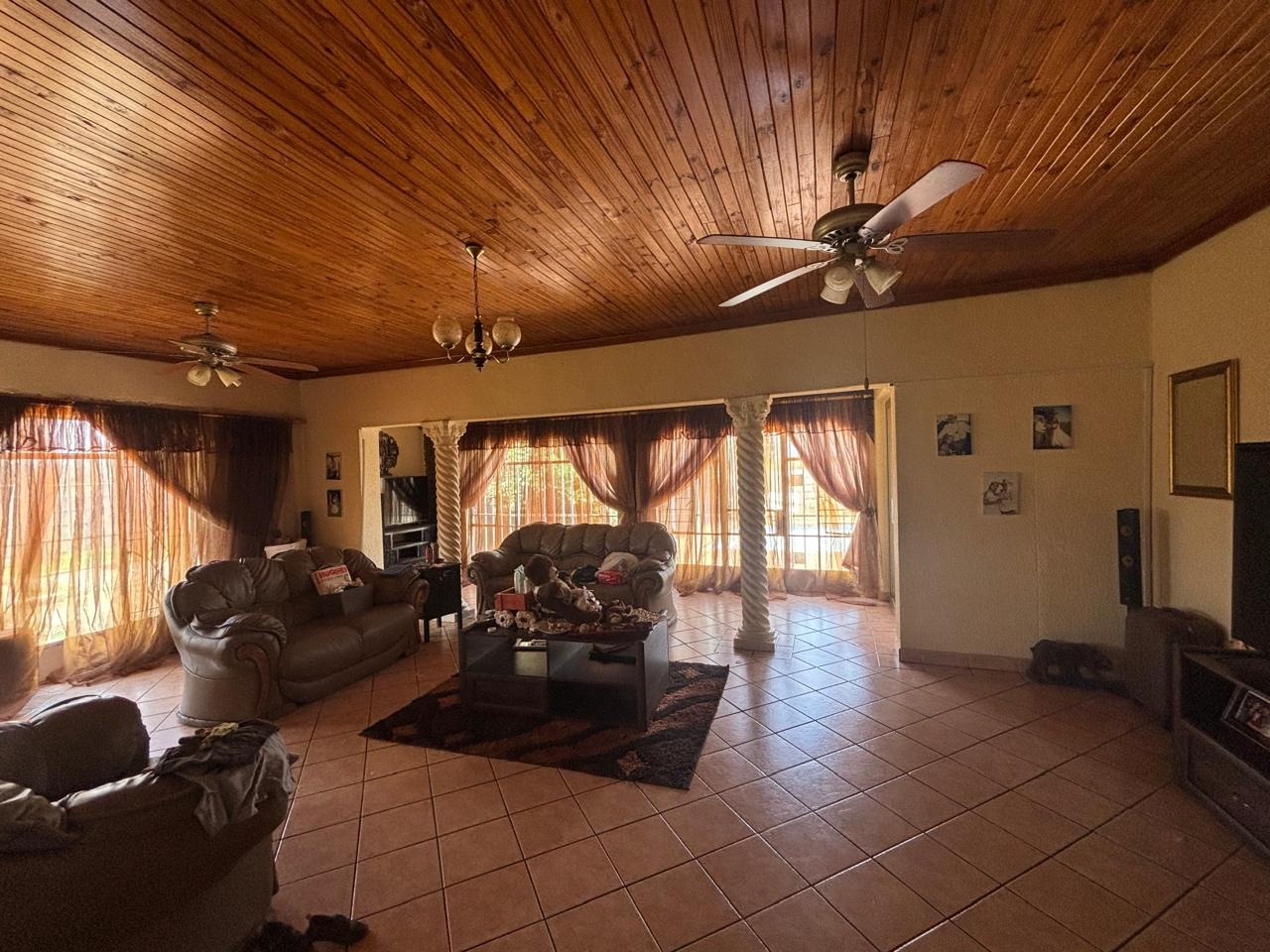 Discover an exceptional residential offering in the serene Hillside area of Randfontein, South Africa. This expansive property, boasting a substantial 17152 sqm erf and an impressive 1000 sqm under roof, presents a unique opportunity for spacious living with robust security. The exterior features a highly secure perimeter, defined by tall concrete walls, security wire, and a robust spiked access gate, ensuring privacy and peace of mind. A long, paved driveway leads into the property, flanked by mature trees that provide natural shade and a sense of established tranquility. Inside, the generously proportioned home offers five comfortable bedrooms and three well-appointed bathrooms, including two en-suite facilities, providing ample space for family and guests. The interior layout features two inviting lounges, a dedicated dining room, and a functional kitchen, all designed with an open-plan flow. Notable interior details include charming wood ceilings and sliding doors that enhance the sense of space and light. For entertainment, the property includes a built-in bar and a dedicated braai room, perfect for social gatherings. Outdoor living is a highlight, with a refreshing swimming pool and a deck for relaxation. The property also features a lapa, ideal for alfresco dining and entertaining. Practical amenities include two garages and four additional parking spaces, ensuring ample vehicle accommodation. Further enhancing convenience are staff quarters, a dedicated laundry room, and ample storage facilities. The expansive garden, though currently featuring some dry grass areas, offers significant potential for landscaping and is pet-friendly. Sustainability is addressed with a borehole and water tanks, providing a degree of water independence. Security is paramount, with an alarm system, access gate, comprehensive fencing, and burglar bars throughout the home. This property is ideal for those seeking a secure, spacious lifestyle reminiscent of country living within a convenient Randfontein location. Key Features: * 5 Bedrooms, 3 Bathrooms (2 En-suite) * 17152 sqm Erf, 1000 sqm Floor Size * 2 Lounges, Dining Room, Kitchen * Swimming Pool, Deck, Lapa, Braai Room, Built-in Bar * 2 Garages, 4 Parking Spaces * Staff Quarters, Laundry, Storage * Borehole, Water Tanks * Robust Security: Alarm, Access Gate, Fencing, Burglar Bars * Open Plan Living, Wood Ceilings, Sliding Doors