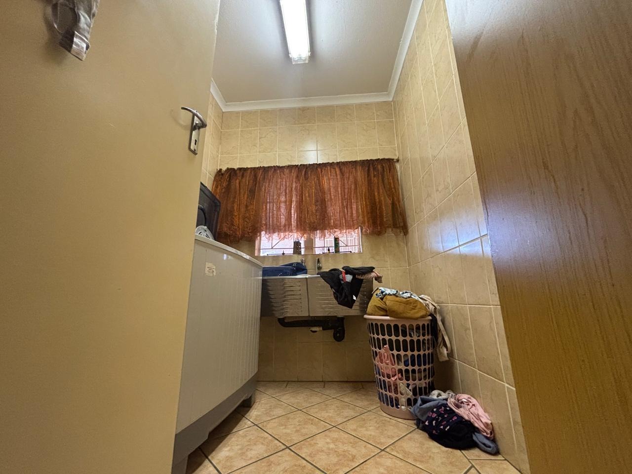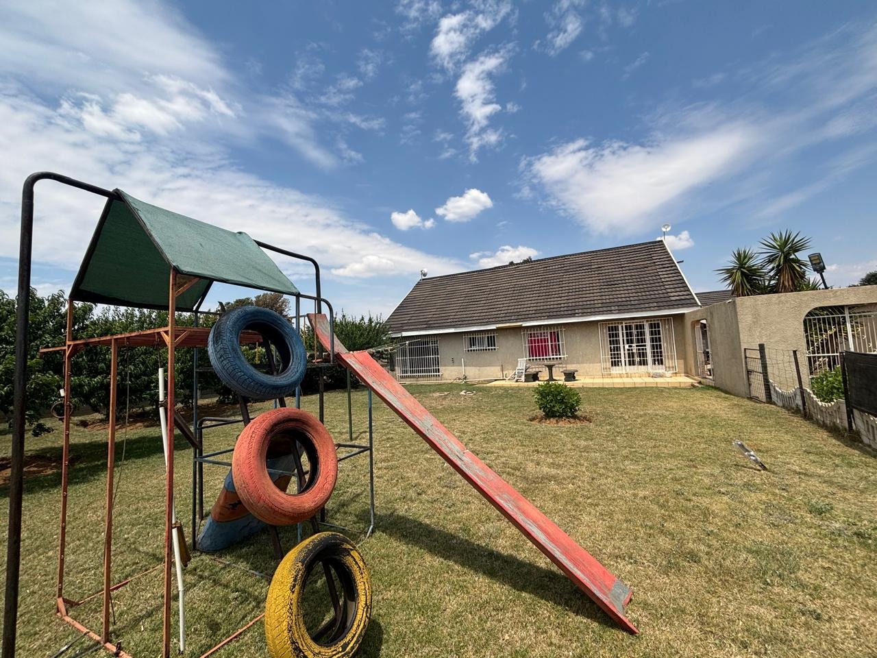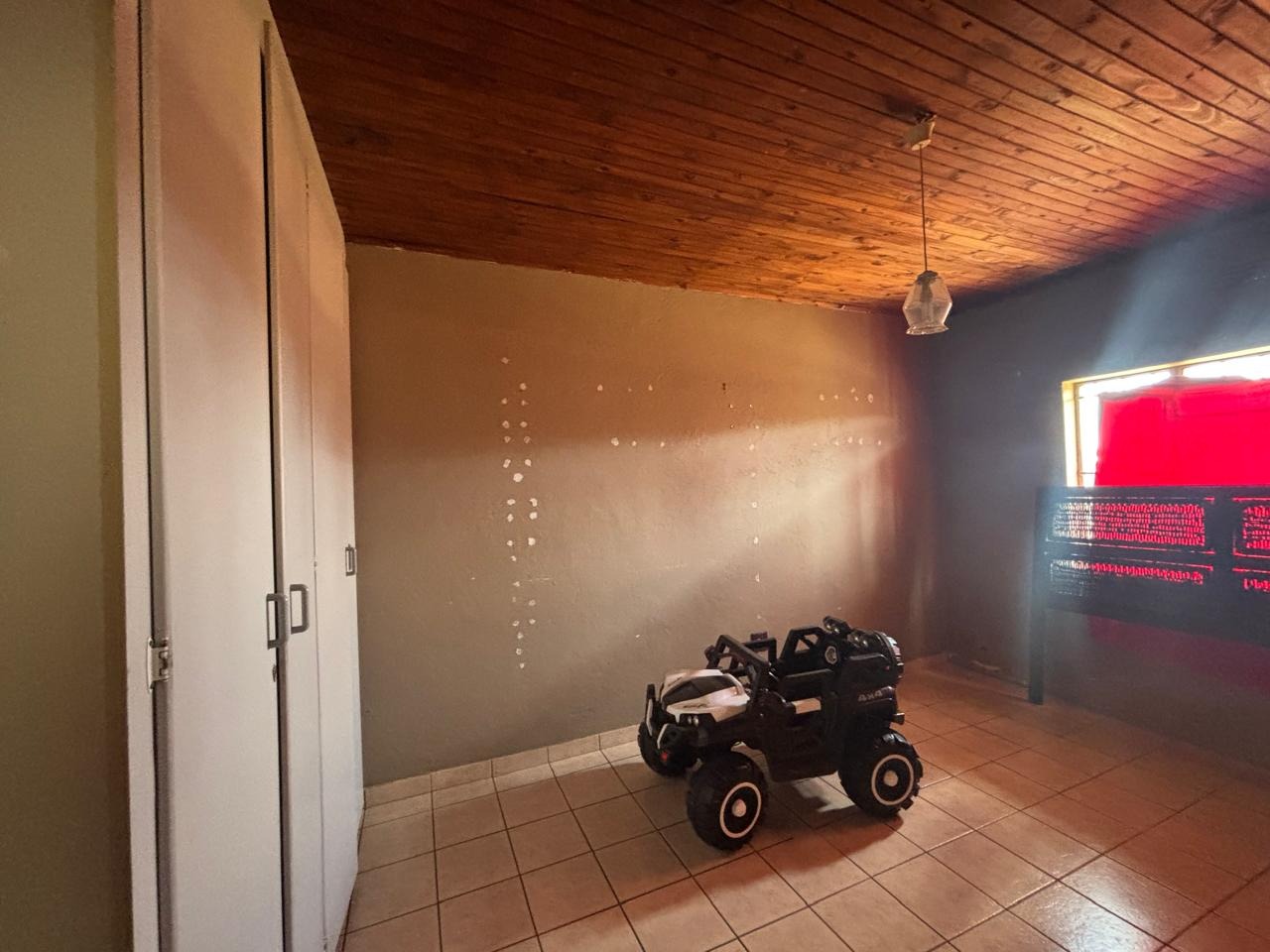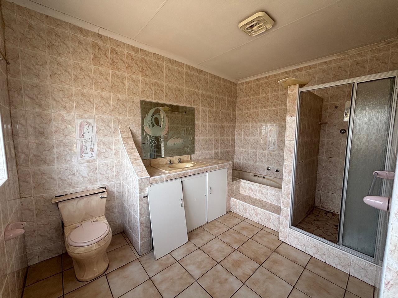Discover an exceptional residential offering in the serene Hillside area of Randfontein, South Africa. This expansive property, boasting a substantial 17152 sqm erf and an impressive 1000 sqm under roof, presents a unique opportunity for spacious living with robust security. The exterior features a highly secure perimeter, defined by tall concrete walls, security wire, and a robust spiked access gate, ensuring privacy and peace of mind. A long, paved driveway leads into the property, flanked by mature trees that provide natural shade and a sense of established tranquility. Inside, the generously proportioned home offers five comfortable bedrooms and three well-appointed bathrooms, including two en-suite facilities, providing ample space for family and guests. The interior layout features two inviting lounges, a dedicated dining room, and a functional kitchen, all designed with an open-plan flow. Notable interior details include charming wood ceilings and sliding doors that enhance the sense of space and light. For entertainment, the property includes a built-in bar and a dedicated braai room, perfect for social gatherings. Outdoor living is a highlight, with a refreshing swimming pool and a deck for relaxation. The property also features a lapa, ideal for alfresco dining and entertaining. Practical amenities include two garages and four additional parking spaces, ensuring ample vehicle accommodation. Further enhancing convenience are staff quarters, a dedicated laundry room, and ample storage facilities. The expansive garden, though currently featuring some dry grass areas, offers significant potential for landscaping and is pet-friendly. Sustainability is addressed with a borehole and water tanks, providing a degree of water independence. Security is paramount, with an alarm system, access gate, comprehensive fencing, and burglar bars throughout the home. This property is ideal for those seeking a secure, spacious lifestyle reminiscent of country living within a convenient Randfontein location. Key Features: * 5 Bedrooms, 3 Bathrooms (2 En-suite) * 17152 sqm Erf, 1000 sqm Floor Size * 2 Lounges, Dining Room, Kitchen * Swimming Pool, Deck, Lapa, Braai Room, Built-in Bar * 2 Garages, 4 Parking Spaces * Staff Quarters, Laundry, Storage * Borehole, Water Tanks * Robust Security: Alarm, Access Gate, Fencing, Burglar Bars * Open Plan Living, Wood Ceilings, Sliding Doors