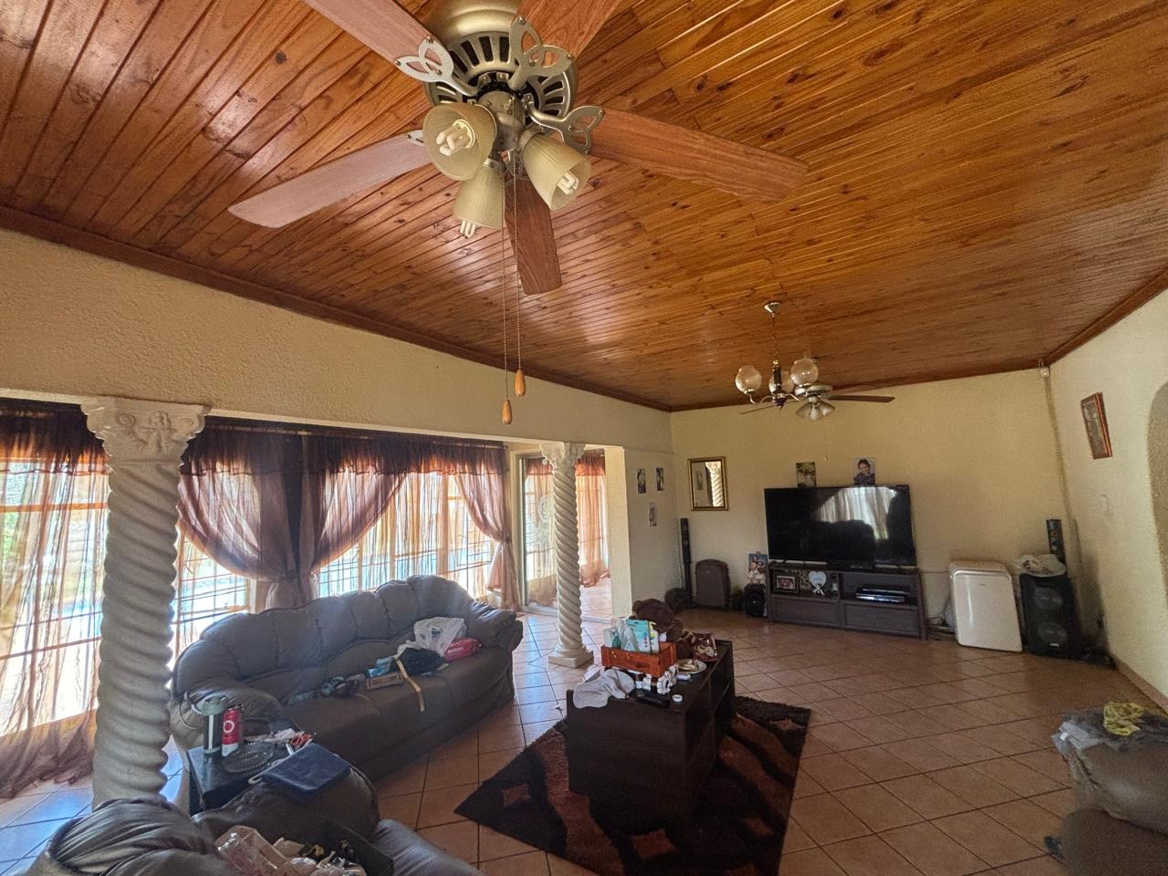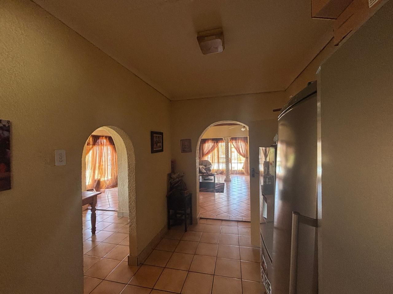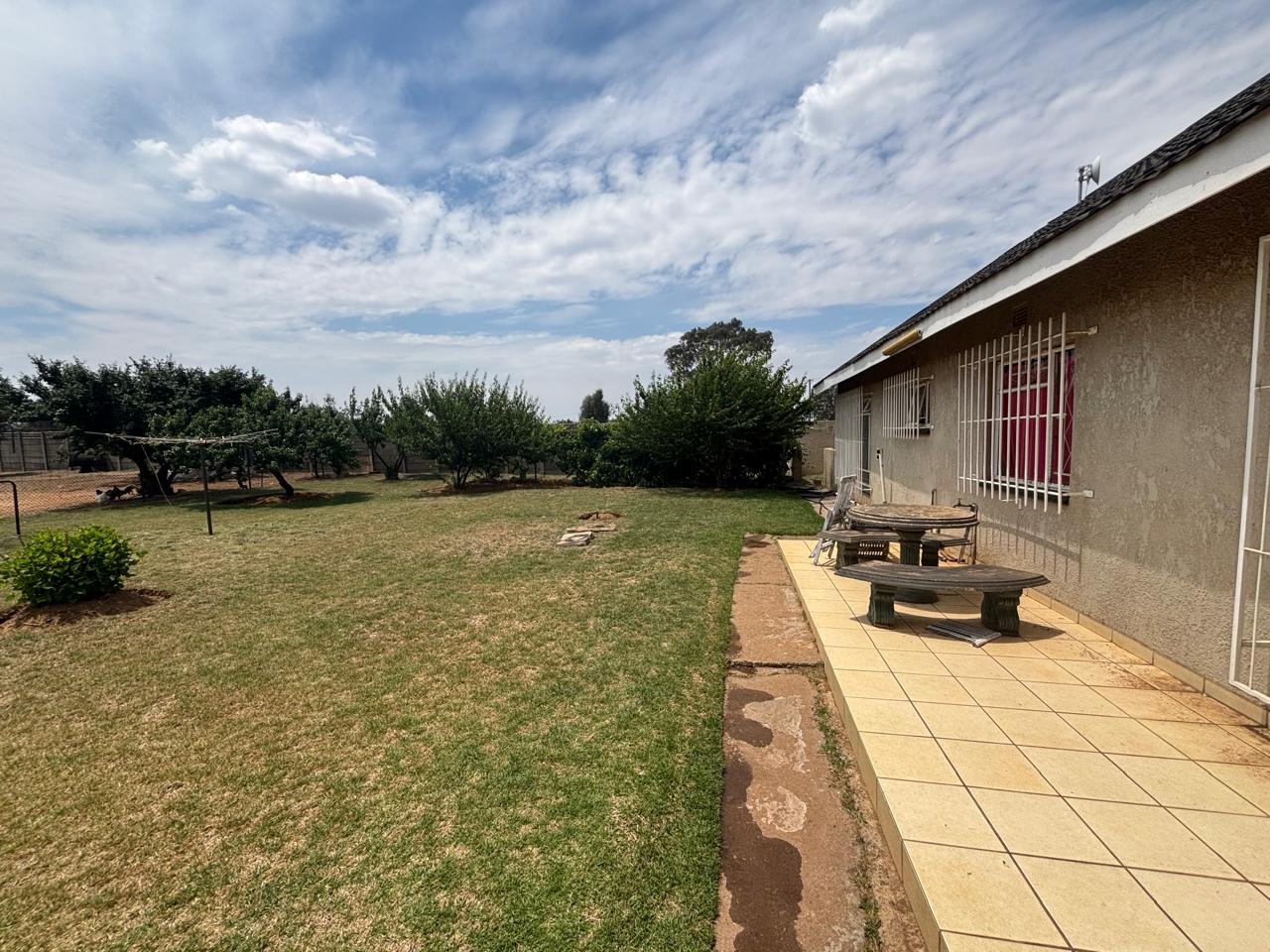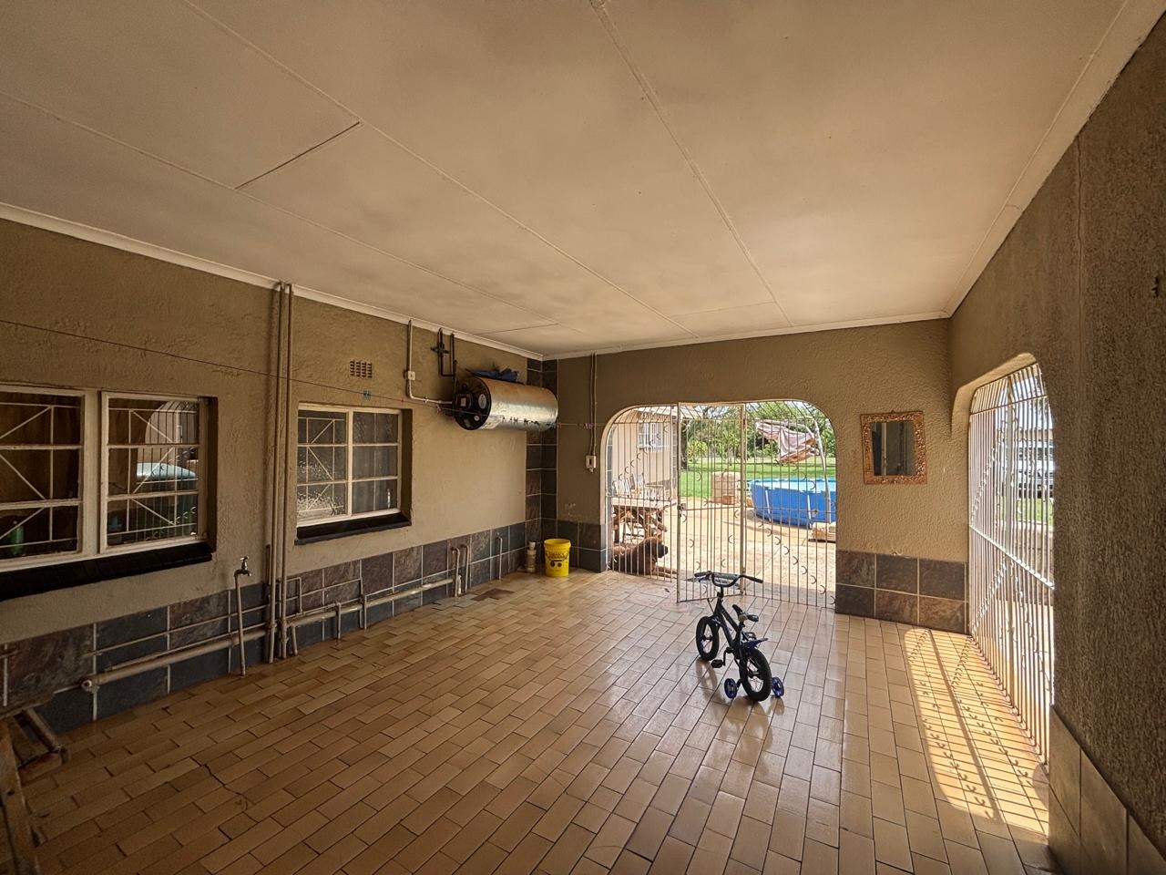 Discover an exceptional residential offering in the serene Hillside area of Randfontein, South Africa. This expansive property, boasting a substantial 17152 sqm erf and an impressive 1000 sqm under roof, presents a unique opportunity for spacious living with robust security. The exterior features a highly secure perimeter, defined by tall concrete walls, security wire, and a robust spiked access gate, ensuring privacy and peace of mind. A long, paved driveway leads into the property, flanked by mature trees that provide natural shade and a sense of established tranquility. Inside, the generously proportioned home offers five comfortable bedrooms and three well-appointed bathrooms, including two en-suite facilities, providing ample space for family and guests. The interior layout features two inviting lounges, a dedicated dining room, and a functional kitchen, all designed with an open-plan flow. Notable interior details include charming wood ceilings and sliding doors that enhance the sense of space and light. For entertainment, the property includes a built-in bar and a dedicated braai room, perfect for social gatherings. Outdoor living is a highlight, with a refreshing swimming pool and a deck for relaxation. The property also features a lapa, ideal for alfresco dining and entertaining. Practical amenities include two garages and four additional parking spaces, ensuring ample vehicle accommodation. Further enhancing convenience are staff quarters, a dedicated laundry room, and ample storage facilities. The expansive garden, though currently featuring some dry grass areas, offers significant potential for landscaping and is pet-friendly. Sustainability is addressed with a borehole and water tanks, providing a degree of water independence. Security is paramount, with an alarm system, access gate, comprehensive fencing, and burglar bars throughout the home. This property is ideal for those seeking a secure, spacious lifestyle reminiscent of country living within a convenient Randfontein location. Key Features: * 5 Bedrooms, 3 Bathrooms (2 En-suite) * 17152 sqm Erf, 1000 sqm Floor Size * 2 Lounges, Dining Room, Kitchen * Swimming Pool, Deck, Lapa, Braai Room, Built-in Bar * 2 Garages, 4 Parking Spaces * Staff Quarters, Laundry, Storage * Borehole, Water Tanks * Robust Security: Alarm, Access Gate, Fencing, Burglar Bars * Open Plan Living, Wood Ceilings, Sliding Doors