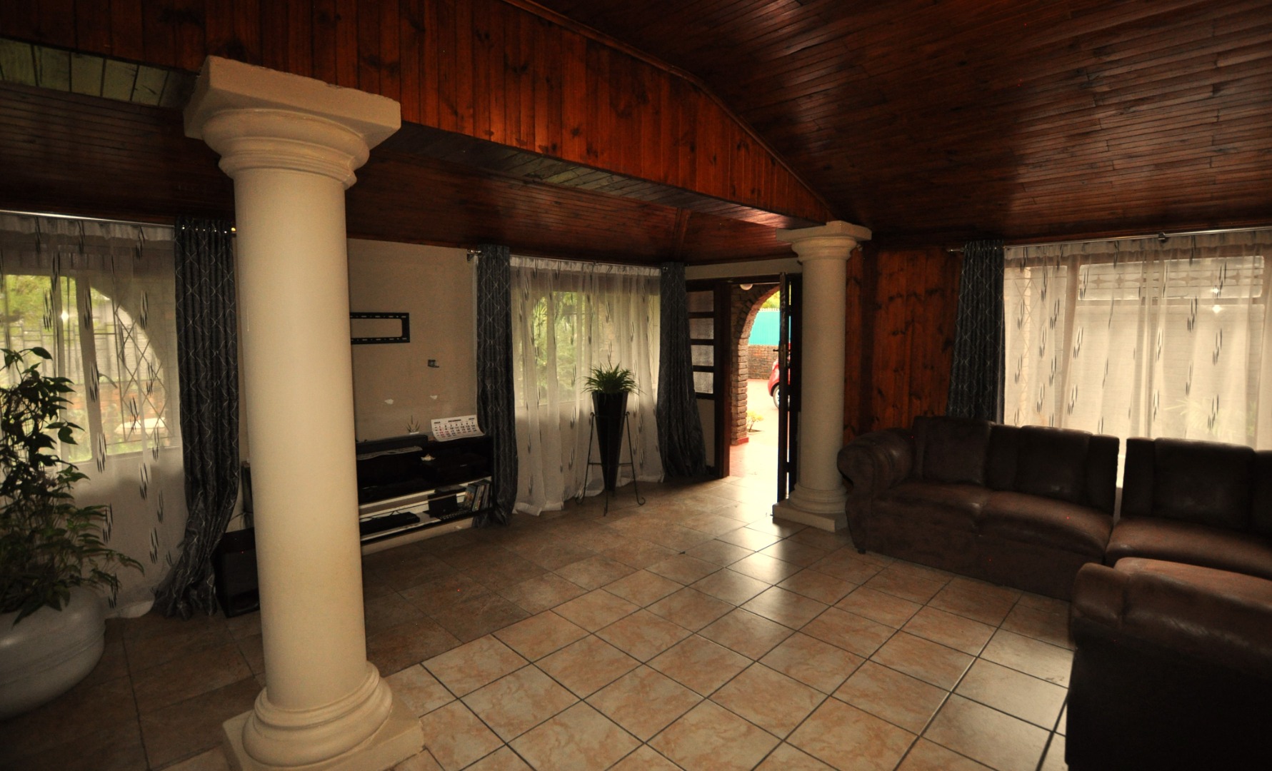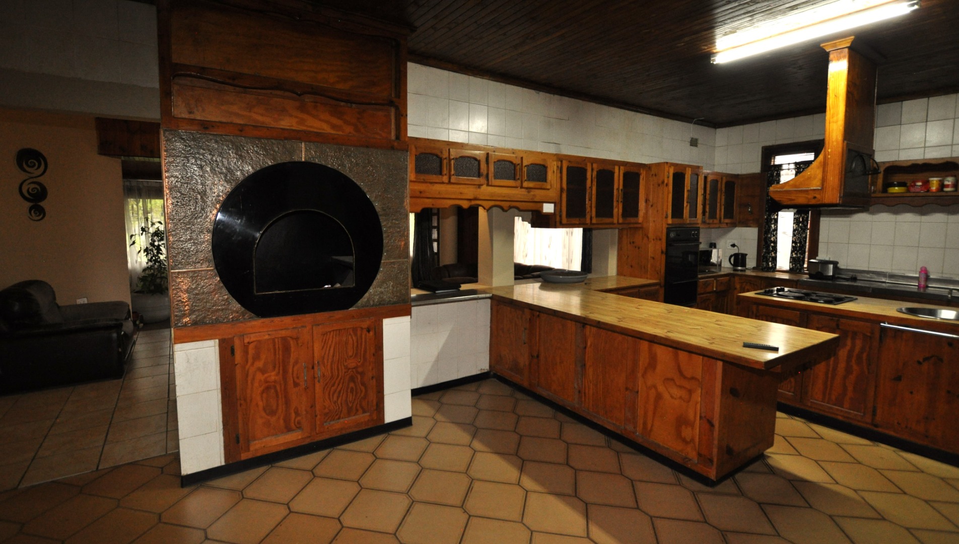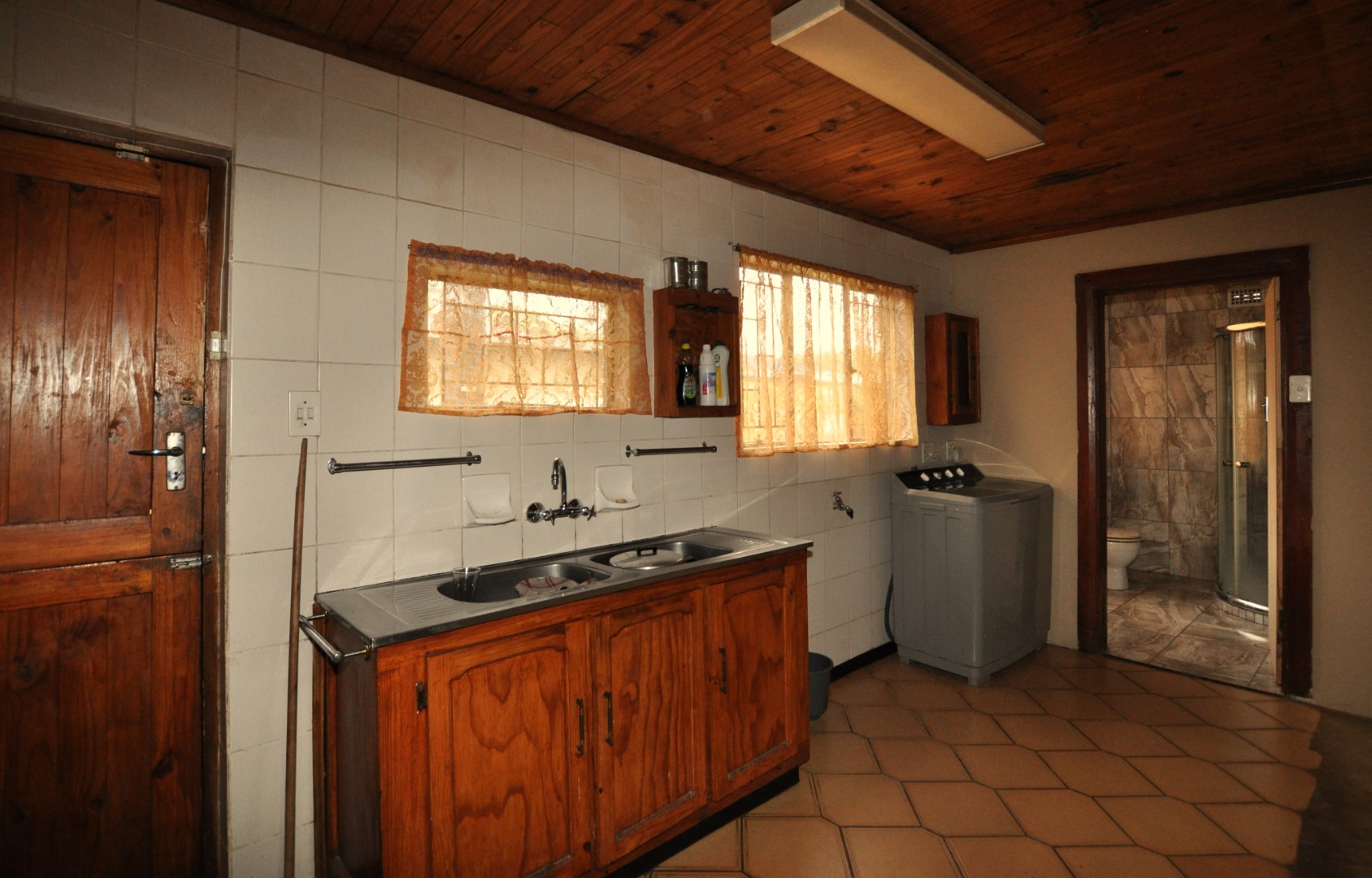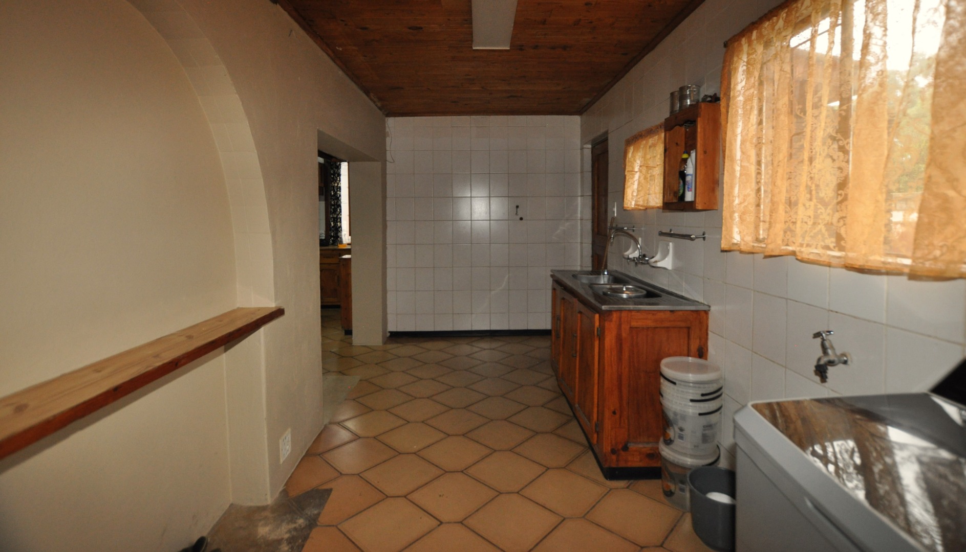 This charming 2-bedroom, 2-bathroom residence in Homelake, Randfontein, offers a unique blend of rustic character and spacious living across its 300 sqm floor plan. The interior boasts distinctive wood-paneled ceilings and durable tiled flooring throughout, creating a warm and inviting atmosphere. The property features a generous lounge area, complete with a functional fireplace, providing a cozy focal point. An open-plan design is evident with convenient pass-throughs connecting living spaces, enhancing the flow for daily living and entertaining. The heart of the home is a well-appointed kitchen, featuring extensive dark wooden cabinetry, ample countertops, a large central island with an integrated hob and sink, and dedicated spaces for a scullery and pantry, catering to all culinary needs. The home comprises two comfortable bedrooms and two bathrooms, ensuring privacy and convenience for residents. A dedicated utility space, equipped with a double sink and washing machine, adds to the practicality of the home. While the aesthetic leans towards a traditional, rustic style with its dark wood finishes and specific tiling, it offers a solid foundation for those appreciating classic design or looking to infuse modern updates. The property's generous erf size of 798 sqm provides ample outdoor potential. Externally, the property is well-equipped with two garages and two additional parking spaces, providing secure accommodation for vehicles. The established garden and paved areas enhance the outdoor appeal, complemented by a built-in braai for leisure and entertainment. Residents will appreciate the scenic views and the peace of mind offered by security features including a fence, access gate, security gate, and a totally walled perimeter. Located in the suburban setting of Randfontein, this home offers a tranquil lifestyle within a well-established community. Key Features: * 2 Bedrooms, 2 Bathrooms * 1 Lounge * Spacious Kitchen with Scullery & Pantry * 2 Garages, 2 Parking Spaces * 798 sqm Erf Size, 300 sqm Floor Size * Built-in Braai * Garden, Paved Driveway * Fenced, Access Gate, Security Gate, Walled * Scenic View