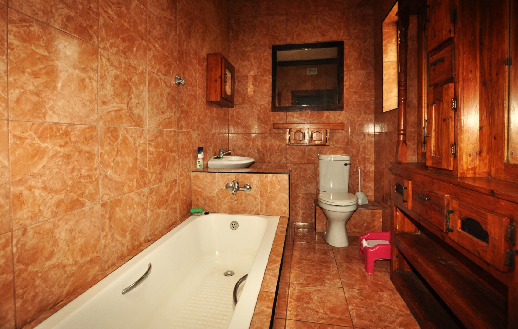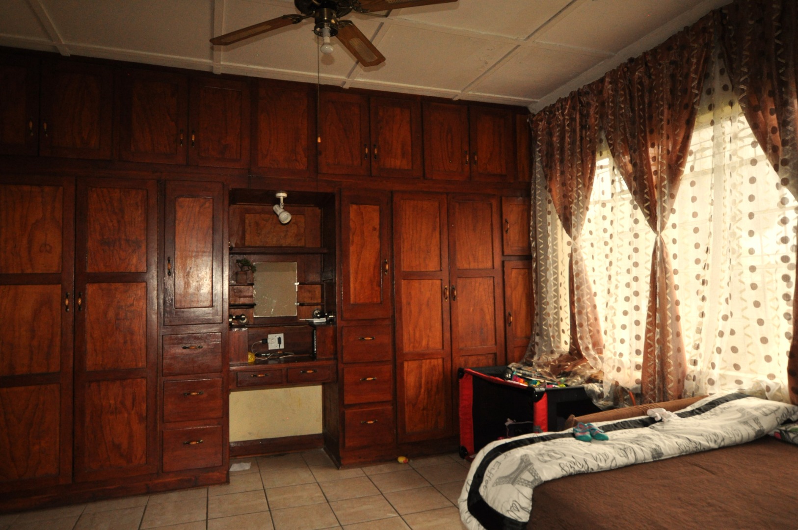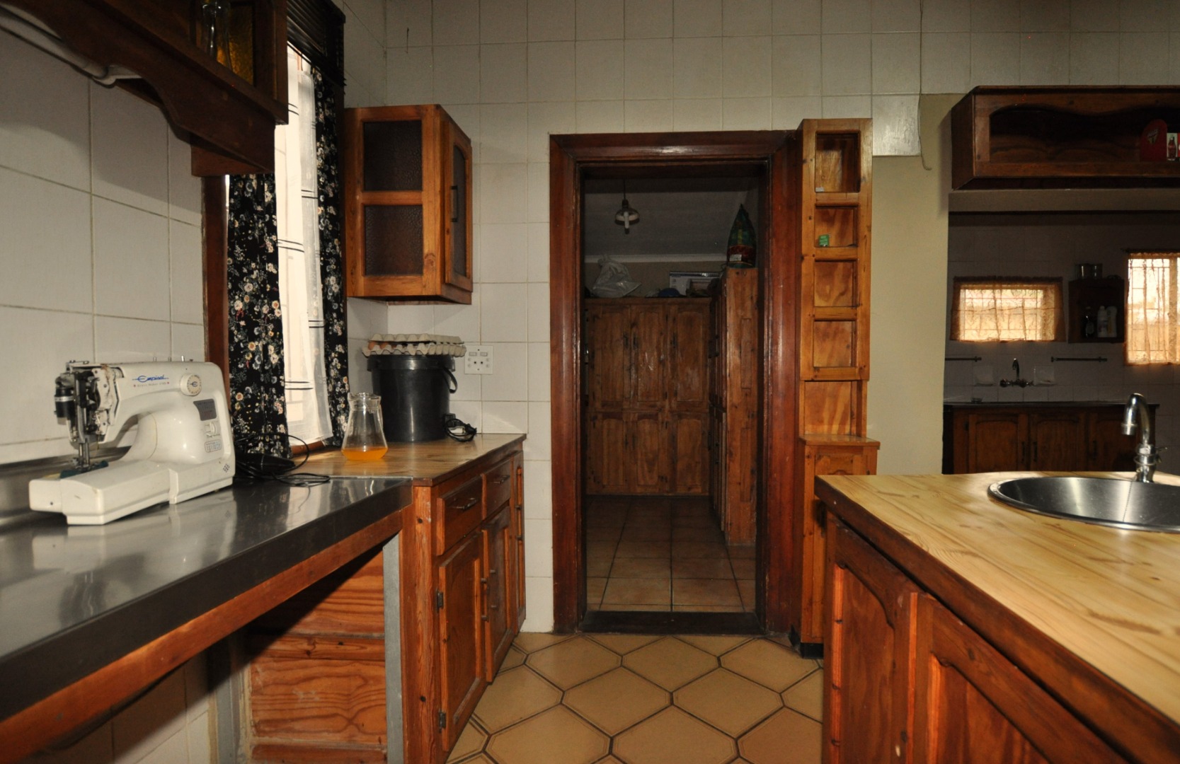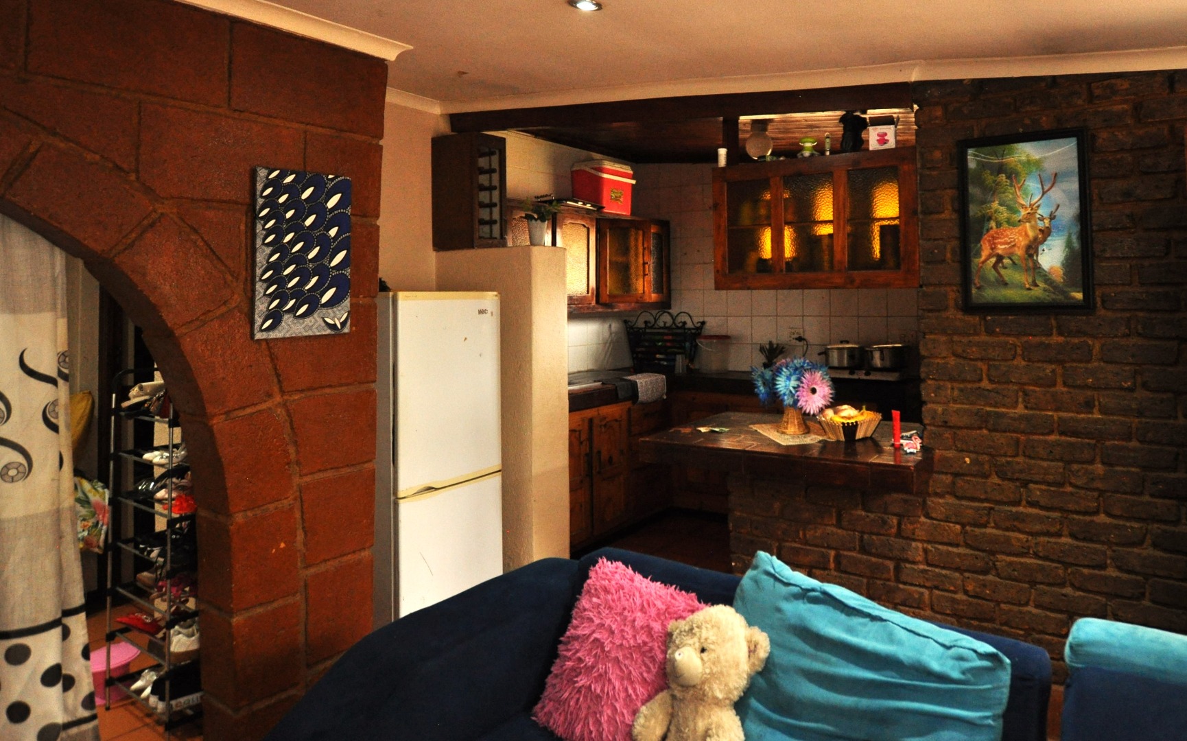 This charming 2-bedroom, 2-bathroom residence in Homelake, Randfontein, offers a unique blend of rustic character and spacious living across its 300 sqm floor plan. The interior boasts distinctive wood-paneled ceilings and durable tiled flooring throughout, creating a warm and inviting atmosphere. The property features a generous lounge area, complete with a functional fireplace, providing a cozy focal point. An open-plan design is evident with convenient pass-throughs connecting living spaces, enhancing the flow for daily living and entertaining. The heart of the home is a well-appointed kitchen, featuring extensive dark wooden cabinetry, ample countertops, a large central island with an integrated hob and sink, and dedicated spaces for a scullery and pantry, catering to all culinary needs. The home comprises two comfortable bedrooms and two bathrooms, ensuring privacy and convenience for residents. A dedicated utility space, equipped with a double sink and washing machine, adds to the practicality of the home. While the aesthetic leans towards a traditional, rustic style with its dark wood finishes and specific tiling, it offers a solid foundation for those appreciating classic design or looking to infuse modern updates. The property's generous erf size of 798 sqm provides ample outdoor potential. Externally, the property is well-equipped with two garages and two additional parking spaces, providing secure accommodation for vehicles. The established garden and paved areas enhance the outdoor appeal, complemented by a built-in braai for leisure and entertainment. Residents will appreciate the scenic views and the peace of mind offered by security features including a fence, access gate, security gate, and a totally walled perimeter. Located in the suburban setting of Randfontein, this home offers a tranquil lifestyle within a well-established community. Key Features: * 2 Bedrooms, 2 Bathrooms * 1 Lounge * Spacious Kitchen with Scullery & Pantry * 2 Garages, 2 Parking Spaces * 798 sqm Erf Size, 300 sqm Floor Size * Built-in Braai * Garden, Paved Driveway * Fenced, Access Gate, Security Gate, Walled * Scenic View