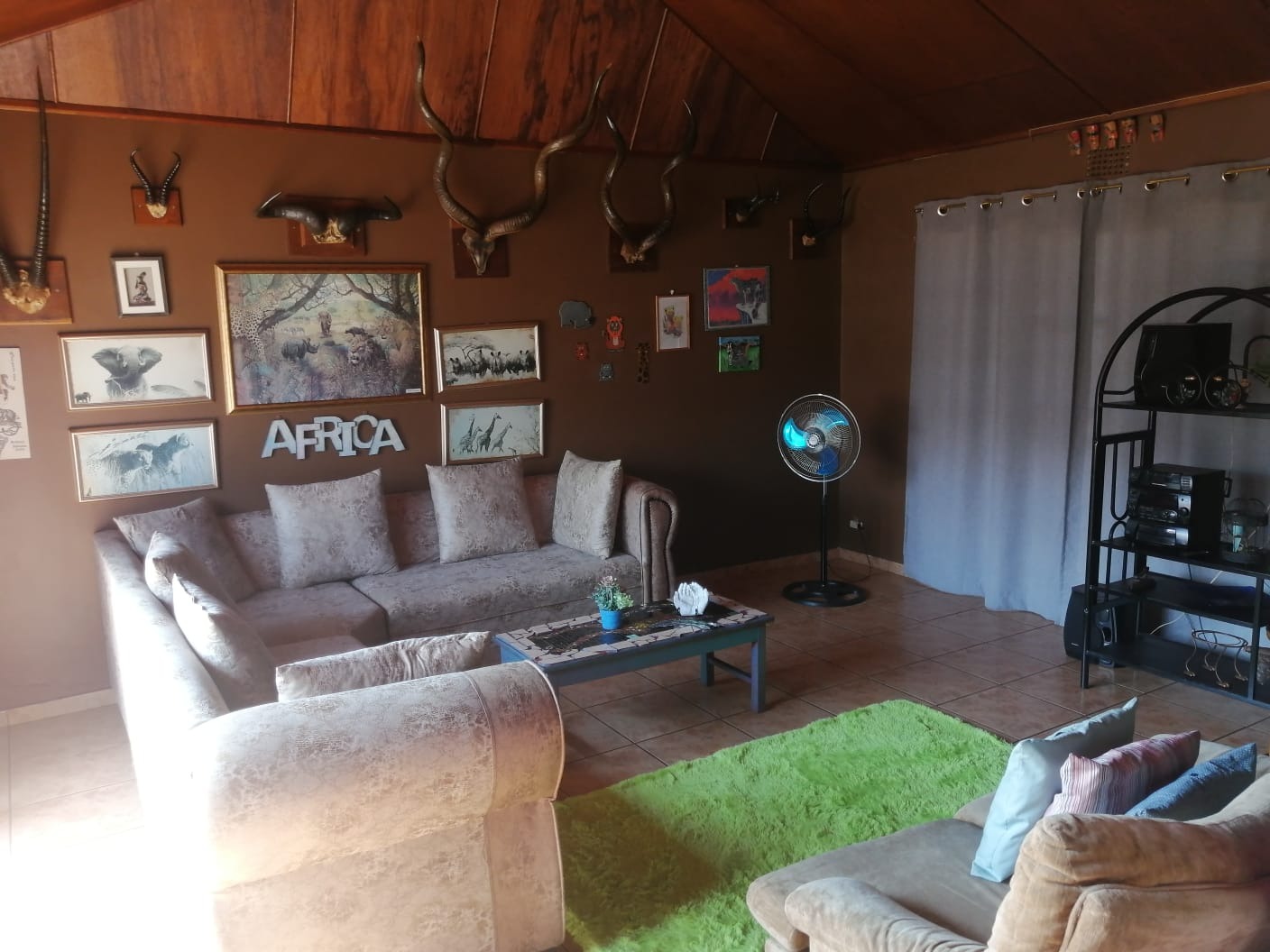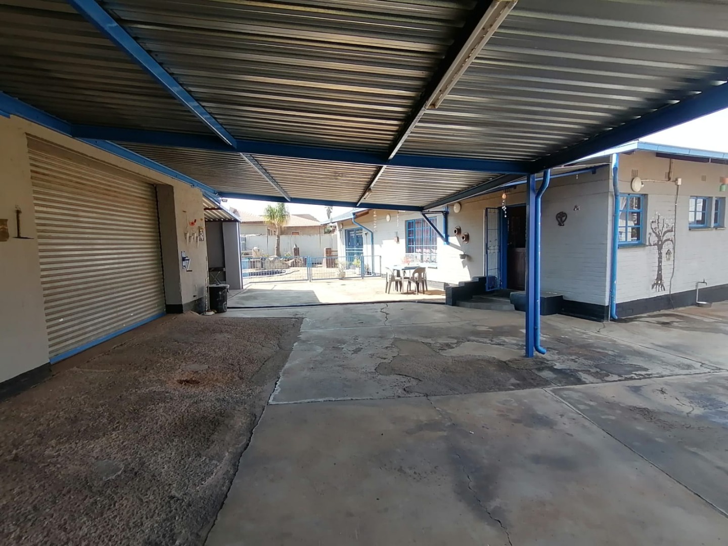 Parking is abundant with three garages and additional open parking for four vehicles, all accessible via a paved driveway. The property is fully fenced, ensuring privacy and security. Situated in the suburban area of Homelake, Randfontein, this property offers a convenient lifestyle within a well-established community, close to local amenities and transport routes.