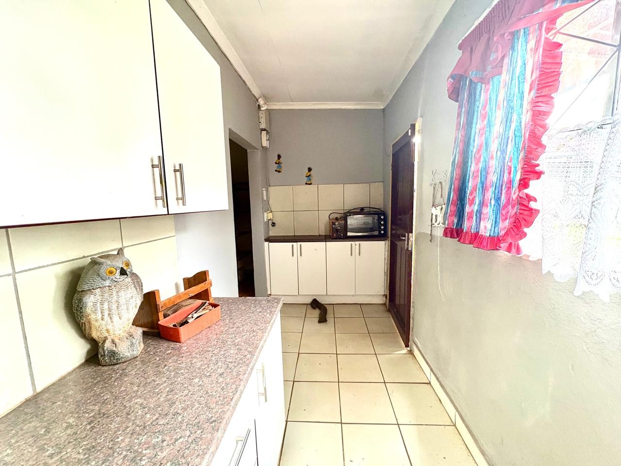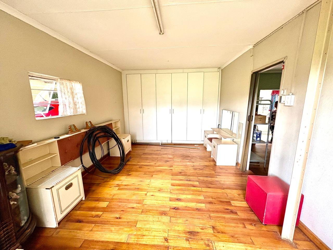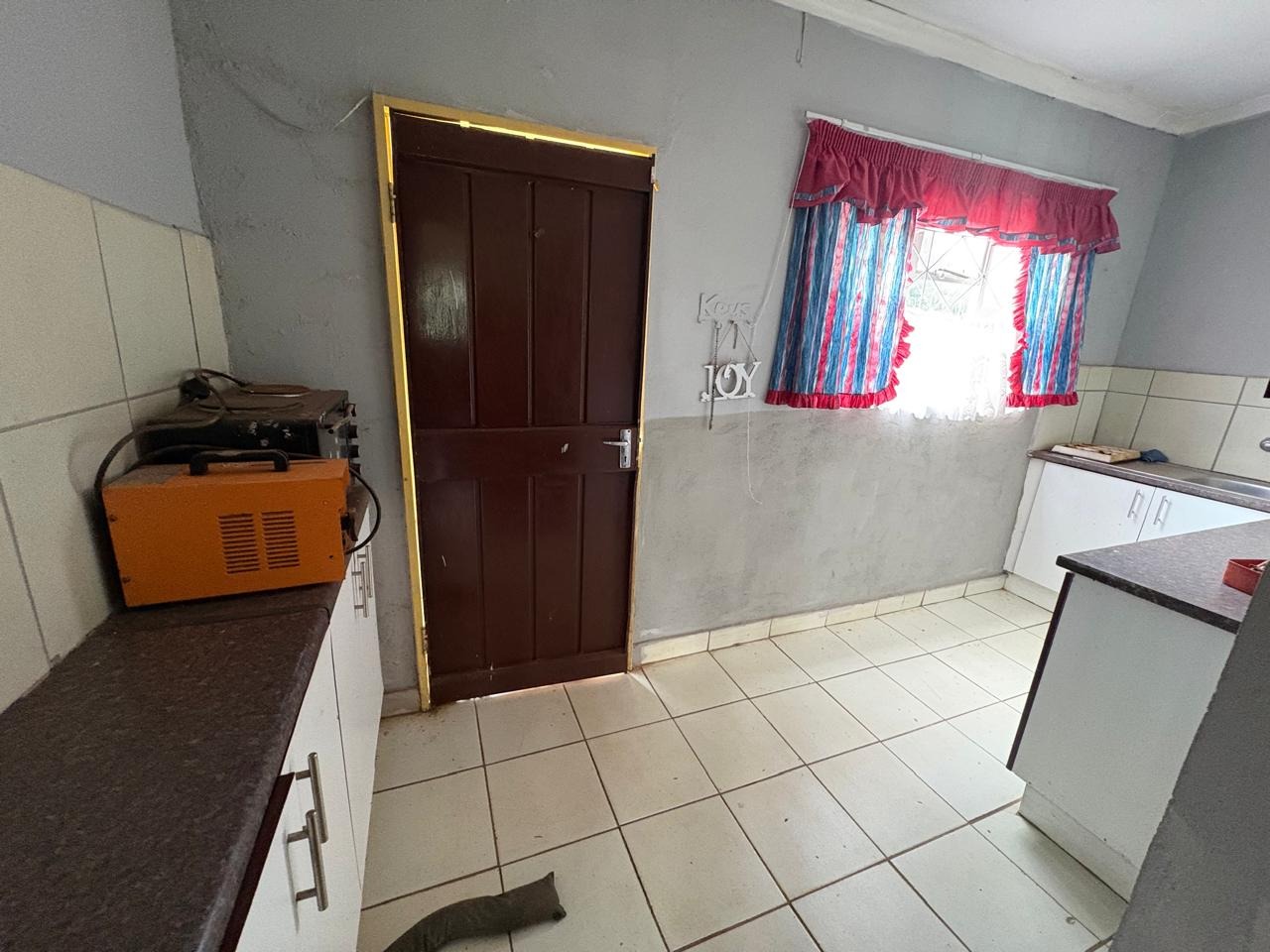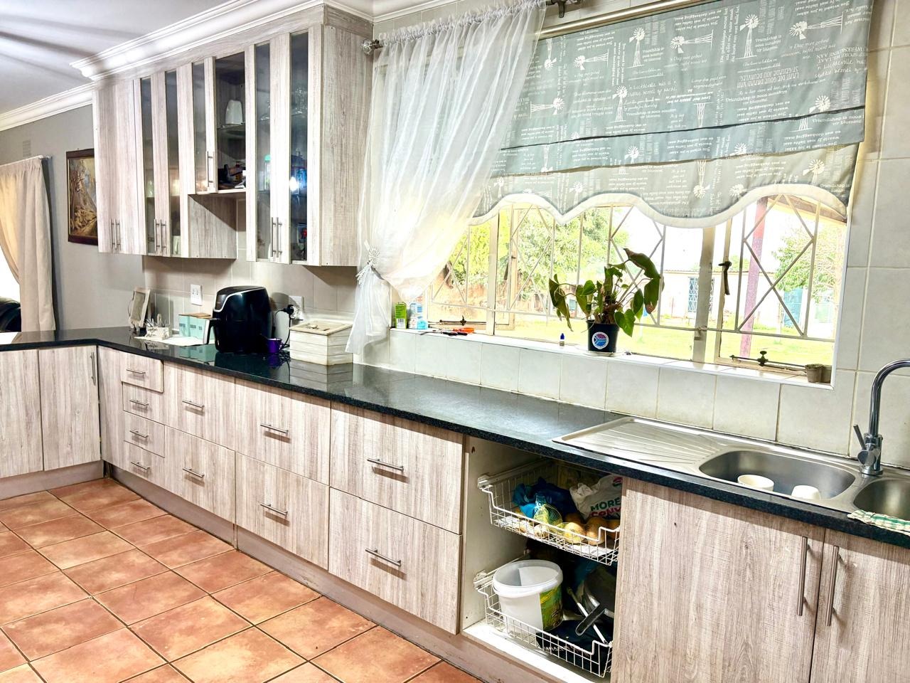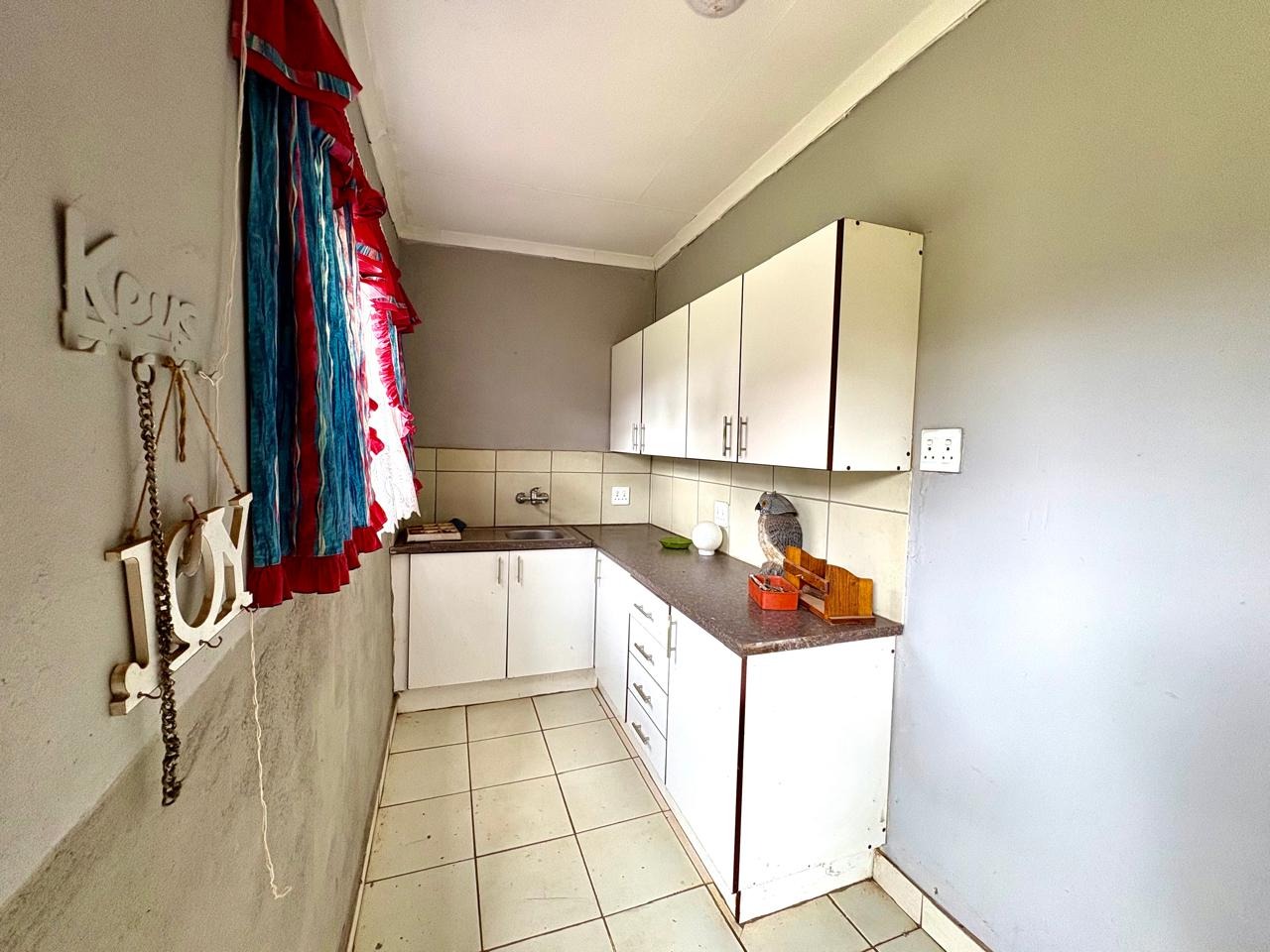 This agricultural holding is for sale and is ideally situated next to the main road between Finsbury and Randfontein, offering excellent access and visibility. The property measures 1.5533 hectares and features a well-maintained main house with four bedrooms fitted with built-in cupboards. The kitchen is equipped with built-in cupboards and marble countertops, while the main bathroom includes a bath, basin, and toilet. The house also offers additional rooms that can be converted into a flat, consisting of a dining room, a living room, a bathroom with a shower, basin, and toilet, a bedroom with built-in cupboards, and a room currently used as a wash bay with a basin that can be converted into a kitchen.