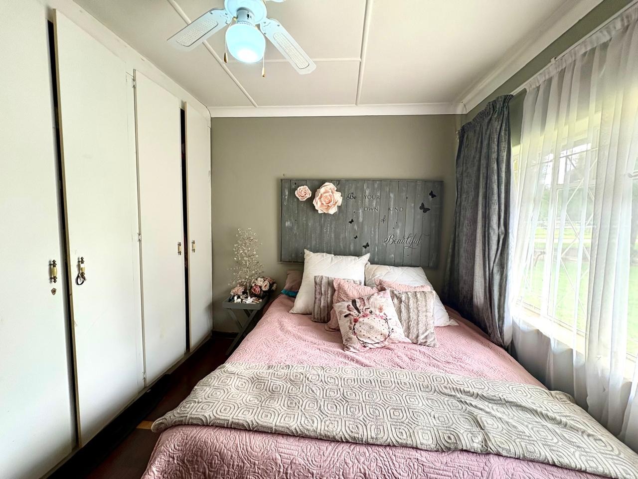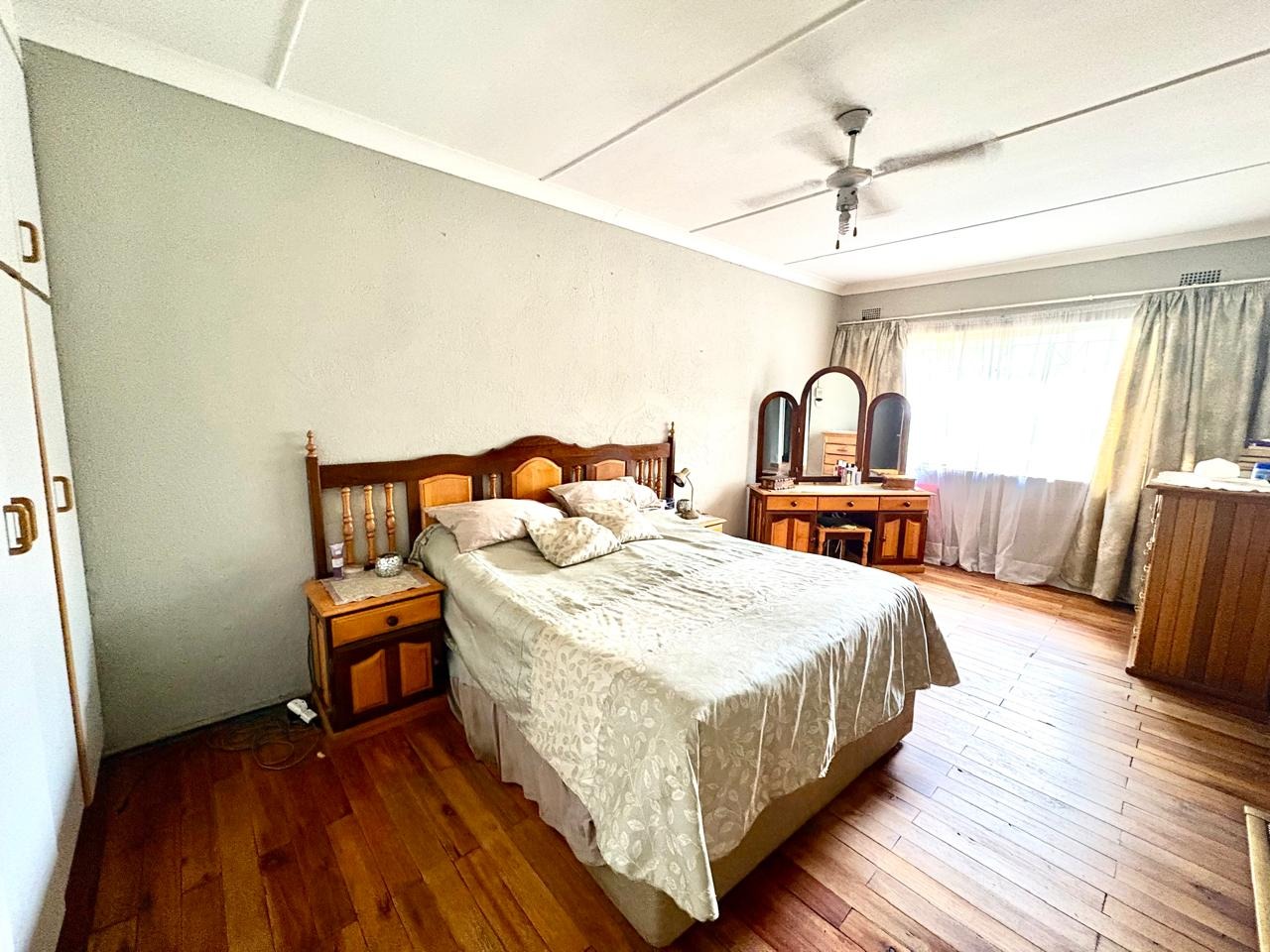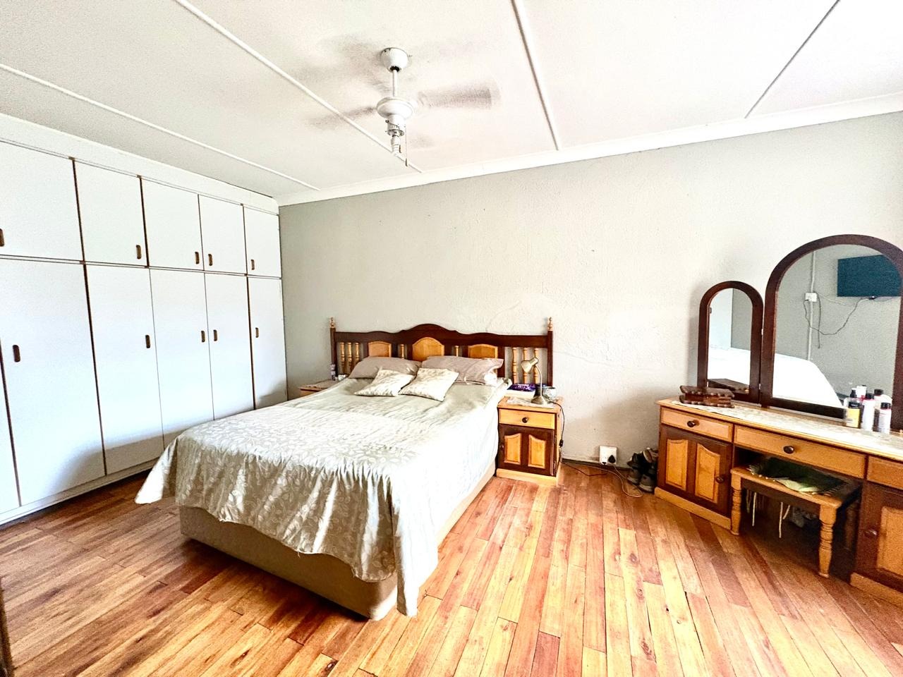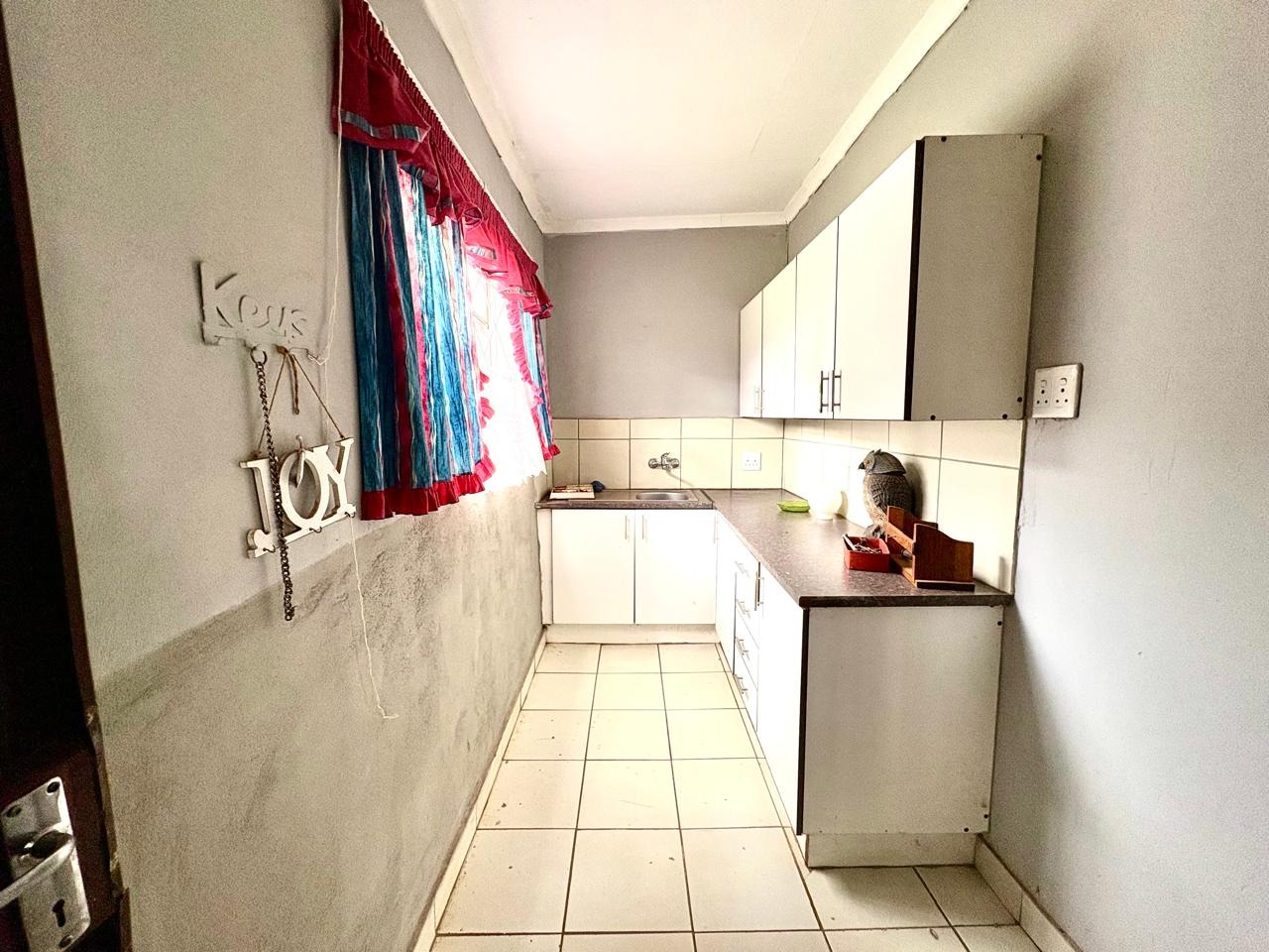 This agricultural holding is for sale and is ideally situated next to the main road between Finsbury and Randfontein, offering excellent access and visibility. The property measures 1.5533 hectares and features a well-maintained main house with four bedrooms fitted with built-in cupboards. The kitchen is equipped with built-in cupboards and marble countertops, while the main bathroom includes a bath, basin, and toilet. The house also offers additional rooms that can be converted into a flat, consisting of a dining room, a living room, a bathroom with a shower, basin, and toilet, a bedroom with built-in cupboards, and a room currently used as a wash bay with a basin that can be converted into a kitchen.