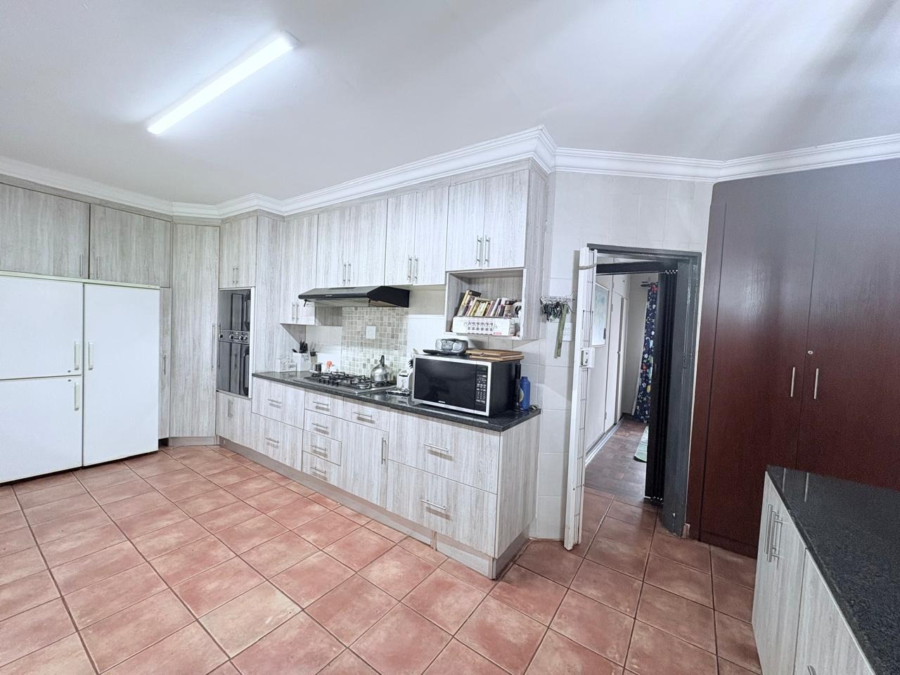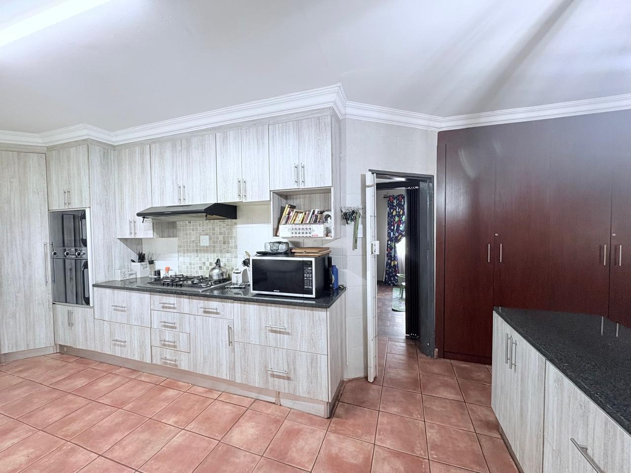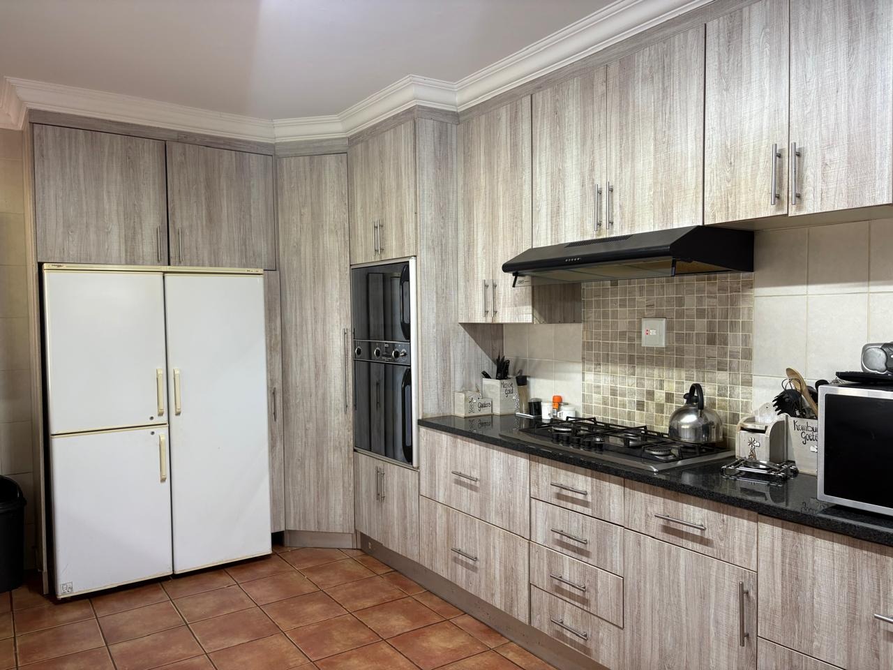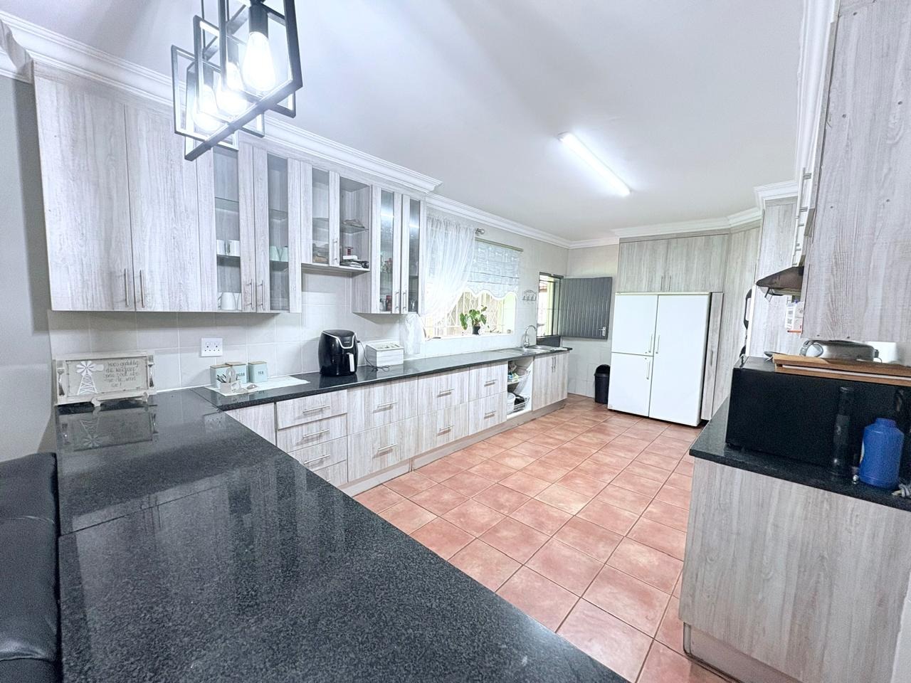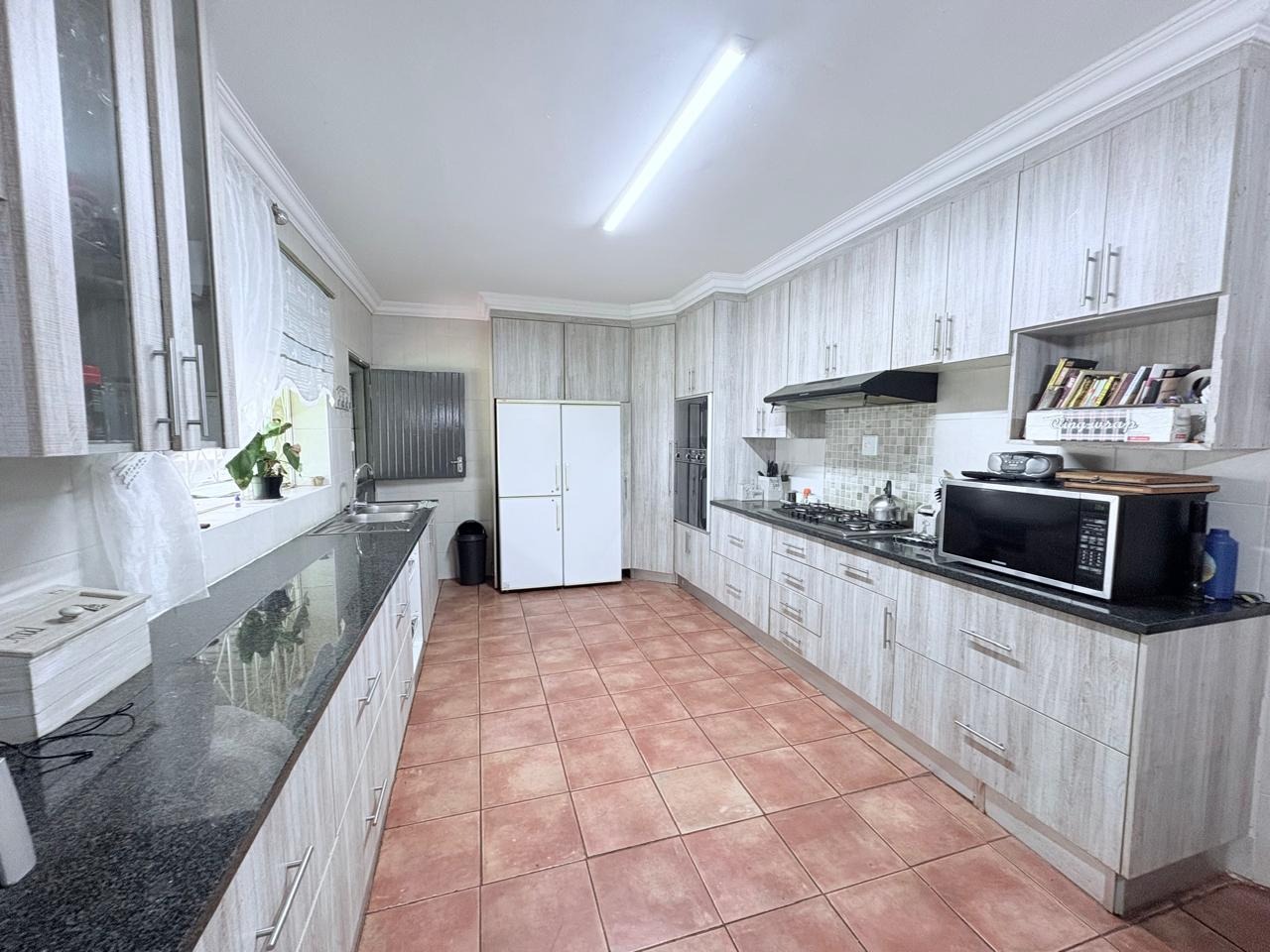 This agricultural holding is for sale and is ideally situated next to the main road between Finsbury and Randfontein, offering excellent access and visibility. The property measures 1.5533 hectares and features a well-maintained main house with four bedrooms fitted with built-in cupboards. The kitchen is equipped with built-in cupboards and marble countertops, while the main bathroom includes a bath, basin, and toilet. The house also offers additional rooms that can be converted into a flat, consisting of a dining room, a living room, a bathroom with a shower, basin, and toilet, a bedroom with built-in cupboards, and a room currently used as a wash bay with a basin that can be converted into a kitchen.