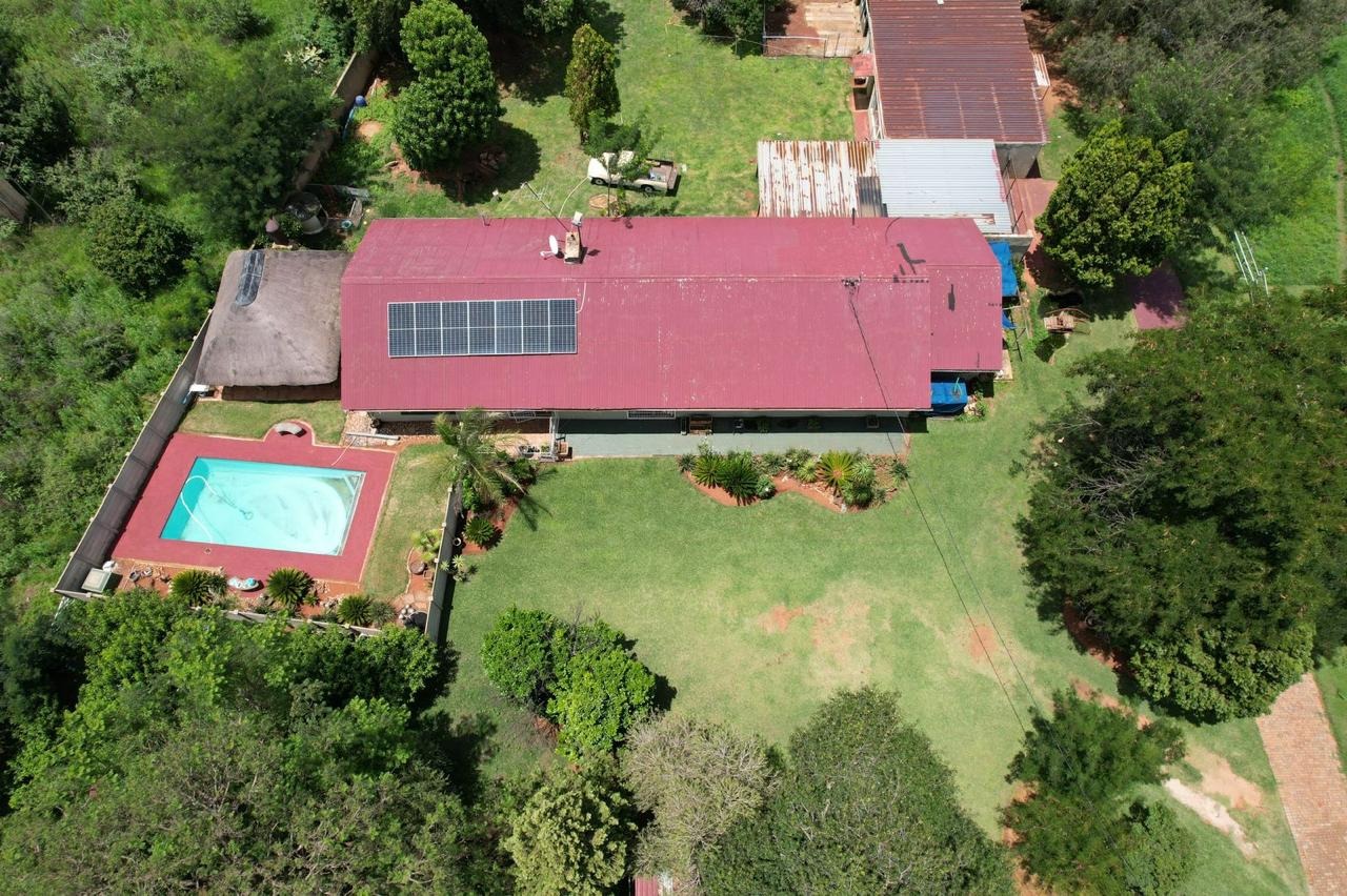 For entertaining and outdoor living, there is a large lapa situated next to the house with a built-in braai, as well as a large swimming pool. The property further includes an outside building that functions as a flat, offering a bedroom with built-in cupboards, a kitchen with built-in cupboards, a bathroom with a shower, basin, and toilet, and a dining and living area. Additional outside buildings consist of three staff quarters with an outside toilet. Parking is well catered for with undercover parking for four vehicles.