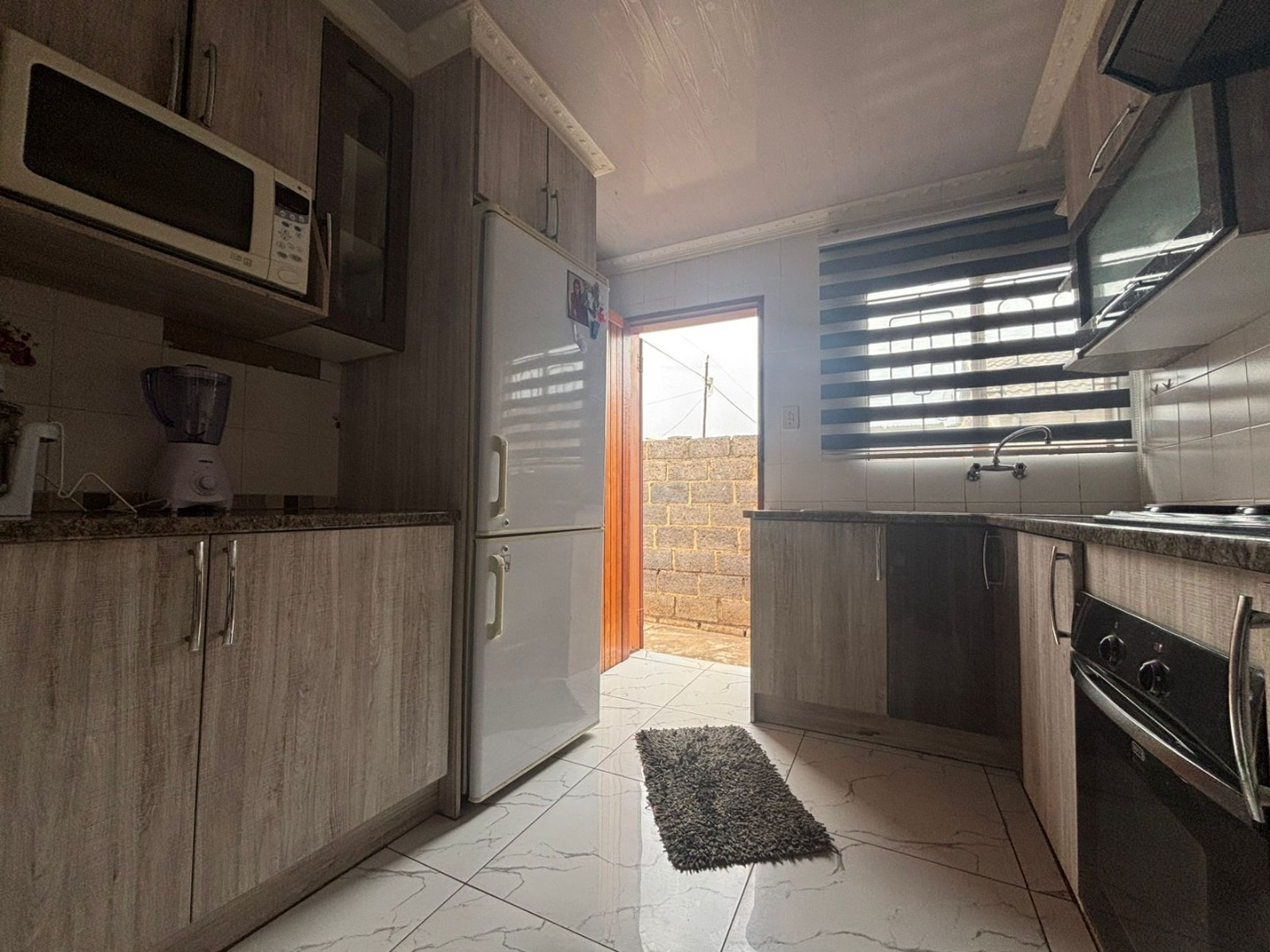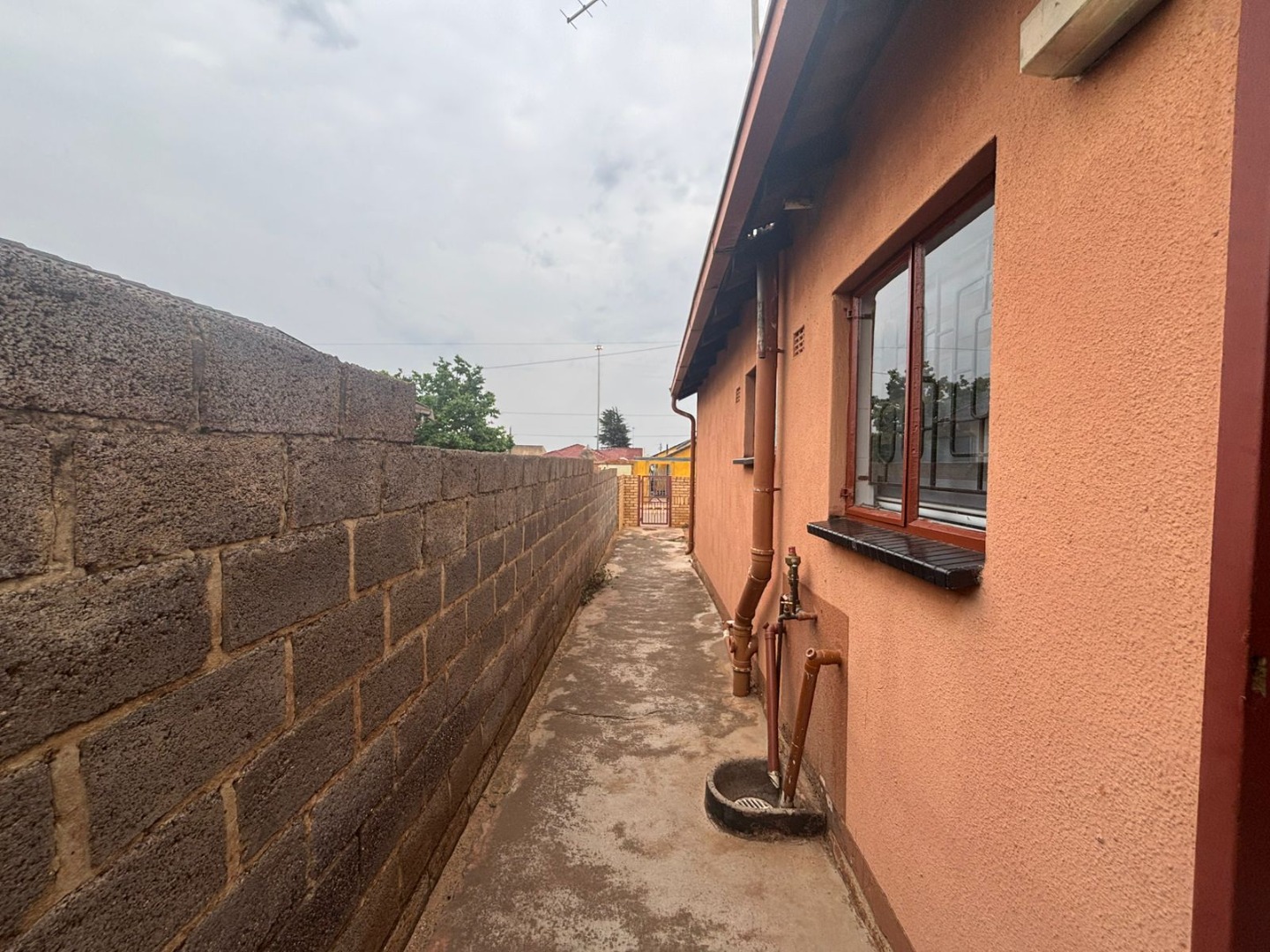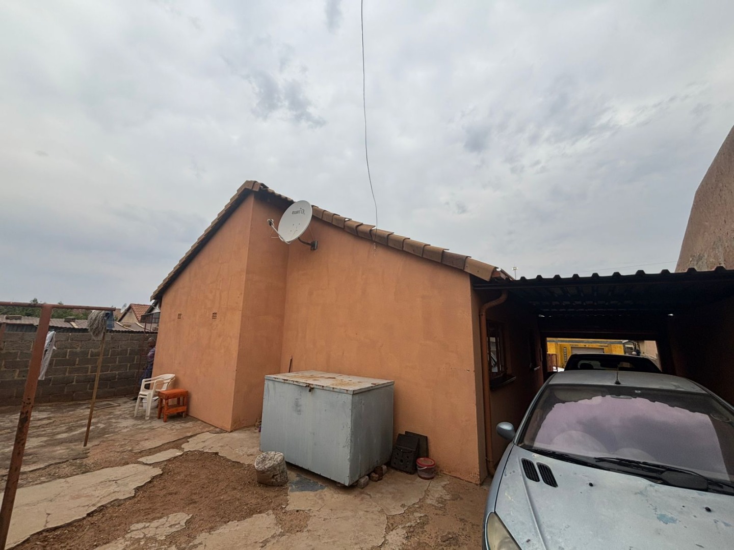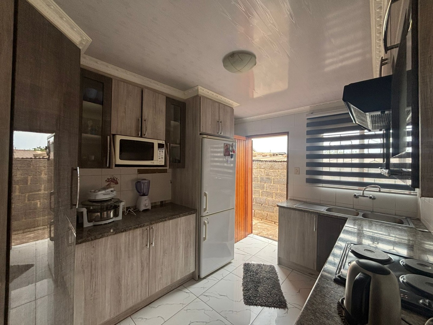 Welcome to this charming suburban home in Mohlakeng, Randfontein, offering a fantastic opportunity to create your dream living space. This lovely peach-colored detached house immediately catches your eye with its inviting exterior, complete with an attached double garage and a convenient paved driveway. While the front yard is currently a blank canvas, it's just waiting for your personal touch to transform it into a vibrant garden oasis, enhancing that all-important kerb appeal. Step inside and discover a comfortable layout designed for easy living. The home features a cozy living area with tiled flooring, perfect for relaxing after a long day. You'll be pleased to find not one, but two functional kitchen spaces! The main kitchen boasts modern light wood-grain cabinetry, dark laminate countertops, and a built-in oven, making meal prep a breeze. The second kitchen area offers additional convenience with granite-effect countertops, a double sink, and direct access to an outdoor paved area, ideal for those who love to cook or need extra utility space. This home offers two comfortable bedrooms, providing ample space for family or guests. One bedroom includes a practical built-in wardrobe with mirrored doors, adding both storage and a touch of style. The neat bathroom is fully tiled and features a modern vanity with an above-counter sink, a toilet, and a bathtub with an integrated shower head, ensuring all your daily needs are met. Natural light streams into the rooms, and security bars on the windows provide peace of mind. Situated on a manageable 240 sqm erf with an 85 sqm floor size, this property is easy to maintain. The attached garage provides secure parking for two vehicles, and the partially enclosed boundary walls offer a sense of privacy. This Mohlakeng home is a wonderful find for anyone looking to settle down in a friendly suburban environment within Randfontein. Key Features: * 2 Bedrooms, 1 Bathroom * 2 Garages * Modern Kitchens (two areas) * Tiled Flooring Throughout * Paved Driveway * Security Bars on Windows * Attached Double Garage * 240 sqm Erf Size * 85 sqm Floor Size