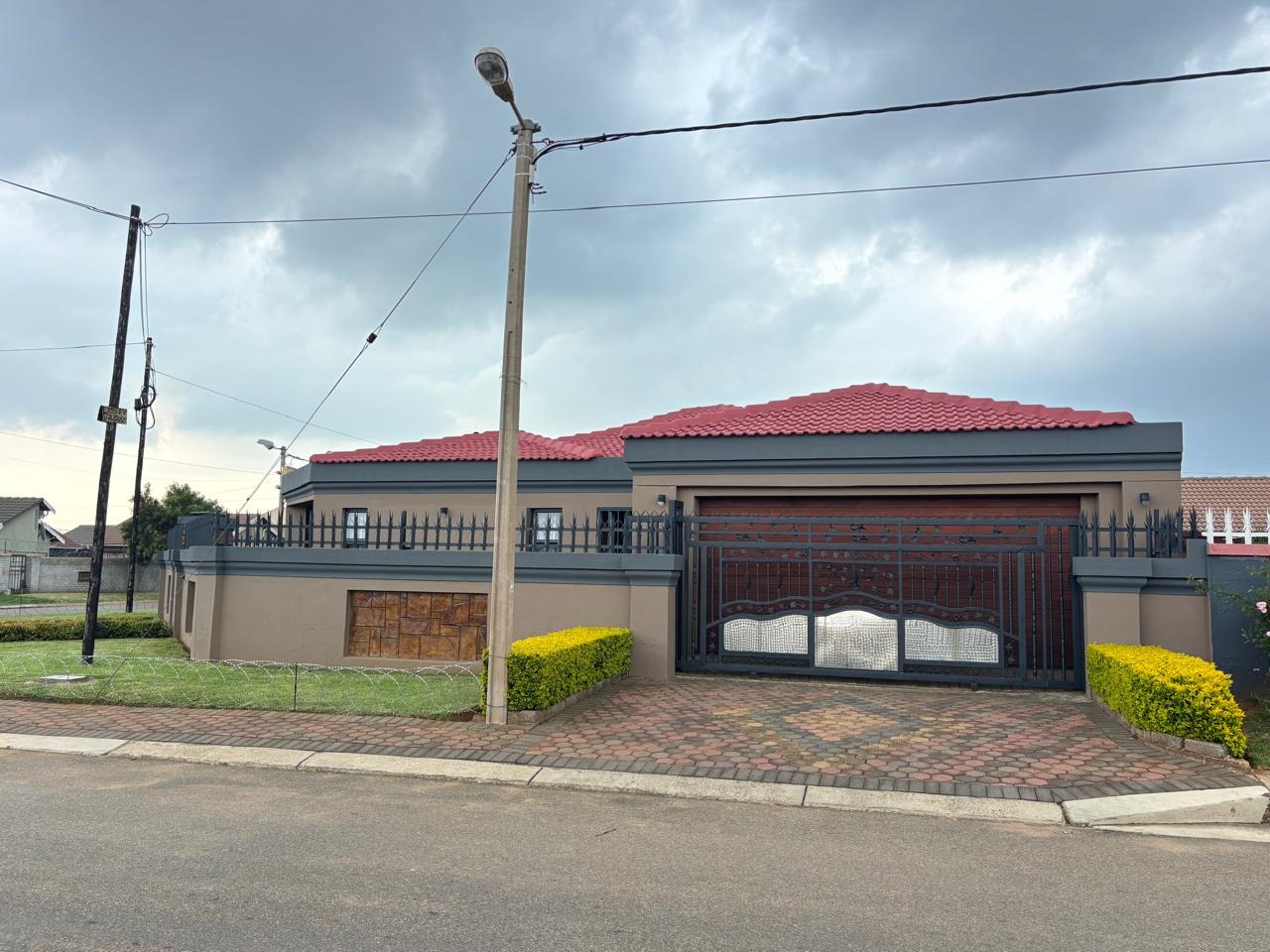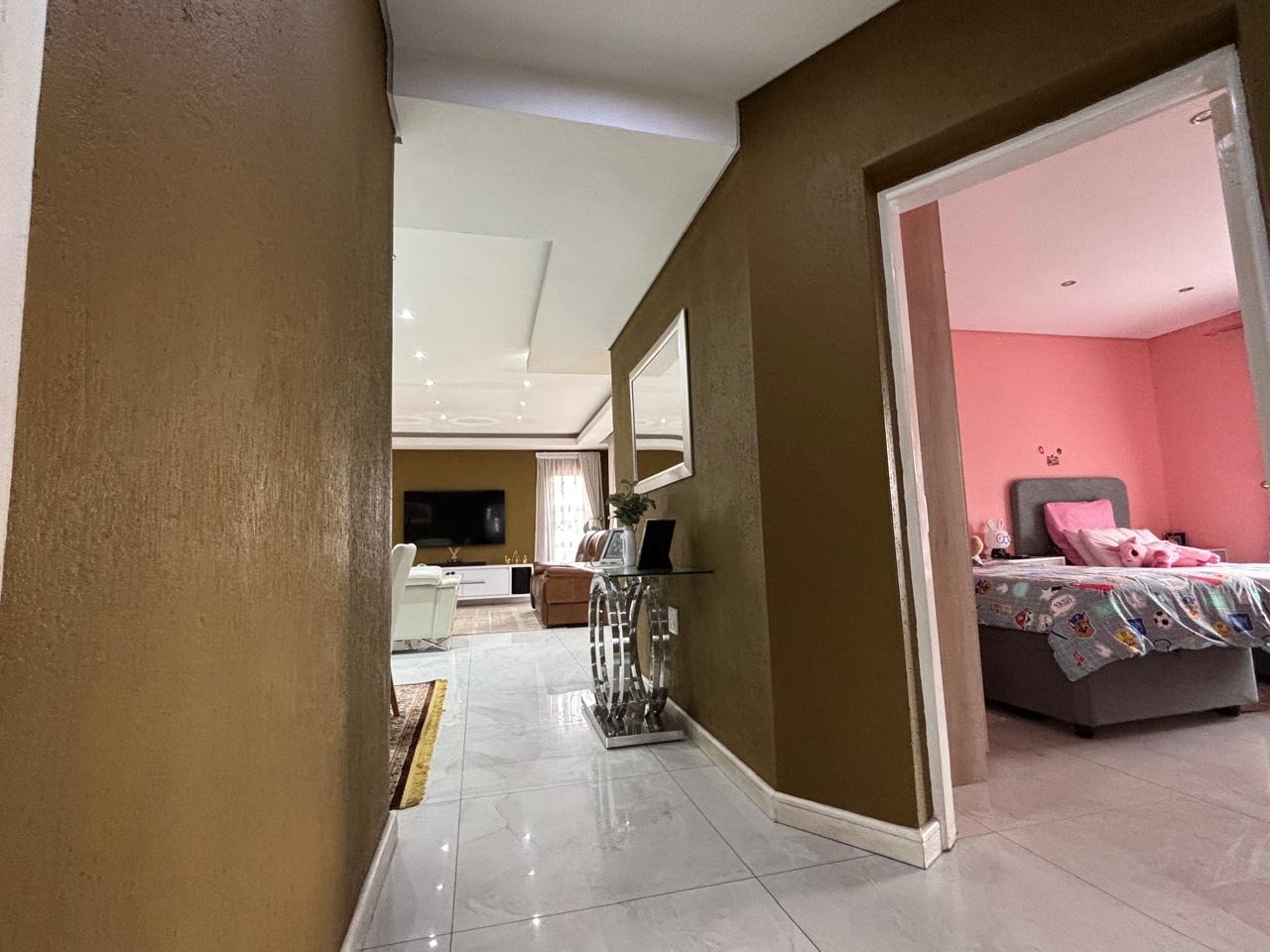Discover this modern family home situated in the suburban heart of Randfontein Central, Randfontein, South Africa. This inviting residence offers a generous 230 sqm of living space on a 328 sqm erf, designed for comfortable family living.