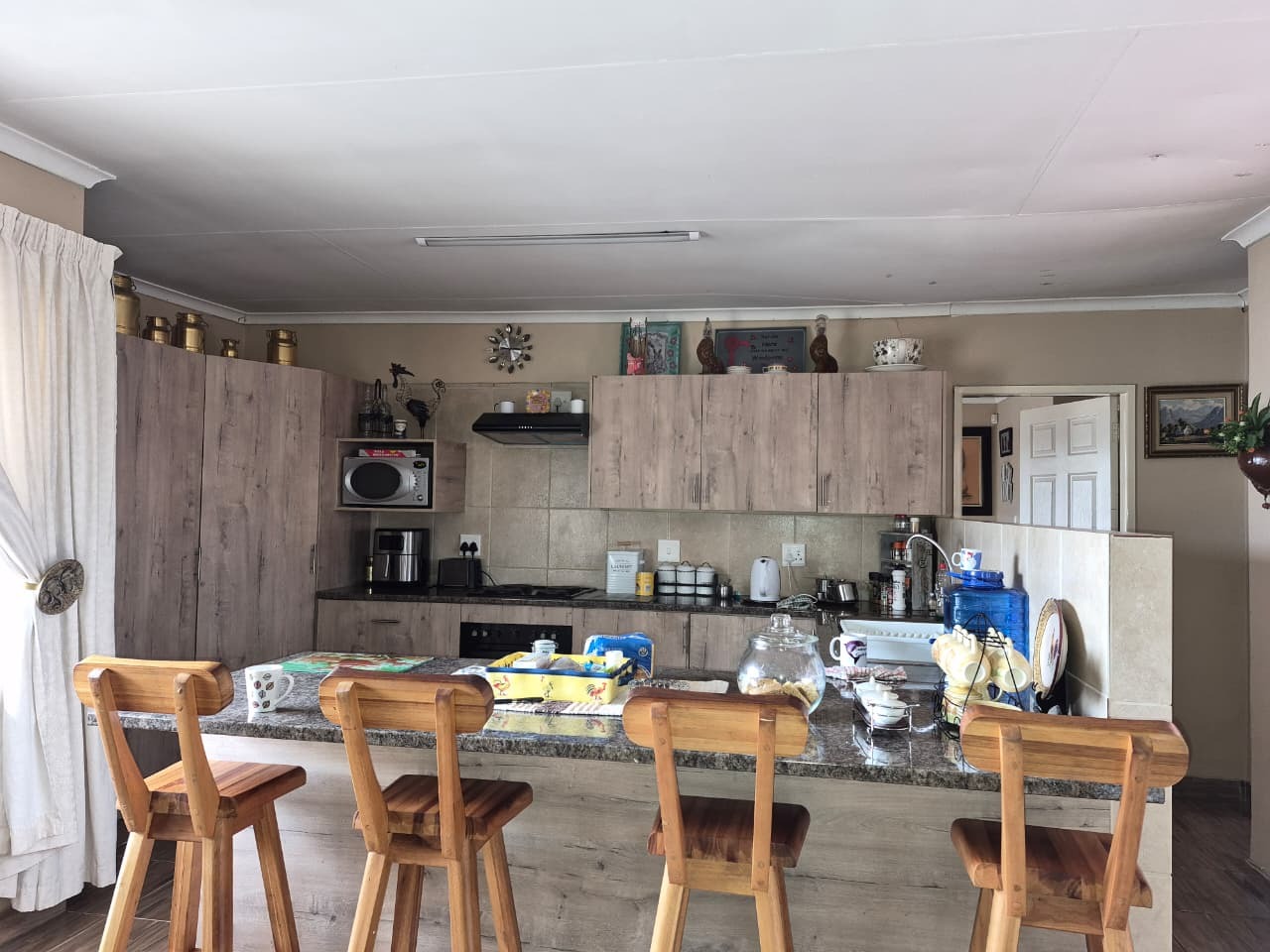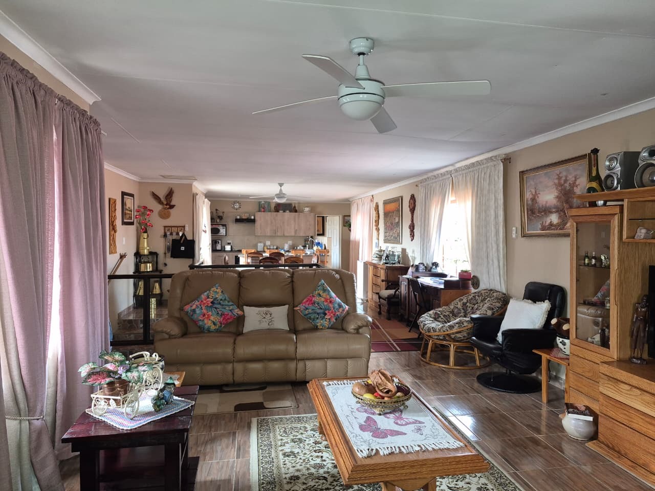 The main residence features five bedrooms and three bathrooms, alongside a dedicated lounge and dining room and a kitchen that offers a solid foundation with tiled walls and ample counter space. Going outside you will find a beautiful cottage with one bedroom ,one full bathroom ,a lounge ,dinning area and a spacious modern kitchen with ample cupboard space.