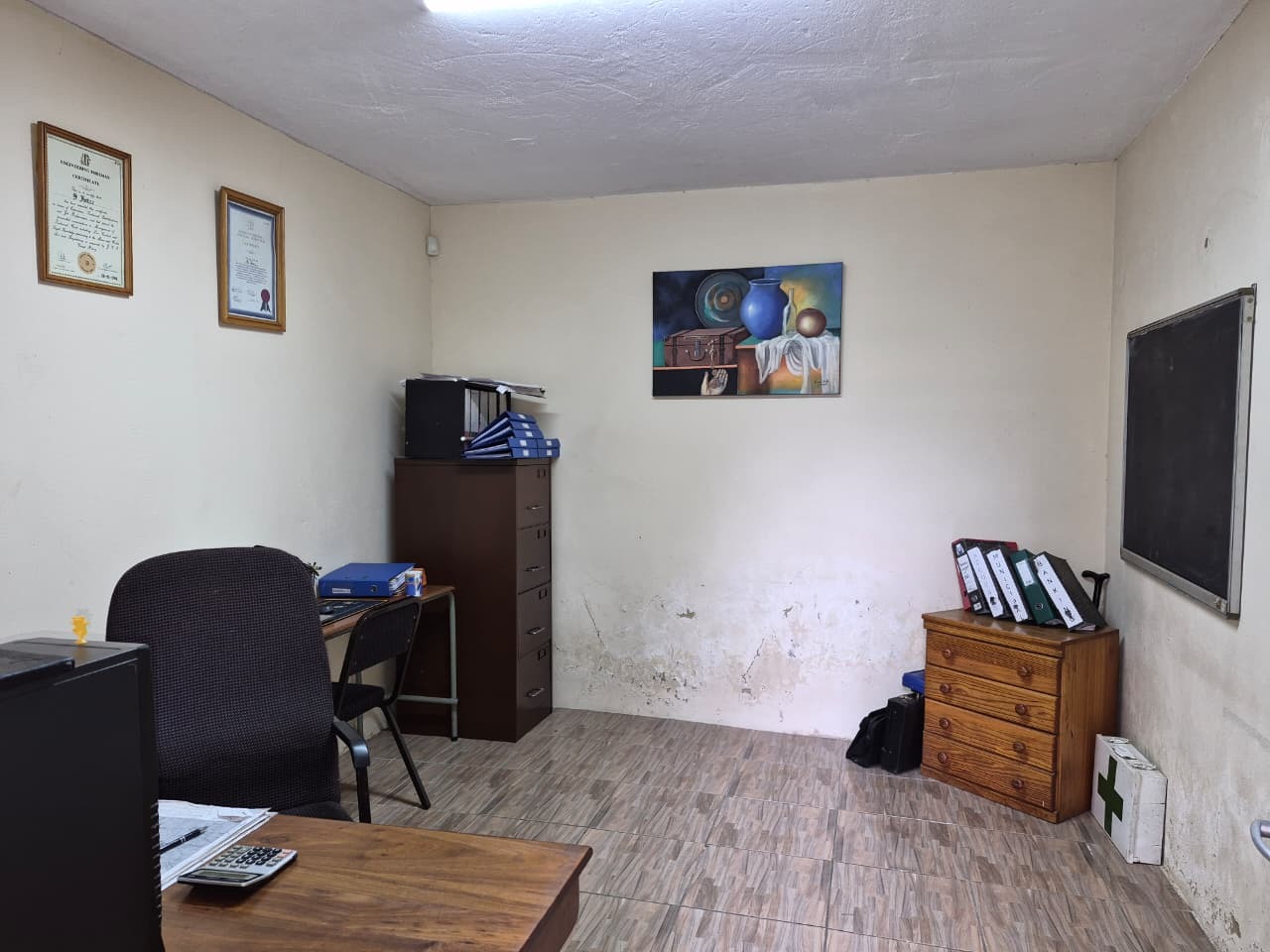 Outside you will find ample yard space for parking or outdoor activities ,a secure perimeter wall ,well maintained and paved yard and multiple parking bays ,this versatile property combines comfortable family living with practical work spaces ,making it perfect for home owners seeking both residential and business functionality.