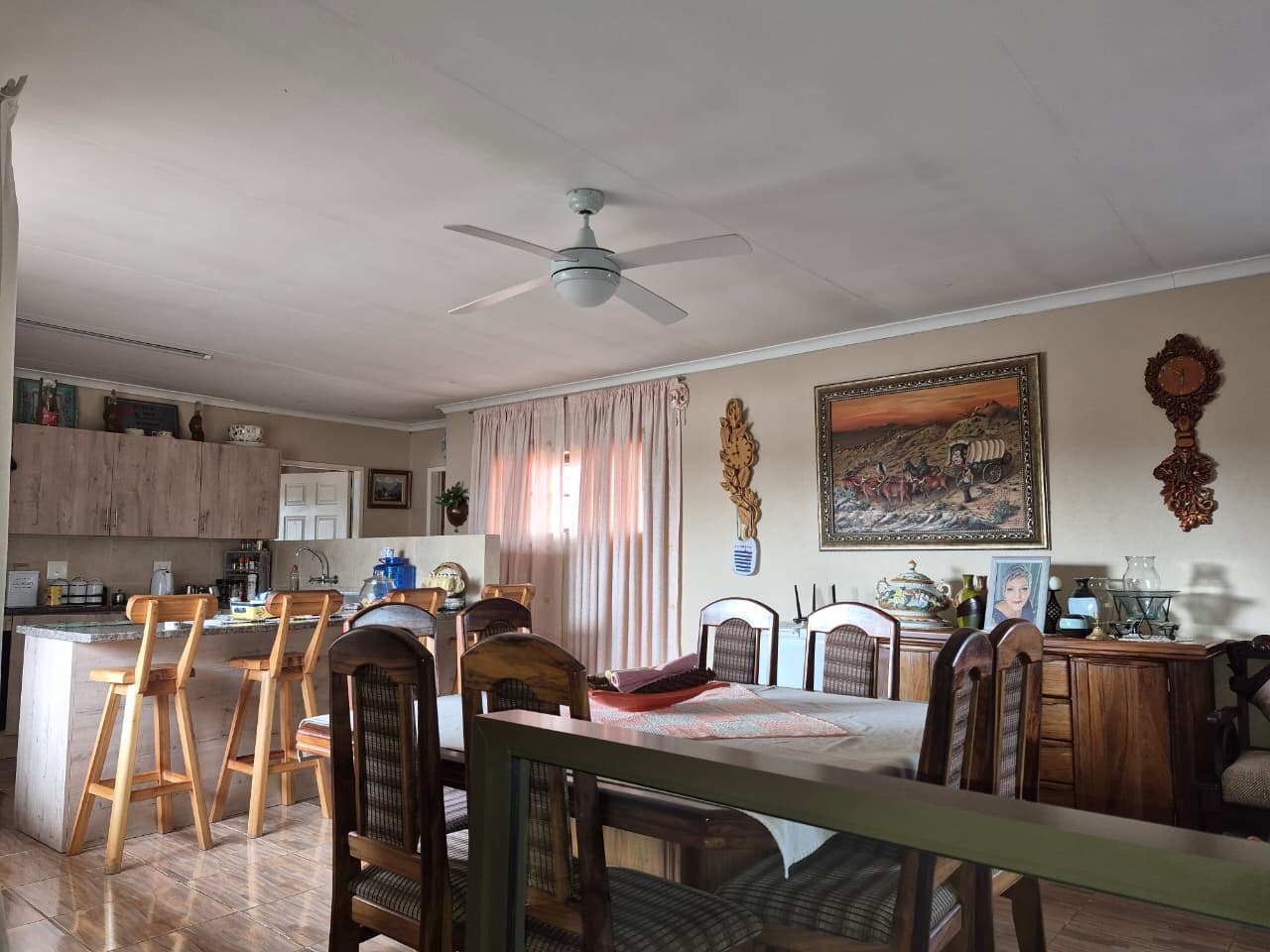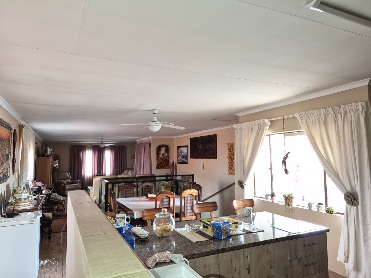 The main residence features five bedrooms and three bathrooms, alongside a dedicated lounge and dining room and a kitchen that offers a solid foundation with tiled walls and ample counter space. Going outside you will find a beautiful cottage with one bedroom ,one full bathroom ,a lounge ,dinning area and a spacious modern kitchen with ample cupboard space.