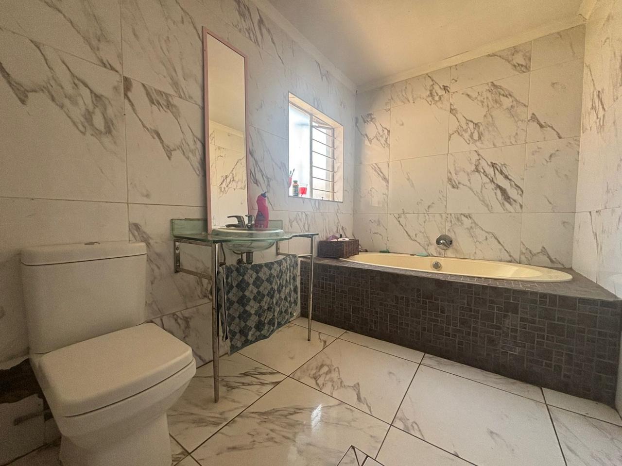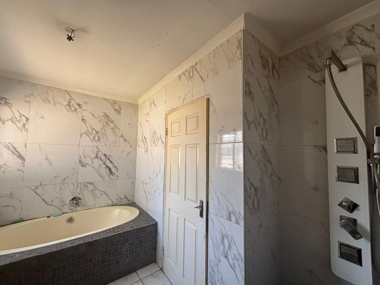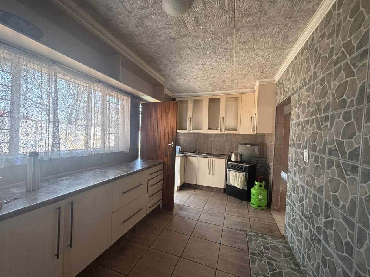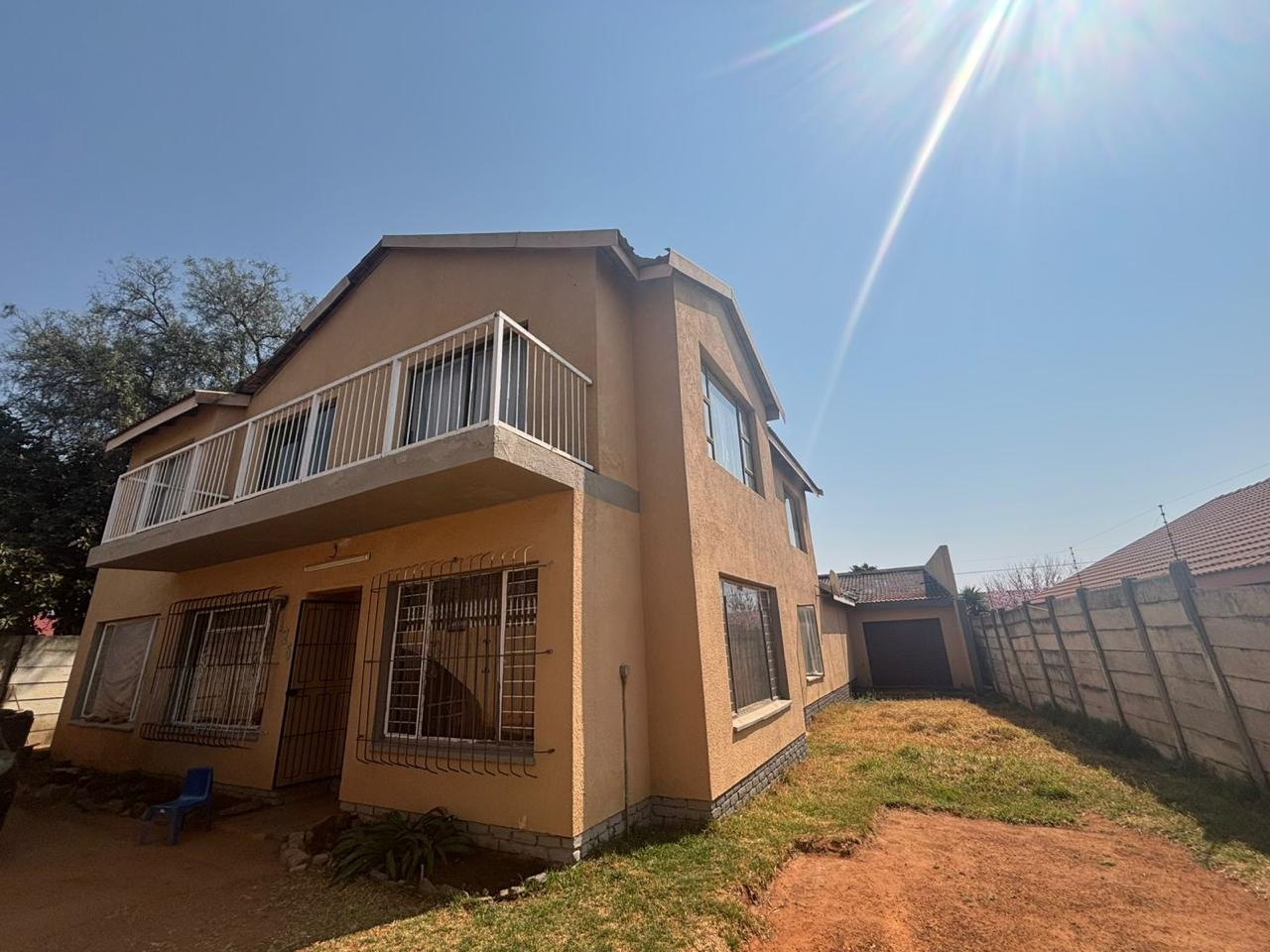 Discover this spacious residential property located in the suburban area of Randpoort, Randfontein, South Africa. This two-story home offers a generous floor size of 500.00 sqm on a 570.00 sqm erf, providing ample space for a growing family. The exterior features a two-story design with a second-floor balcony and an attached garage, complemented by a secure perimeter with a high wall and fencing, offering a sense of privacy and safety. The front yard presents an opportunity for personalized landscaping to enhance its kerb appeal. Step inside to find a well-proportioned interior with tiled flooring throughout, ensuring easy maintenance. The layout includes two comfortable lounges and a dedicated dining room, perfect for both everyday living and entertaining. Natural light floods the spacious living areas, which also feature a prominent staircase adding architectural interest. The open-plan kitchen is equipped with ample counter space, sufficient cabinetry, and a gas stove, providing a functional hub for culinary activities. The residence boasts six bedrooms, each offering tiled flooring and good natural light, with one featuring modern marble-patterned tiles and a wall-mounted TV. There are three bathrooms, including a convenient en-suite, with features such as a corner bathtub and a multi-function shower panel. Built-in closet systems provide practical storage solutions. Outdoor living is enhanced by a private pool area, a lapa, and a built-in bar, creating an ideal setting for relaxation and social gatherings. Sliding doors seamlessly connect the indoor spaces to the garden and paved outdoor areas. Pets are allowed, making this a welcoming home for animal lovers. This property offers a solid foundation for those looking to establish roots in Randpoort. Key Features: * Six Bedrooms, Three Bathrooms (one en-suite) * Two Lounges and One Dining Room * Spacious 500.00 sqm Floor Size * Private Swimming Pool and Lapa * Attached Garage and Secure Perimeter * Built-in Bar and Balcony * Tiled Flooring Throughout * Pet-Friendly Property * Located in Randpoort, Randfontein