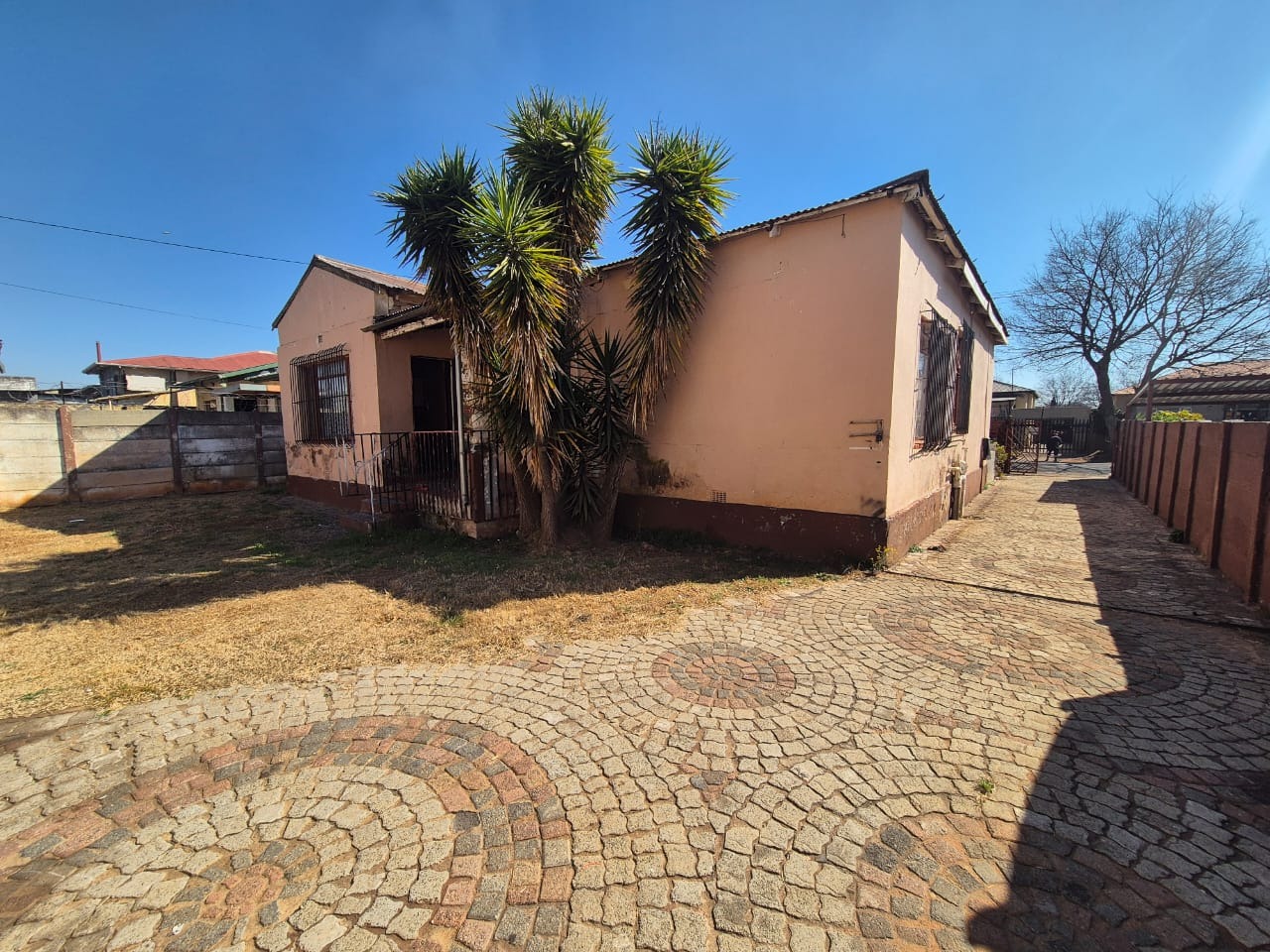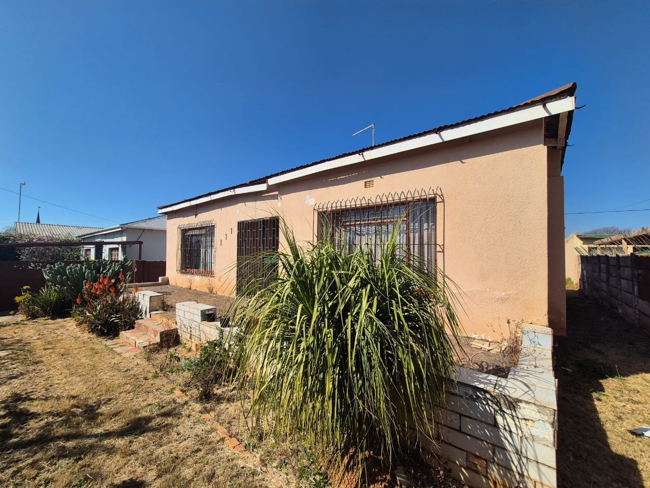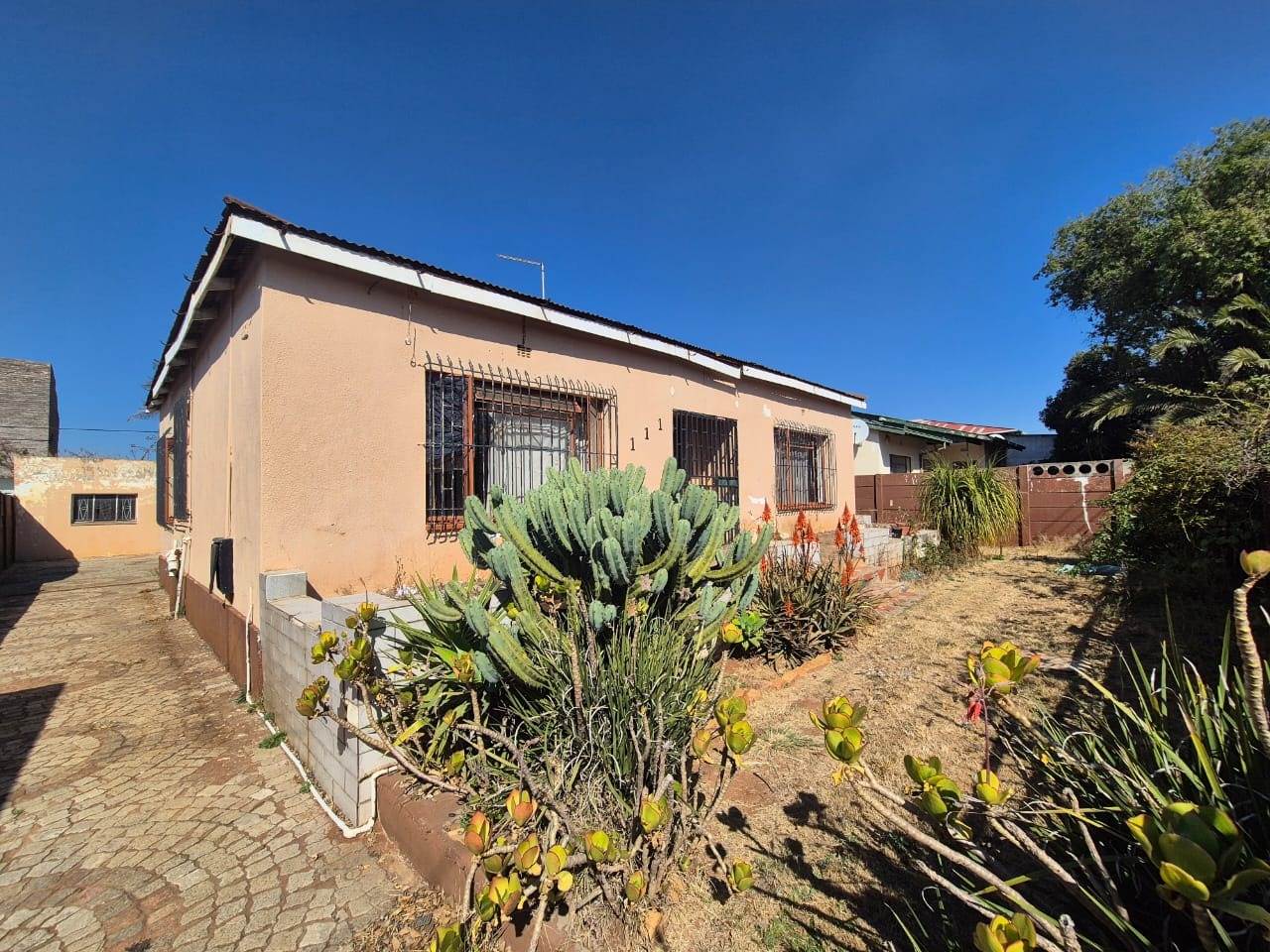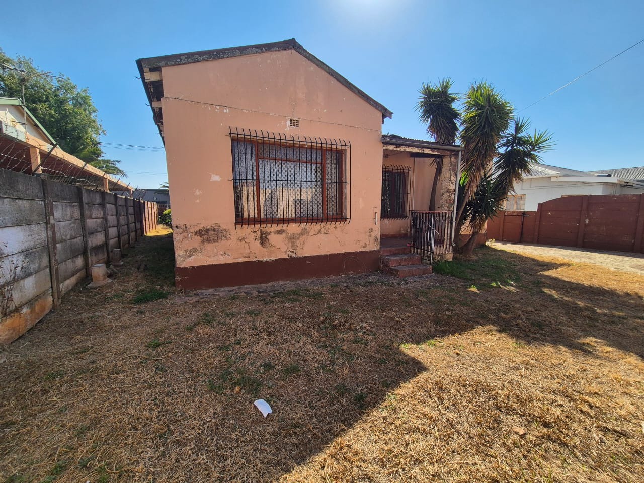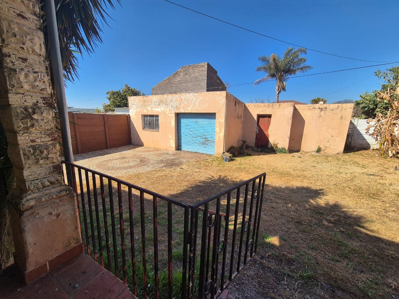 Outside, the property offers a single garage with a roll-up door, an additional outside room, burglar bars, a security gate, a garden, and a paved driveway.