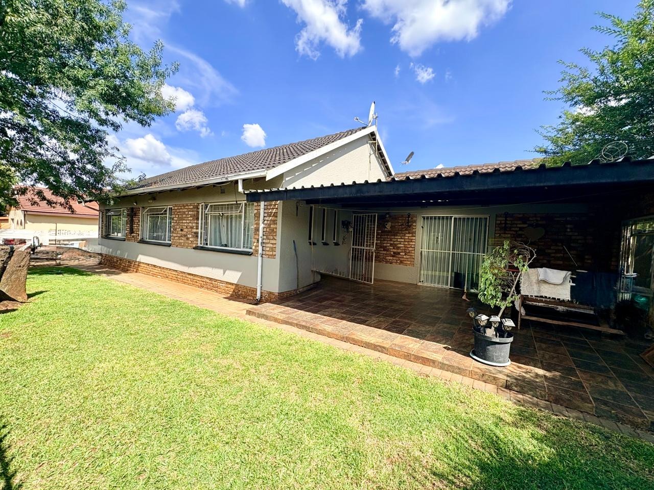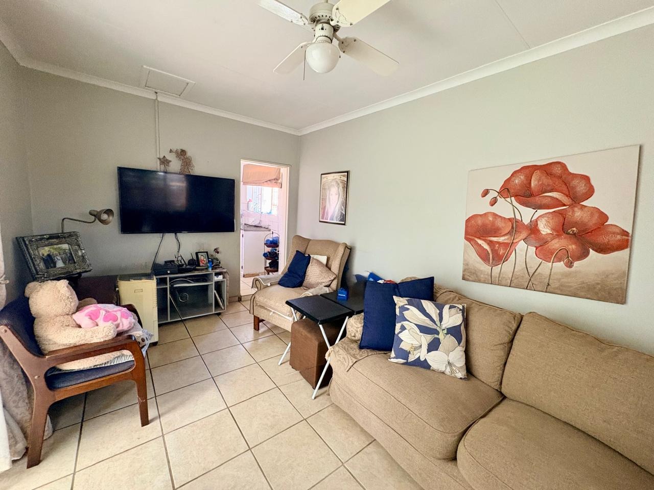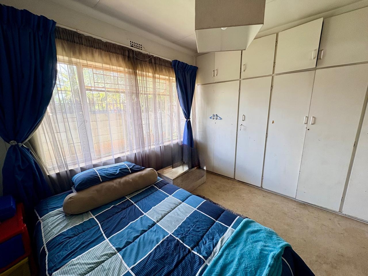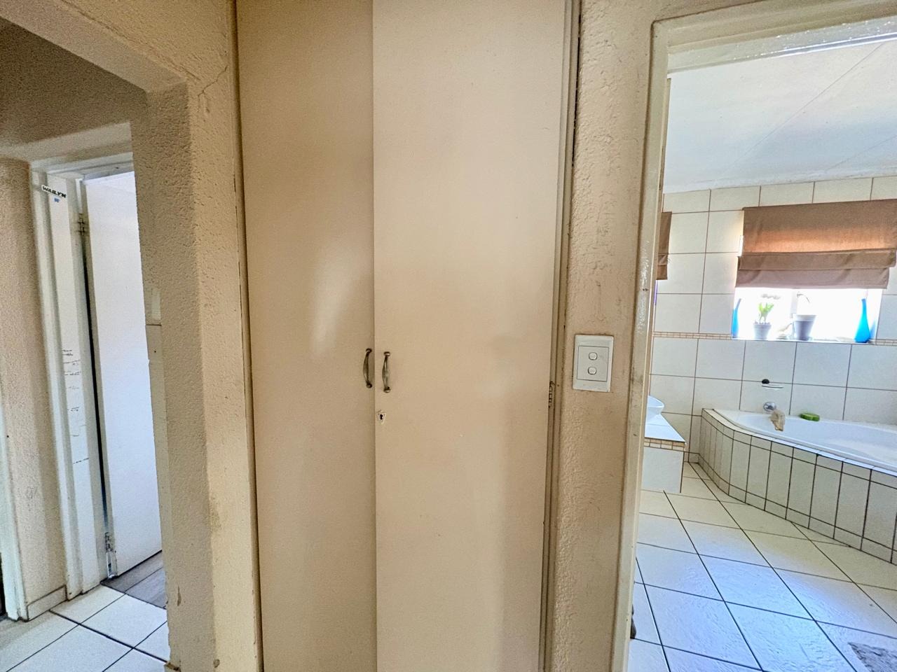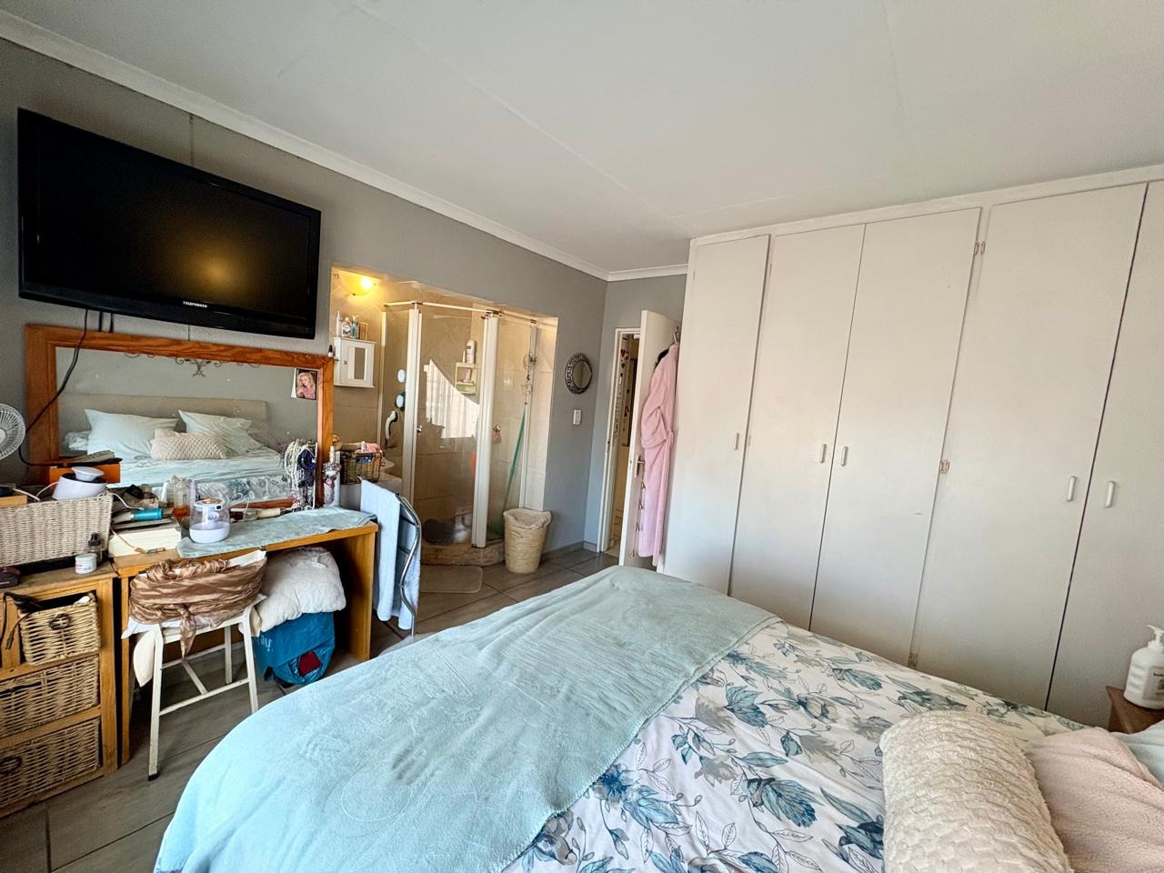 This well-kept family home offers comfortable living with three bedrooms, all fitted with built-in cupboards. The main bedroom features an en-suite bathroom with a shower and toilet, while the large guest bathroom is fitted with a bath, shower, and toilet.