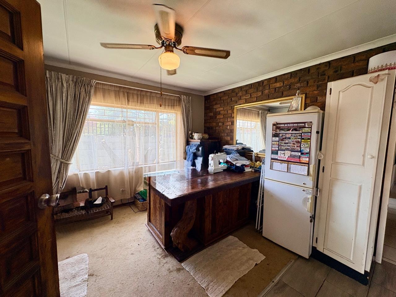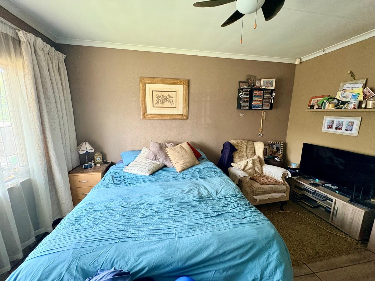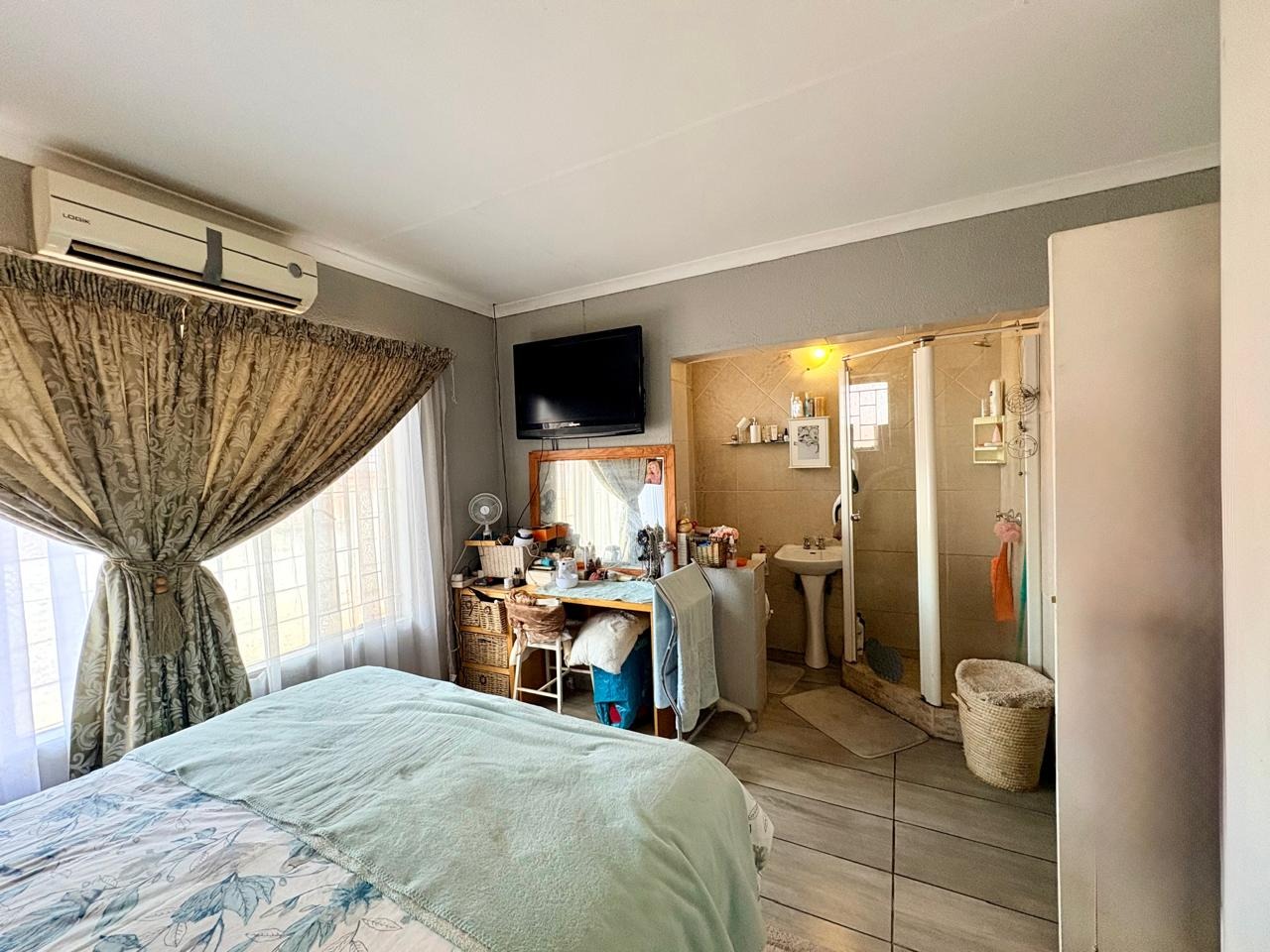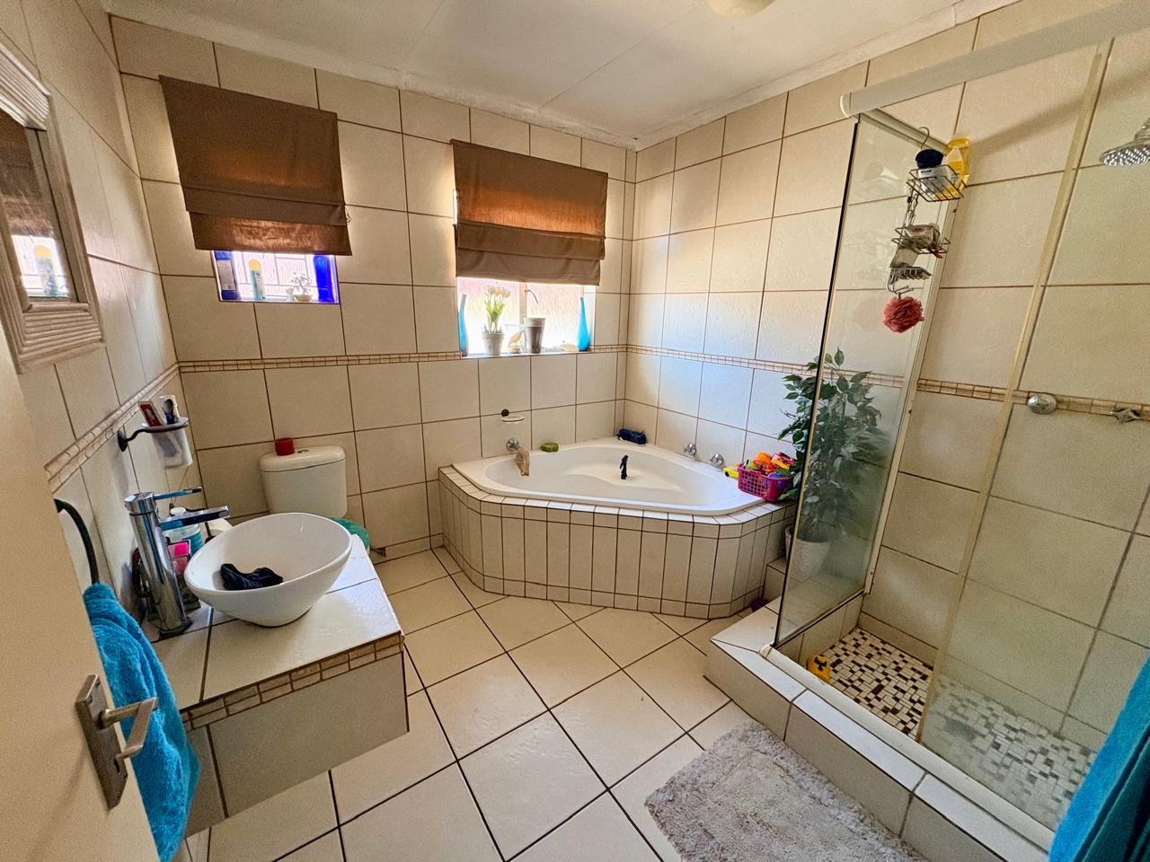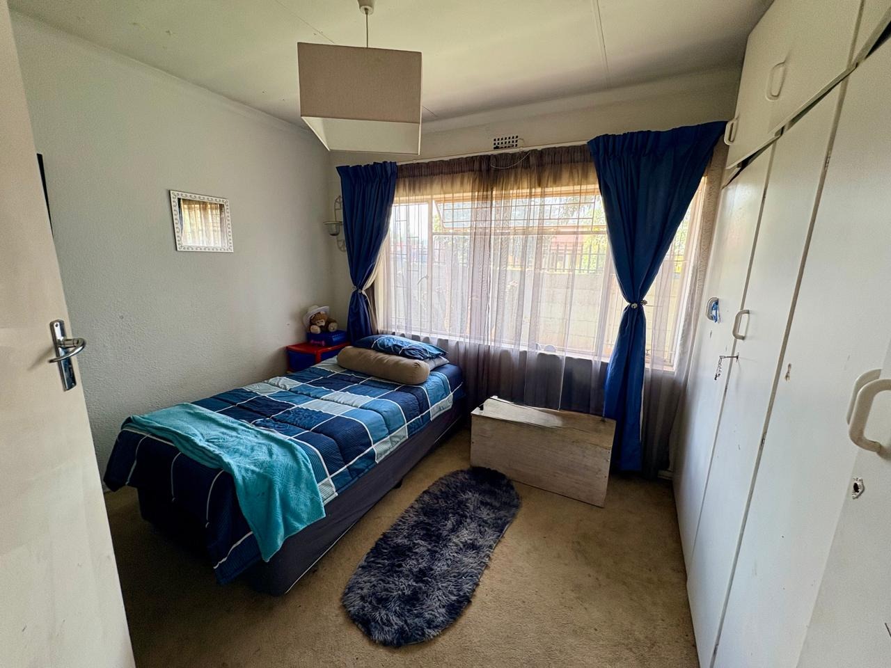 This well-kept family home offers comfortable living with three bedrooms, all fitted with built-in cupboards. The main bedroom features an en-suite bathroom with a shower and toilet, while the large guest bathroom is fitted with a bath, shower, and toilet.