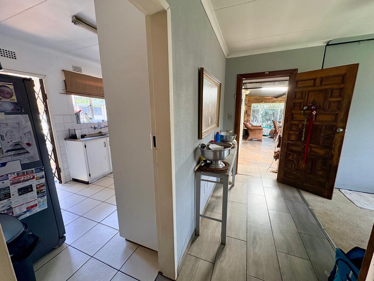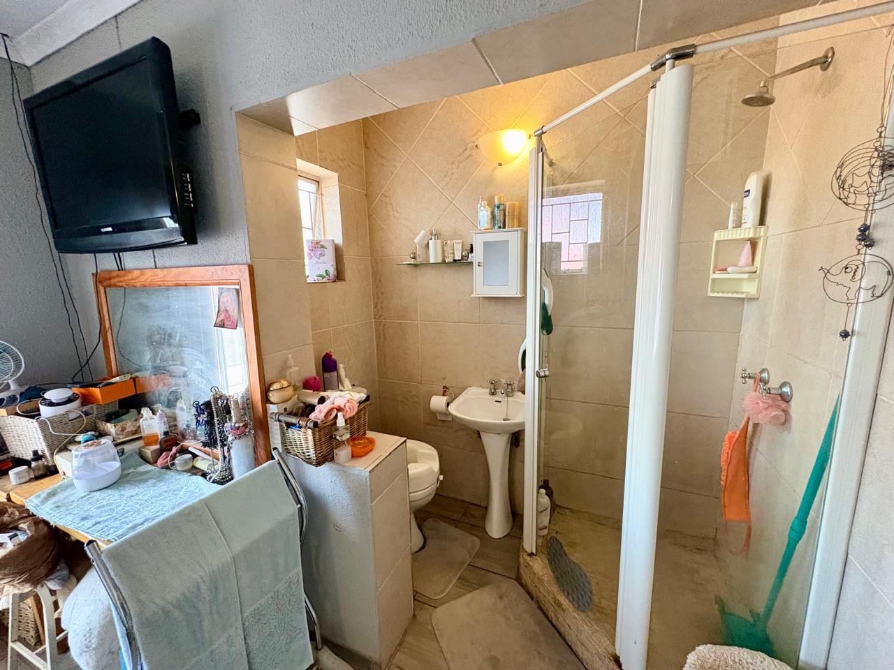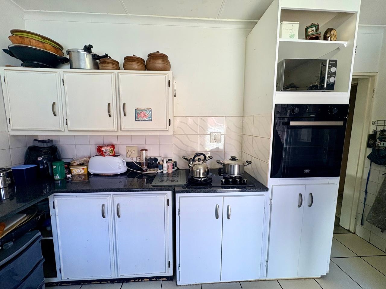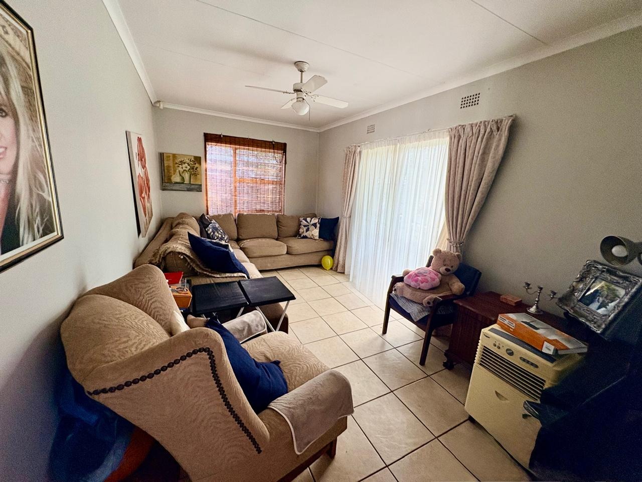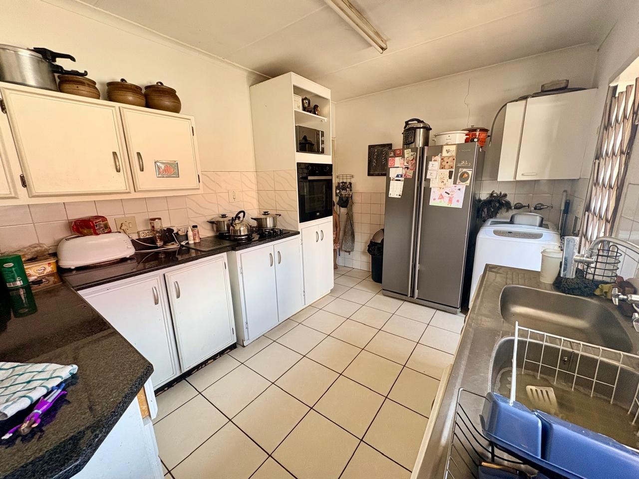 This well-kept family home offers comfortable living with three bedrooms, all fitted with built-in cupboards. The main bedroom features an en-suite bathroom with a shower and toilet, while the large guest bathroom is fitted with a bath, shower, and toilet.