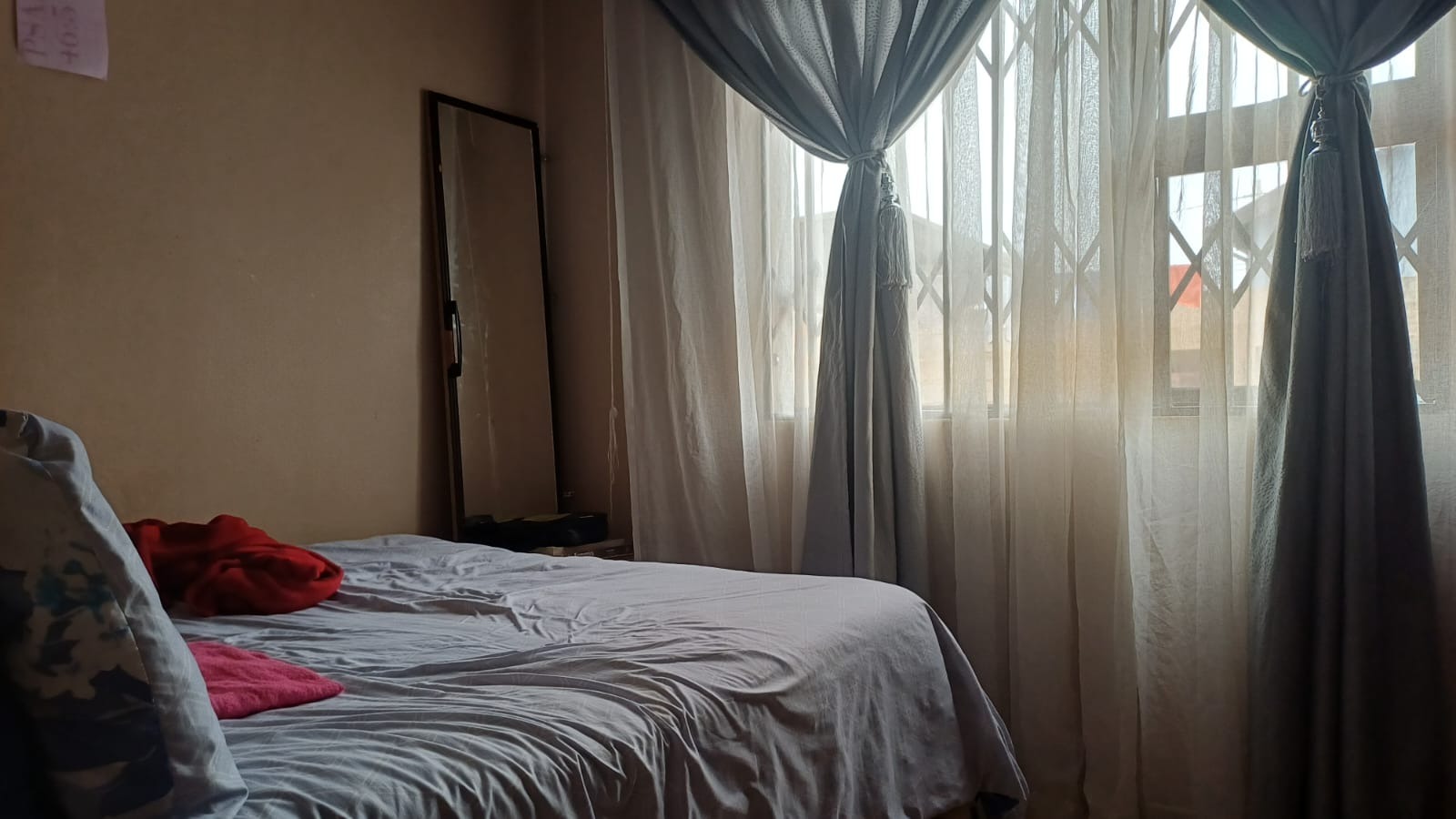 Outside, the 250 sqm erf provides a generous, fully enclosed yard. While currently unlandscaped with a dirt/gravel surface, it offers a blank canvas for future gardening projects or outdoor customisation. The property boasts ample off-street parking for up to four vehicles, a significant advantage in this suburban setting. Pets are allowed, making it suitable for animal lovers.