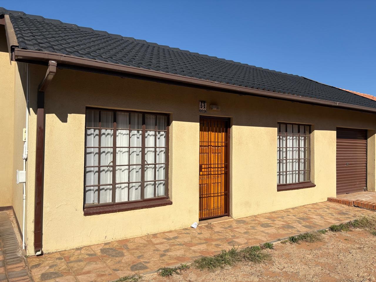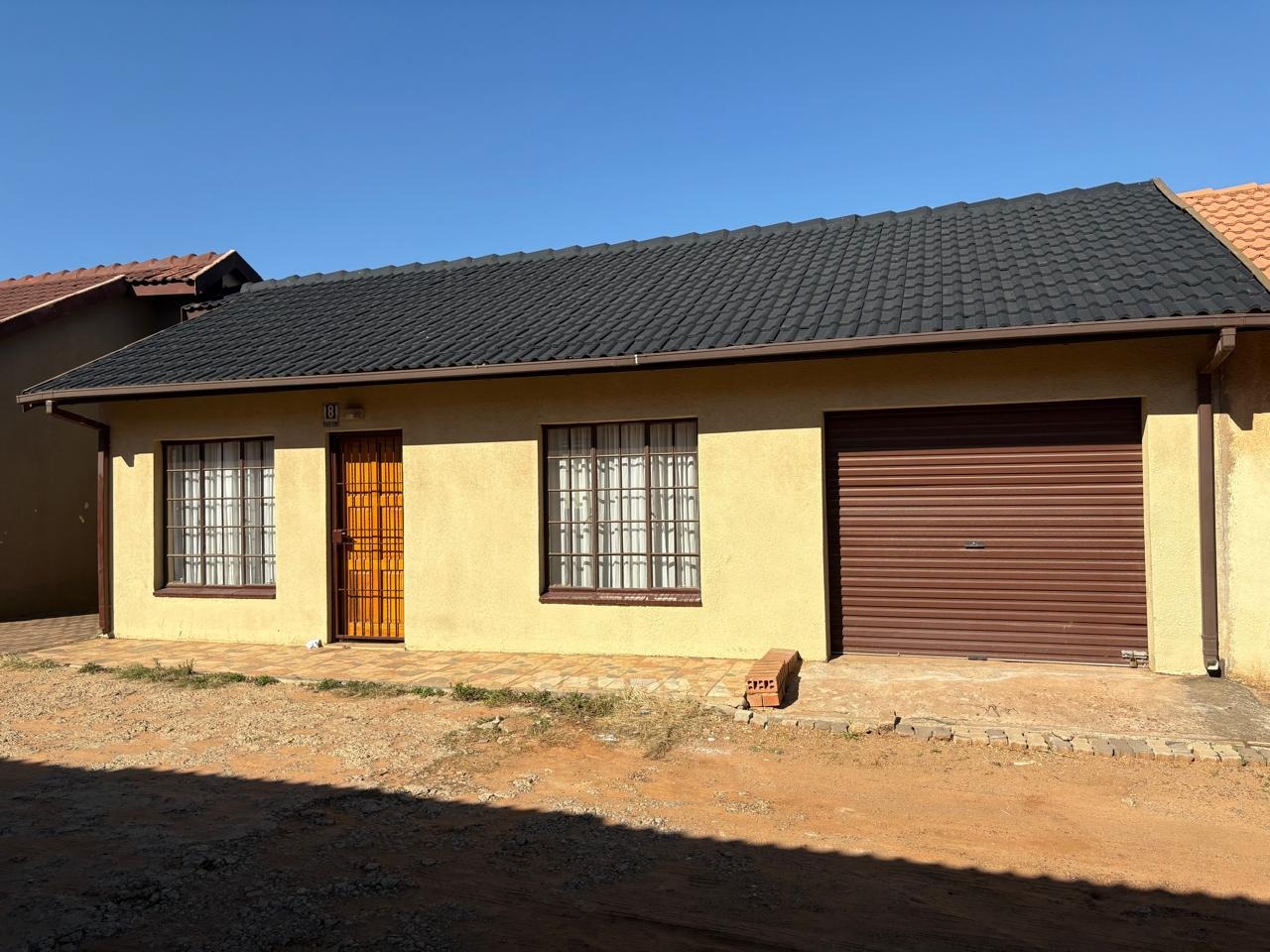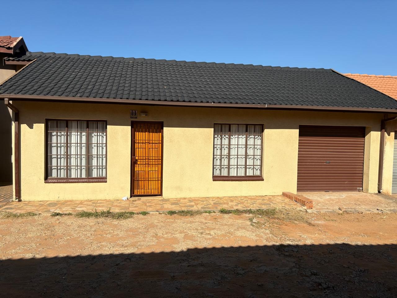 Welcome to this charming two-bedroom townhouse nestled in a safe and secure neighborhood, conveniently located near all essential amenities, including the popular Umphakathi Mall. The home features a spacious open-plan kitchen and lounge area, fully tiled for a modern and low-maintenance finish. Both bedrooms are generously sized, offering built-in cupboards and tiled floors that enhance the clean, contemporary look throughout the home. The bathroom is neatly tiled and includes a bath, toilet, and basin, offering both functionality and comfort. Additional features include curtain rails throughout the house and a single roll-up garage that provides secure parking and extra storage space. This well-maintained property is perfect for first-time buyers, small families, or anyone seeking a comfortable and conveniently located home.