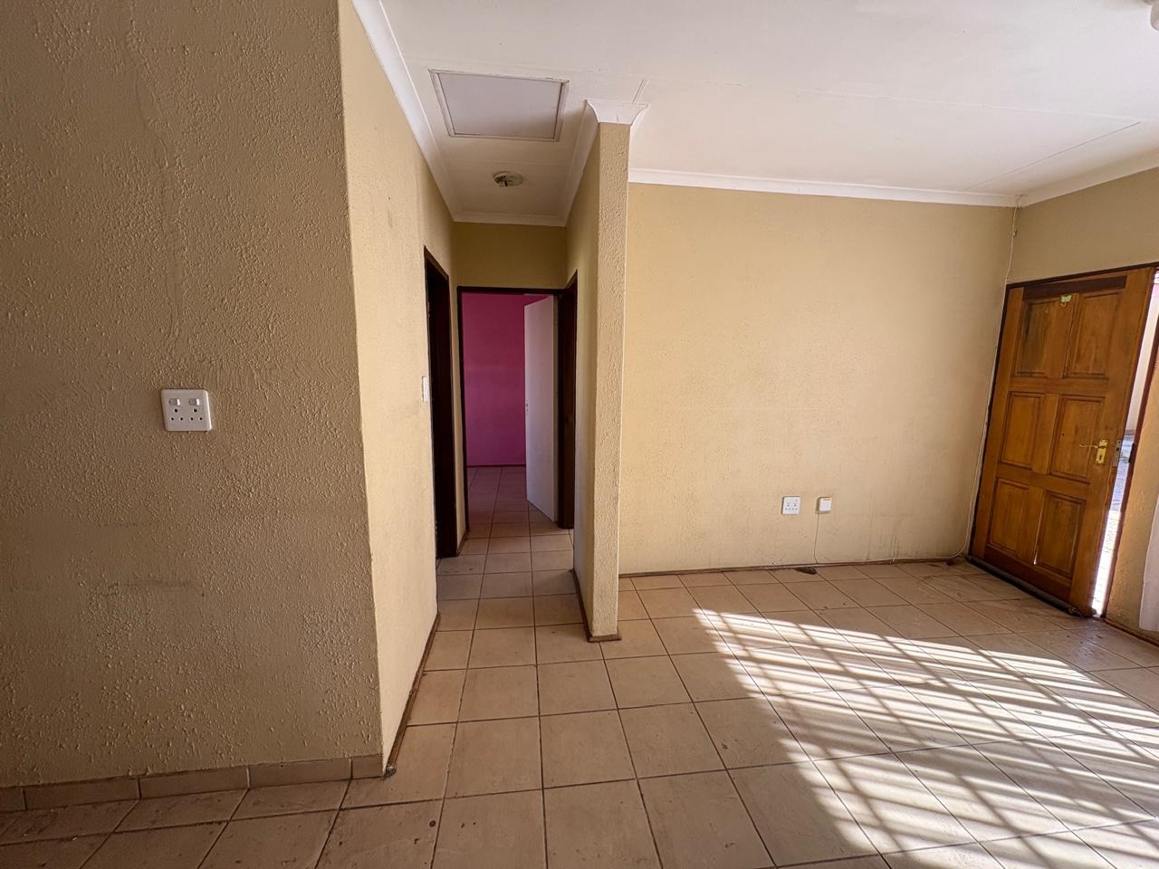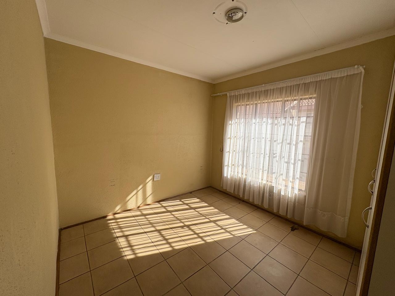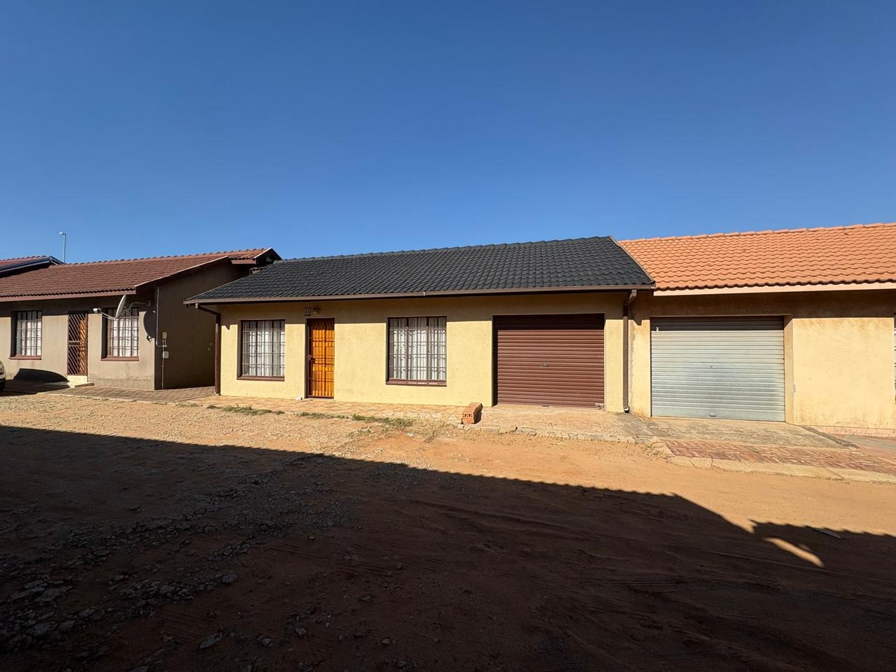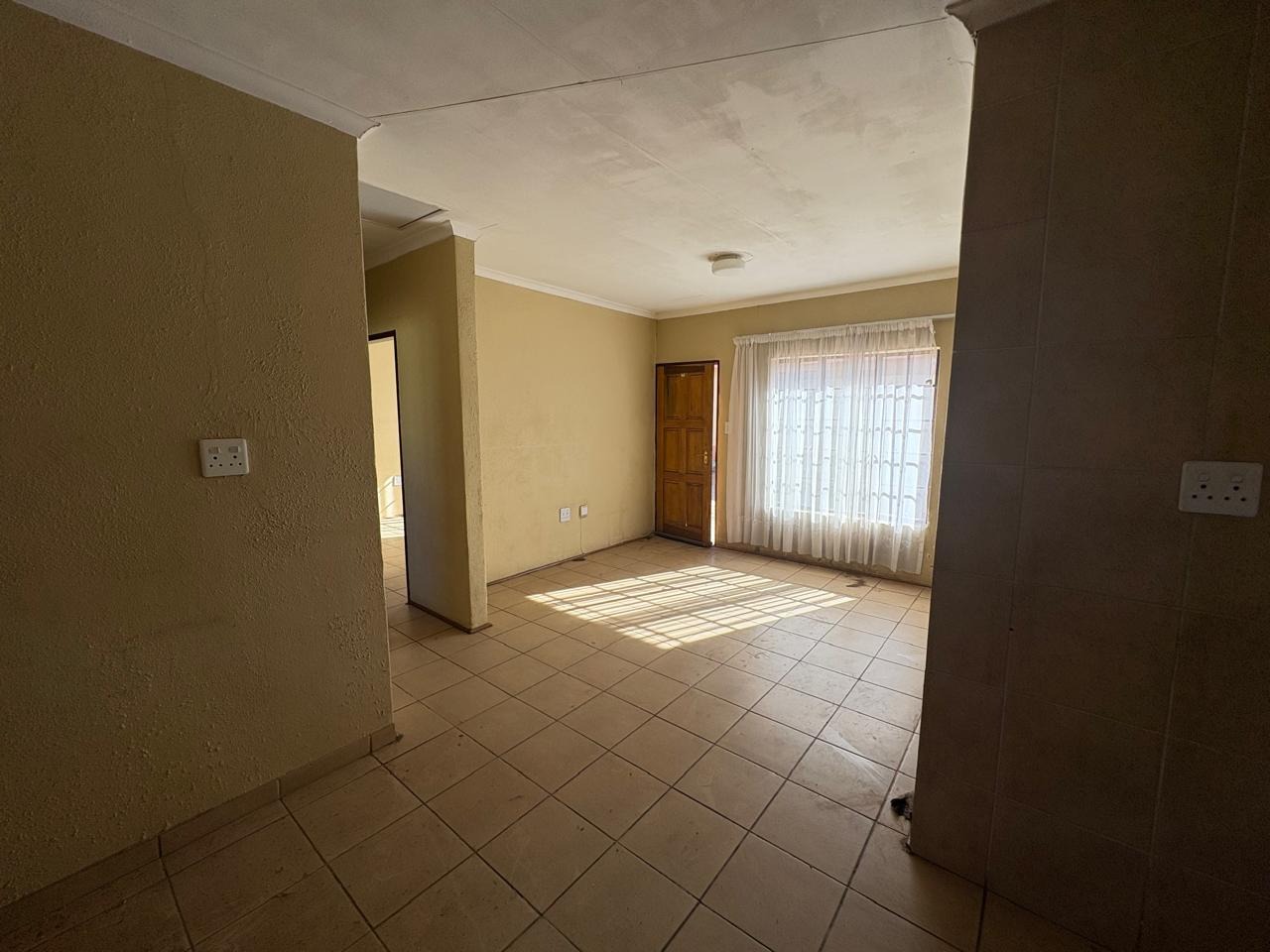 Welcome to this charming two-bedroom townhouse nestled in a safe and secure neighborhood, conveniently located near all essential amenities, including the popular Umphakathi Mall. The home features a spacious open-plan kitchen and lounge area, fully tiled for a modern and low-maintenance finish. Both bedrooms are generously sized, offering built-in cupboards and tiled floors that enhance the clean, contemporary look throughout the home. The bathroom is neatly tiled and includes a bath, toilet, and basin, offering both functionality and comfort. Additional features include curtain rails throughout the house and a single roll-up garage that provides secure parking and extra storage space. This well-maintained property is perfect for first-time buyers, small families, or anyone seeking a comfortable and conveniently located home.
