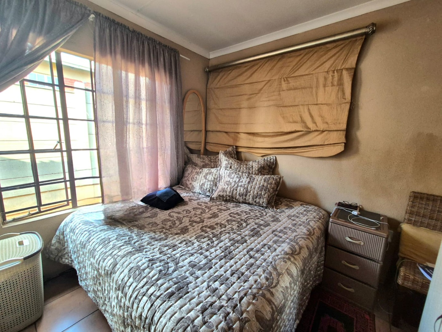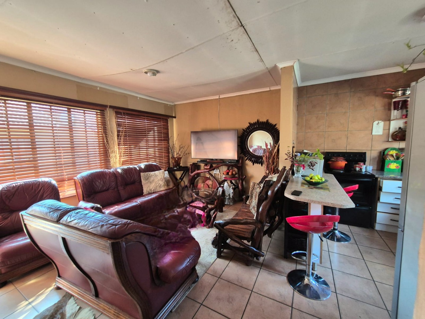 Discover this inviting 2-bedroom, 1-bathroom home, ideally situated in the suburban area of Toekomsrus, Randfontein. This property offers a fantastic opportunity for those looking to personalise and modernise their living space. The interior features a welcoming open-plan living and kitchen area, designed for comfortable daily living and entertaining. Tiled flooring extends seamlessly throughout these communal spaces, complemented by large windows that ensure an abundance of natural light, creating a bright and airy atmosphere.