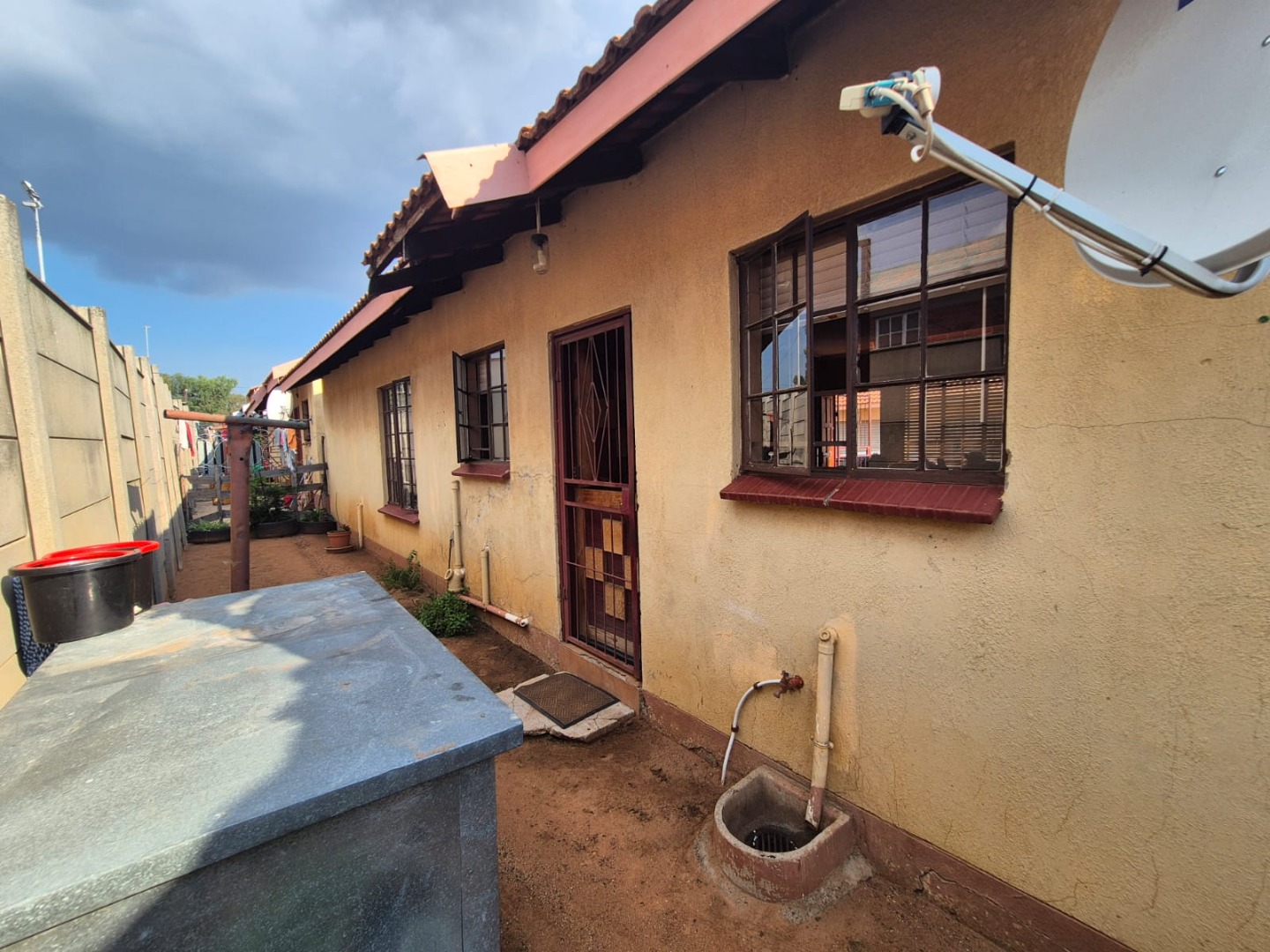 Externally, the single-story property boasts light-colored stucco walls and a durable tiled roof, presenting a classic suburban facade. Security is a priority, with robust burglar bars on all windows and security gates on doors, ensuring peace of mind for residents. An attached single garage provides convenient and secure parking. The 72 sqm erf offers a compact outdoor space, currently unpaved, with a concrete boundary wall, presenting an opportunity for landscaping or further development to create your ideal outdoor sanctuary. This pet-friendly home is perfect for those seeking a secure and adaptable property.