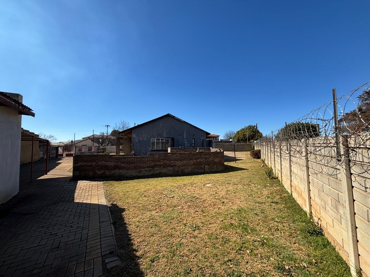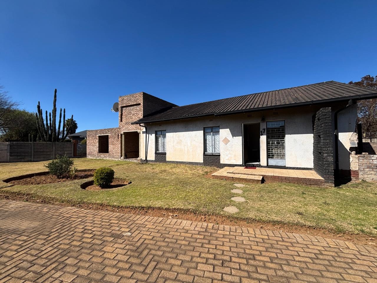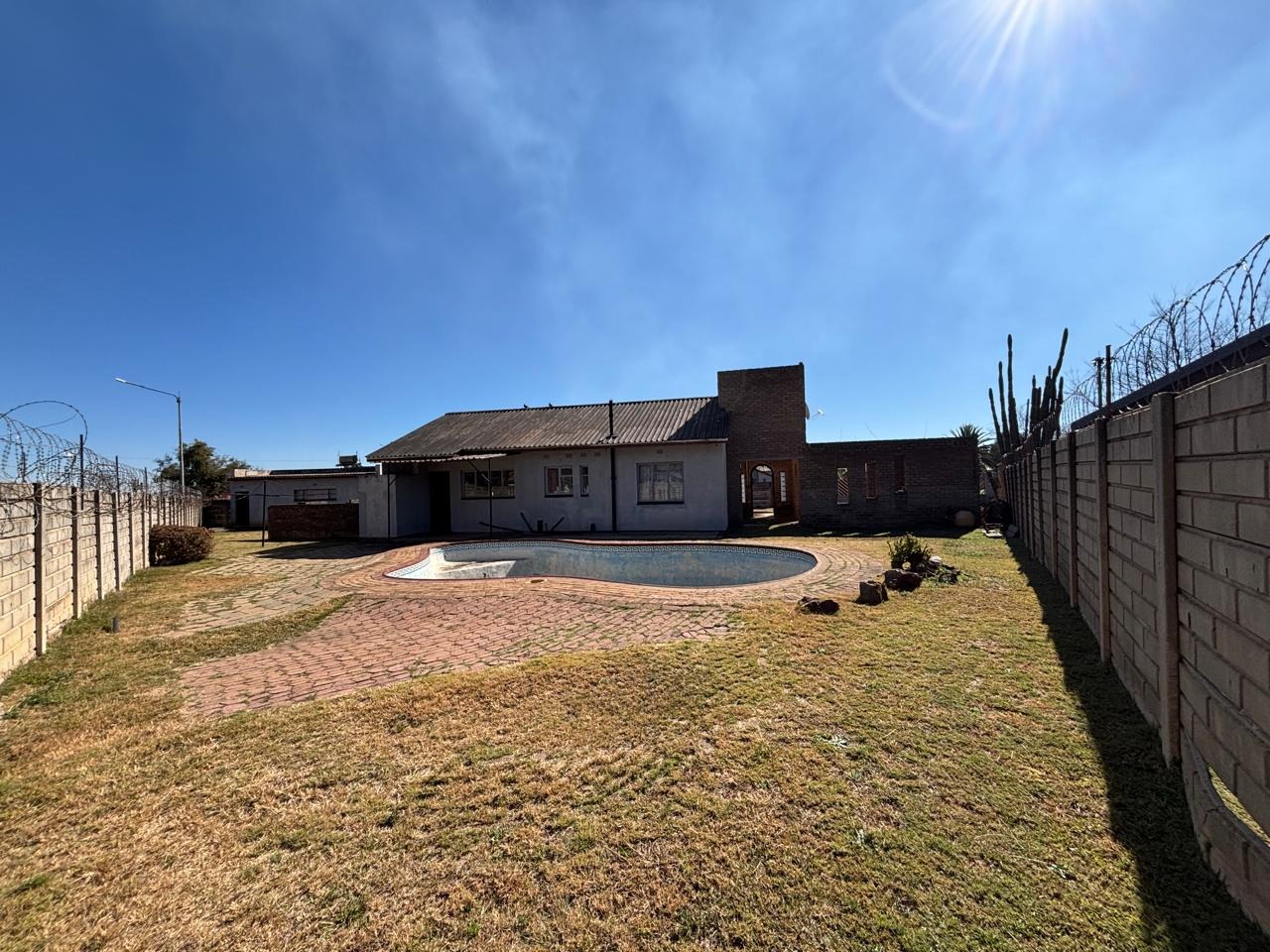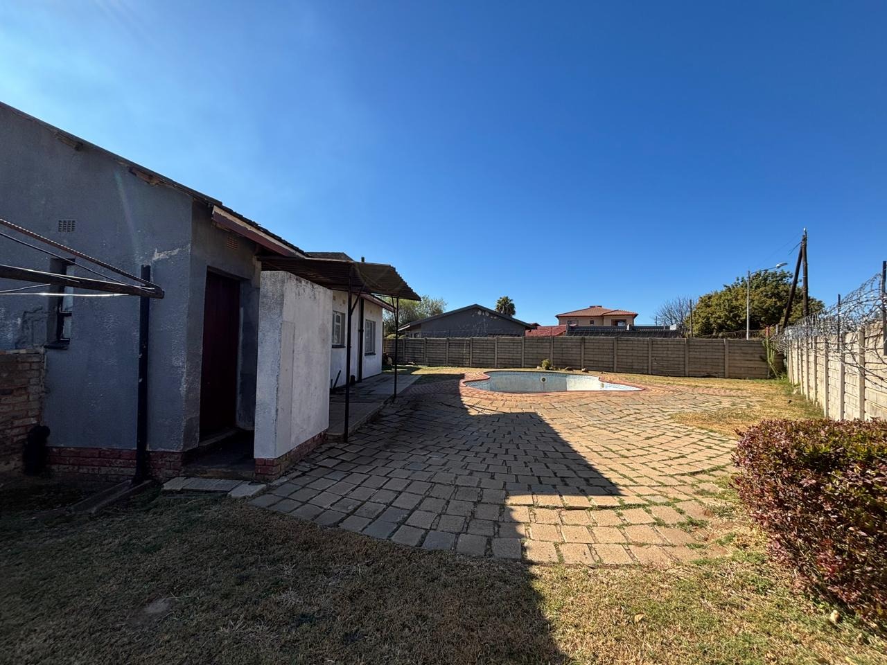 The property also features a swimming pool that requires some repairs, a single garage, and an additional room that can easily be converted into office space, storage, or staff accommodation. Its prime location directly across from the main road ensures high visibility, with ample public parking available. It’s also conveniently within walking distance of local schools, the Randfontein CBD, and the Fire Brigade Department.