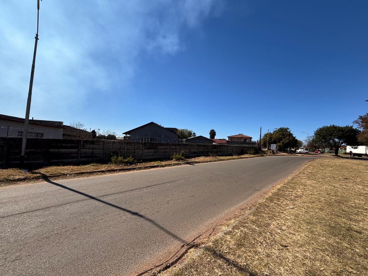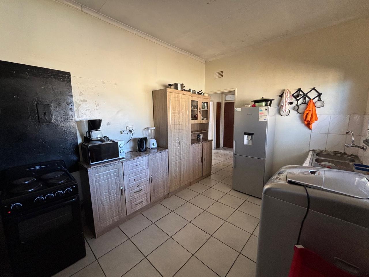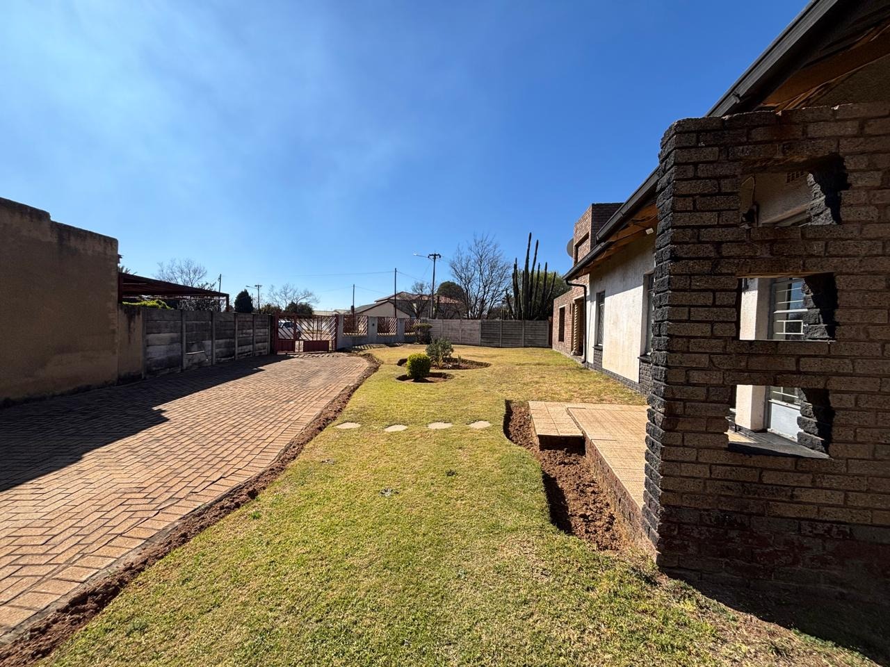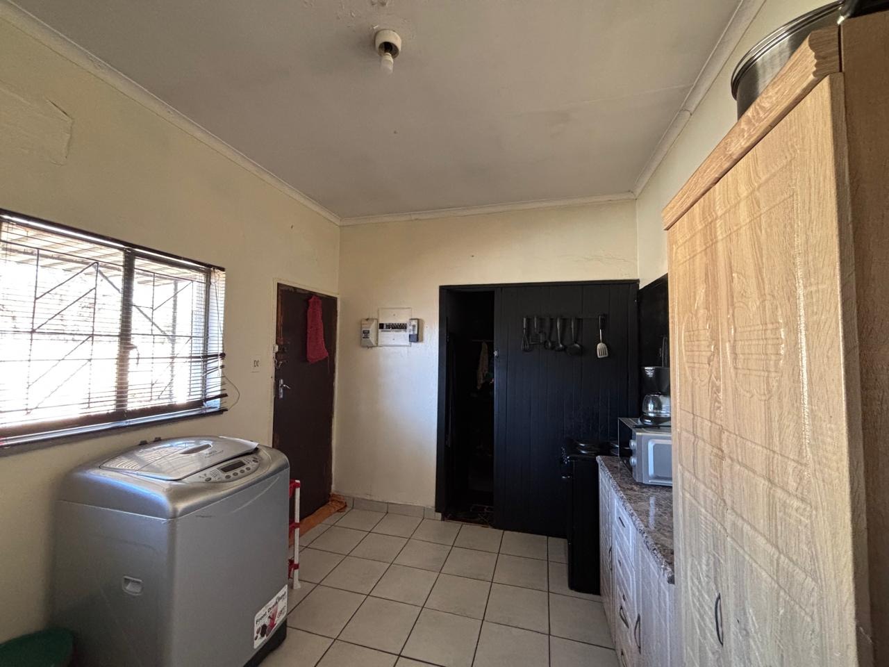 The property also features a swimming pool that requires some repairs, a single garage, and an additional room that can easily be converted into office space, storage, or staff accommodation. Its prime location directly across from the main road ensures high visibility, with ample public parking available. It’s also conveniently within walking distance of local schools, the Randfontein CBD, and the Fire Brigade Department.