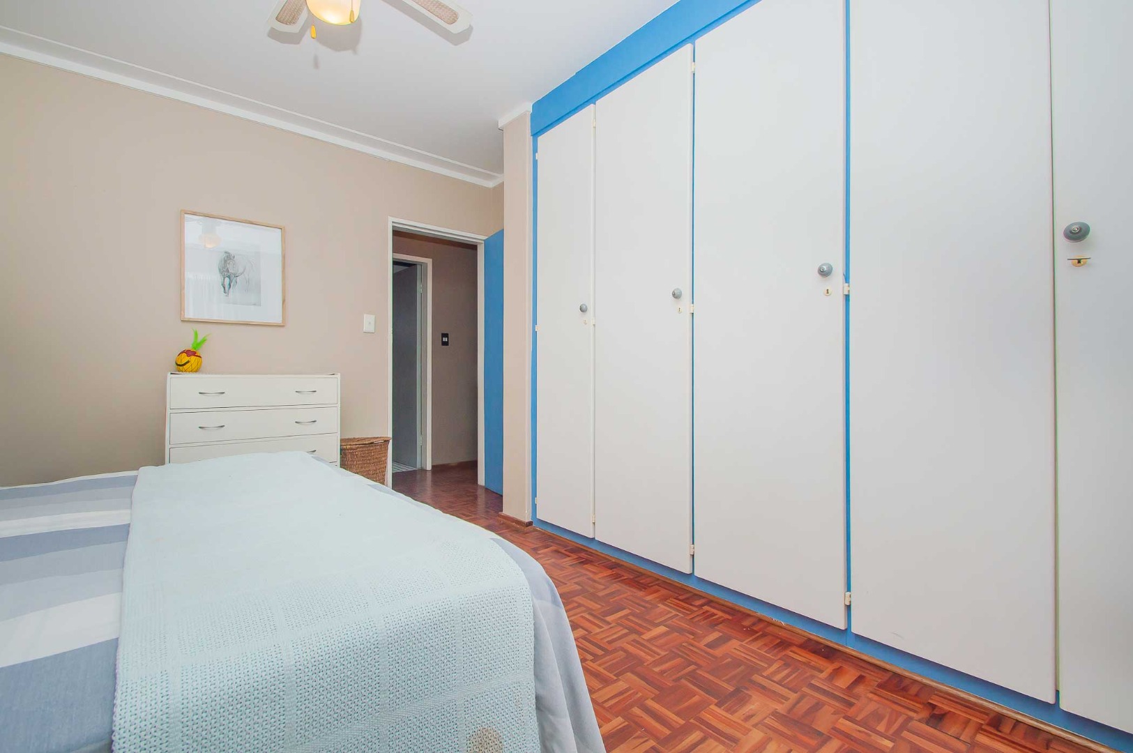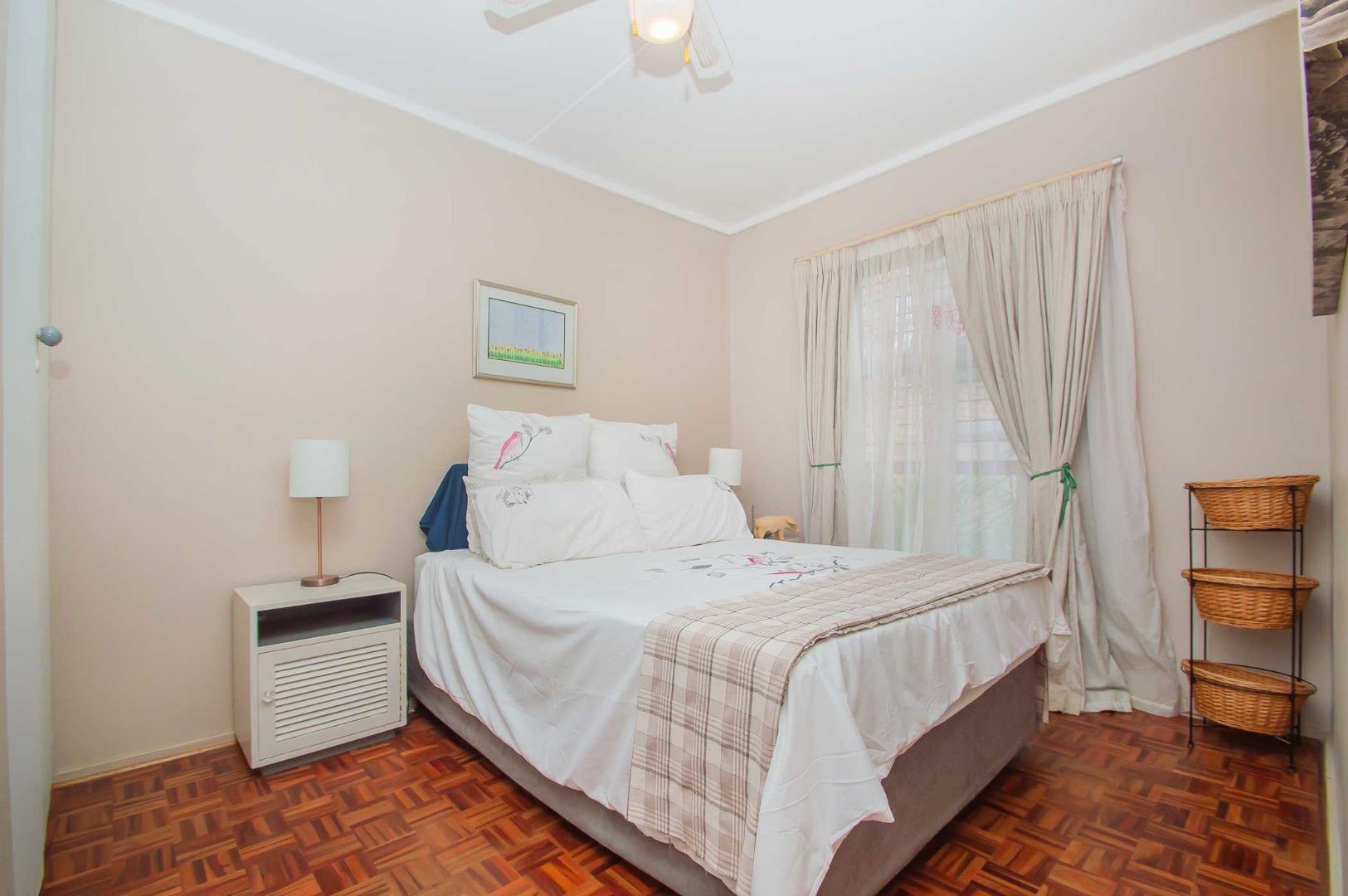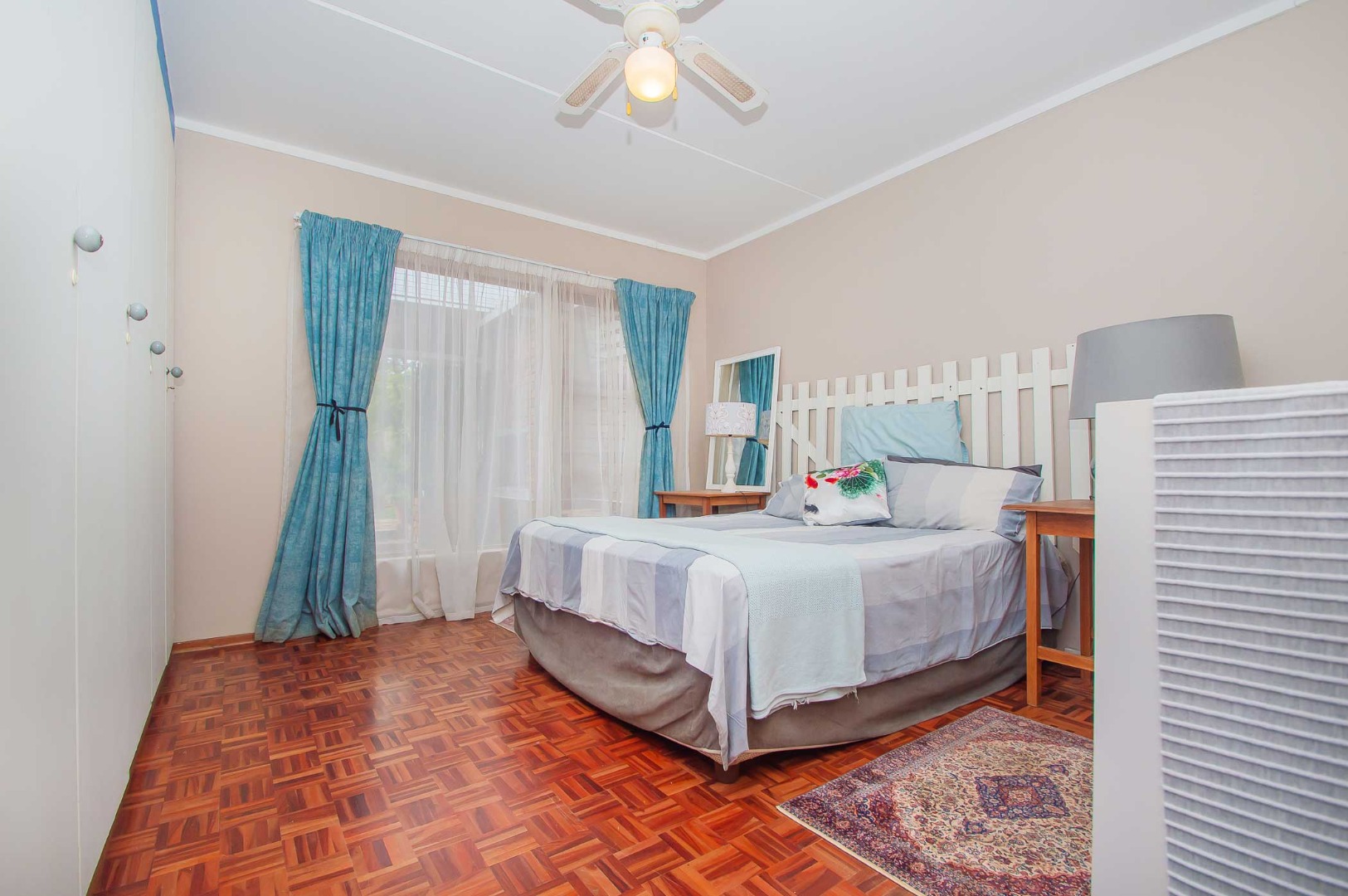 with BIC’s and overhead fans for your year-round comfort. The sizeable bathroom