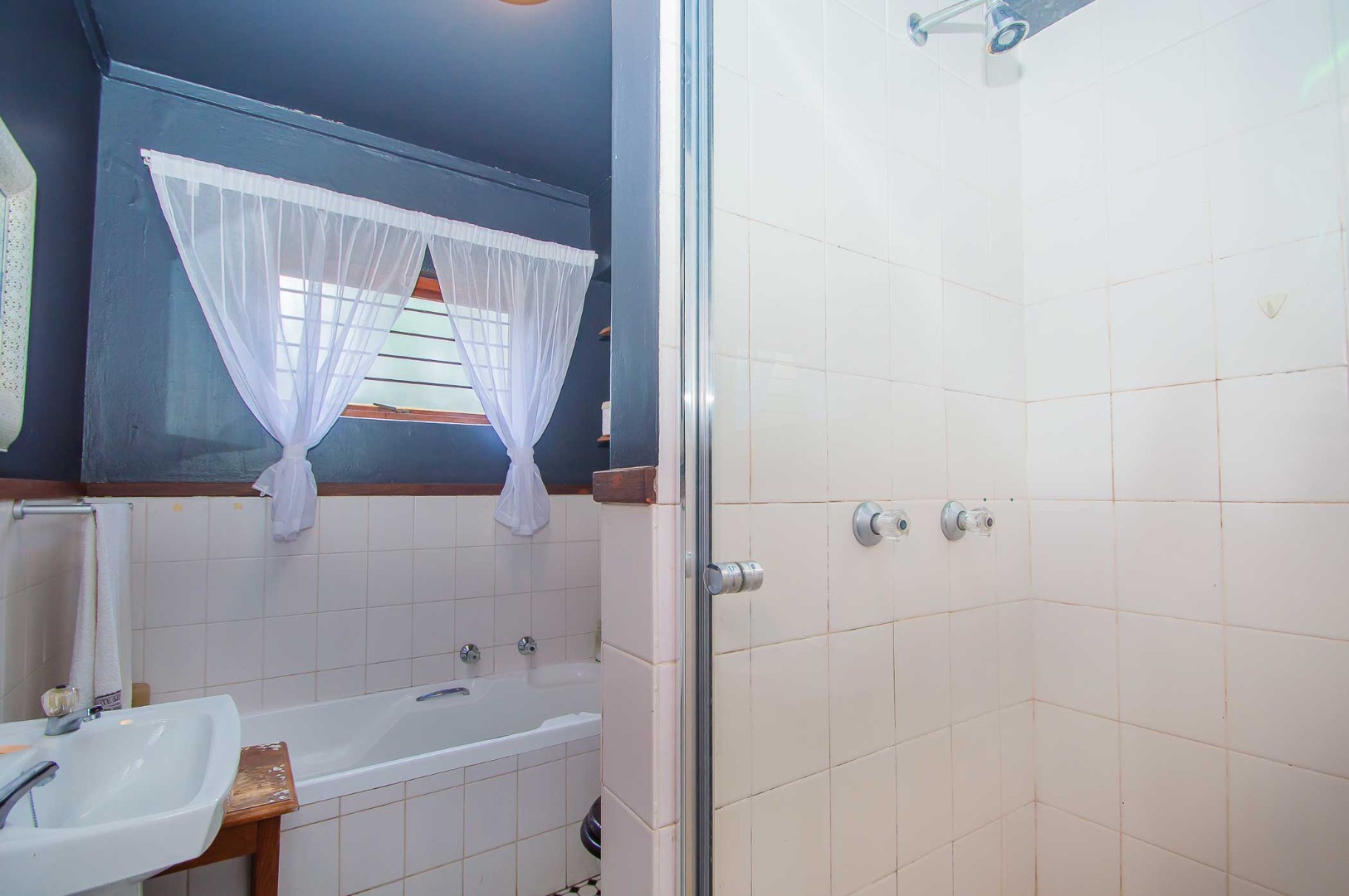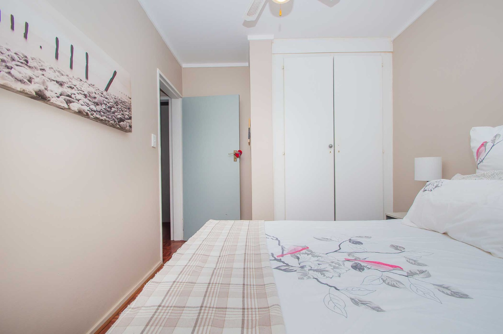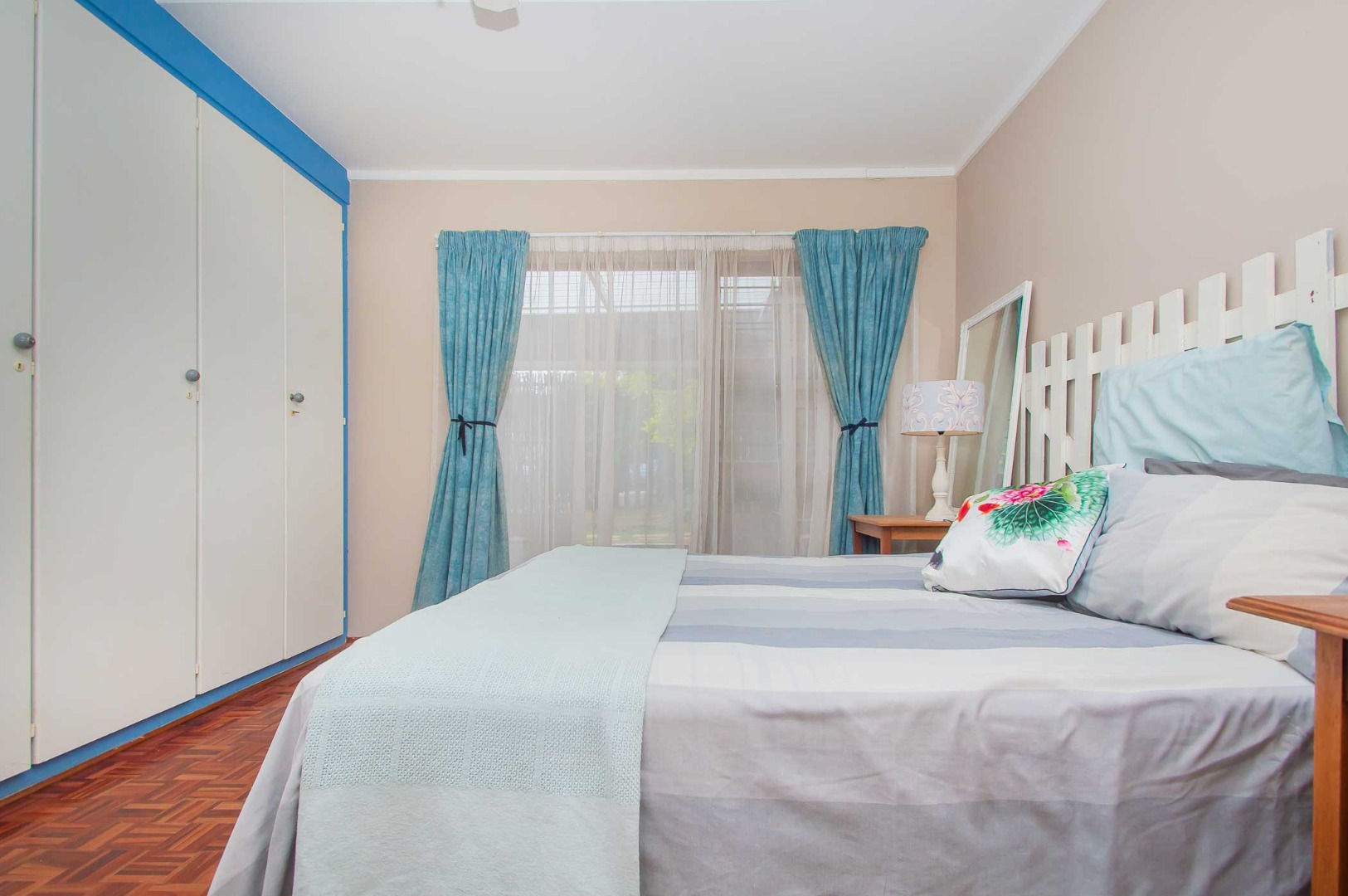 with BIC’s and overhead fans for your year-round comfort. The sizeable bathroom