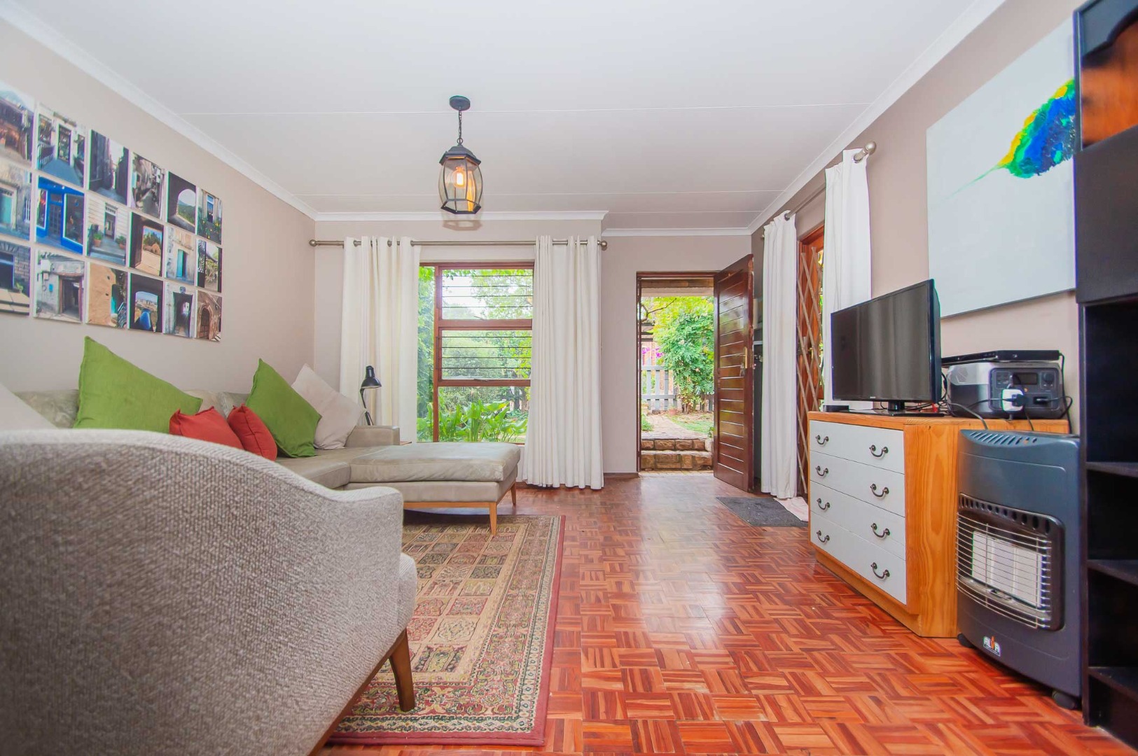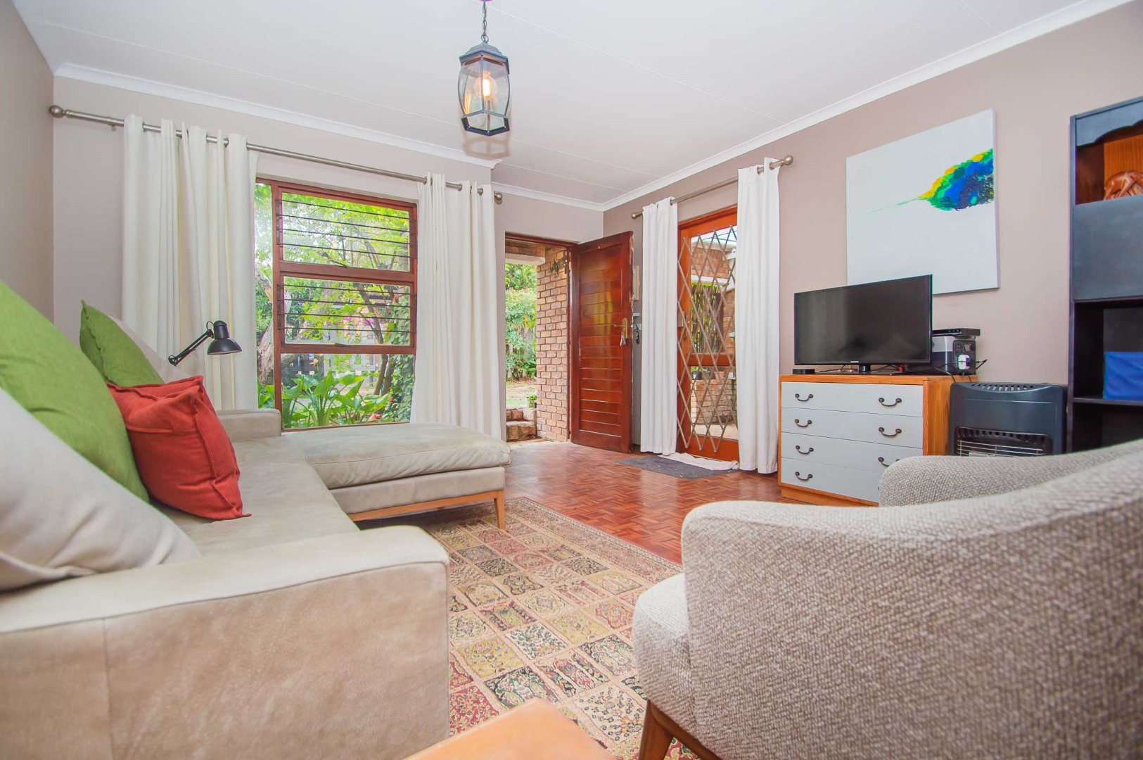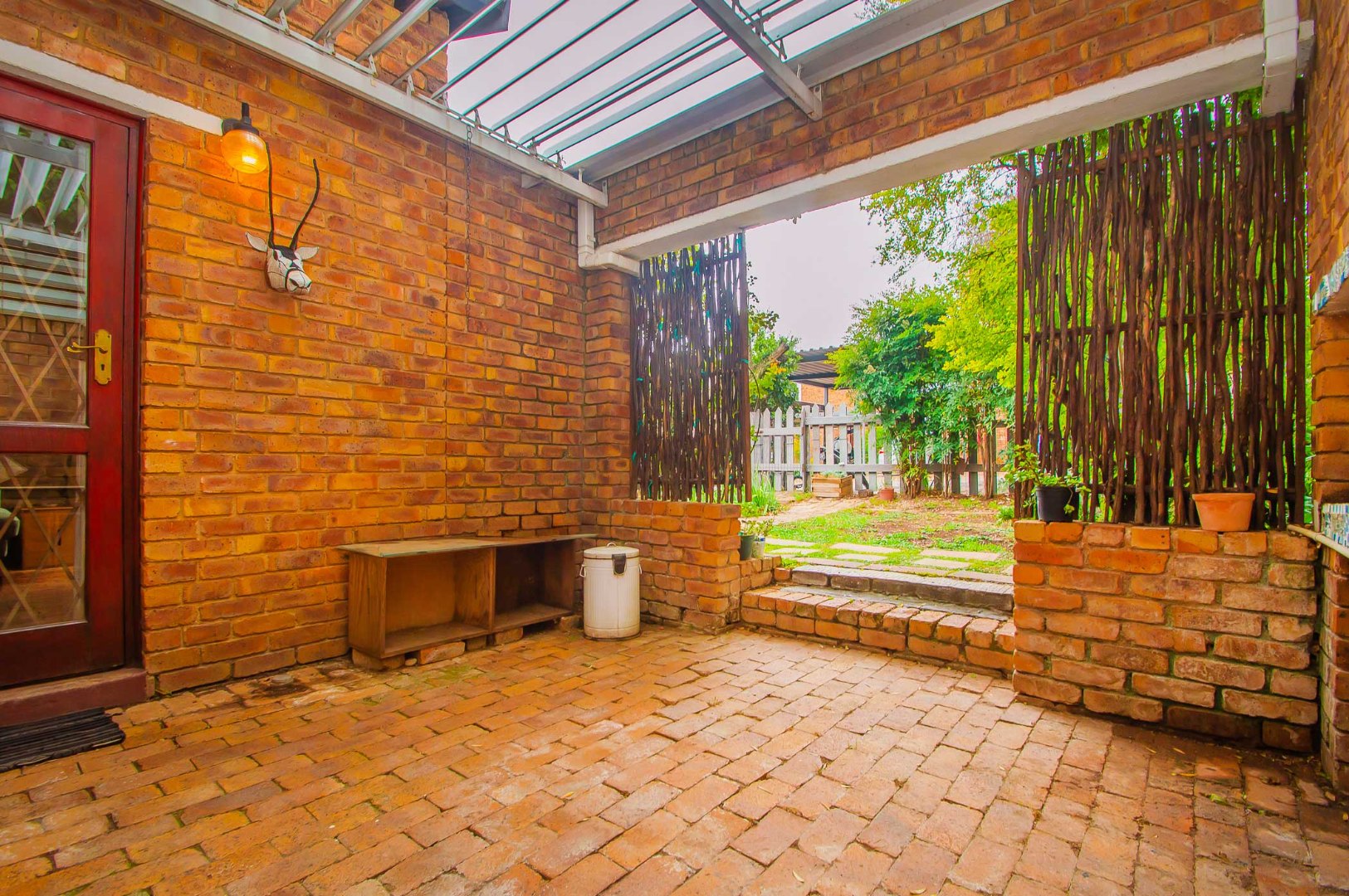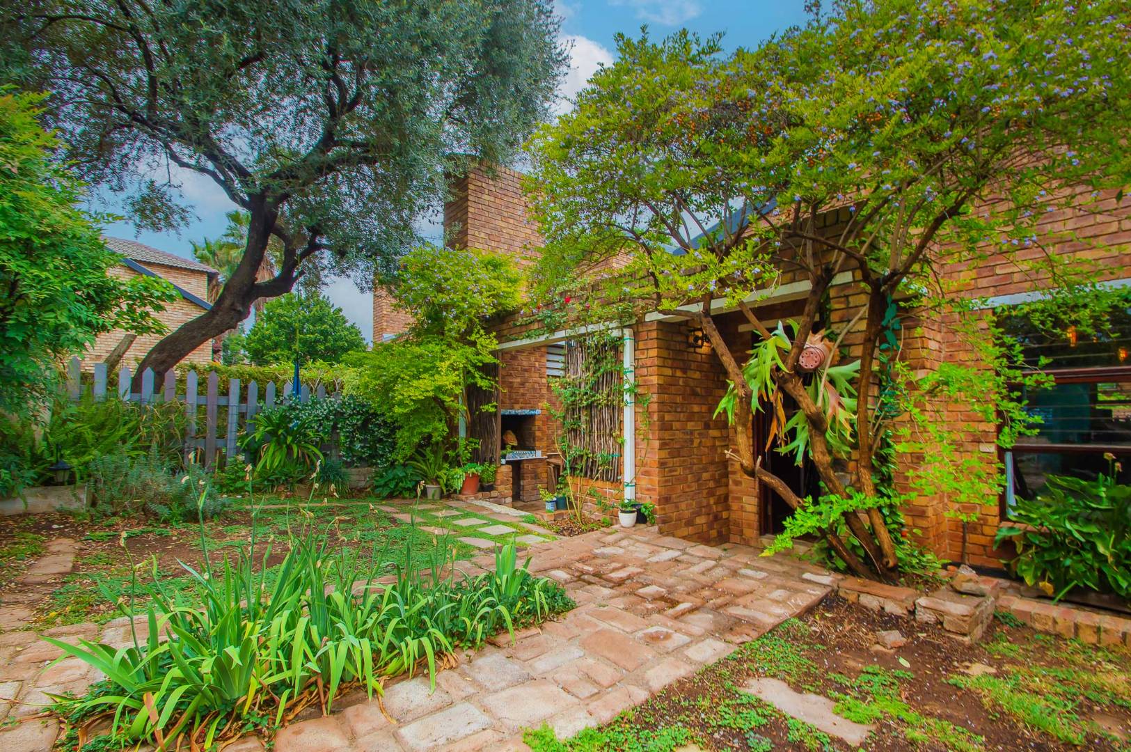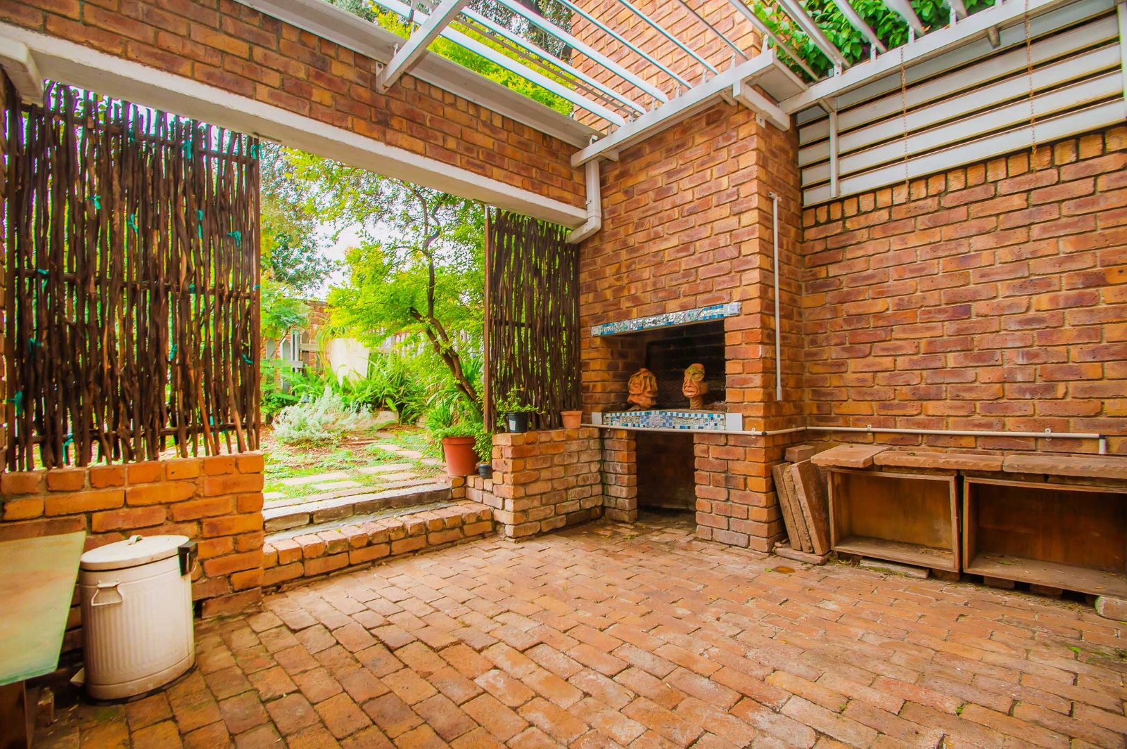 The lounge leads out to a charming entertainment area complete with a built-in braai and adjustable