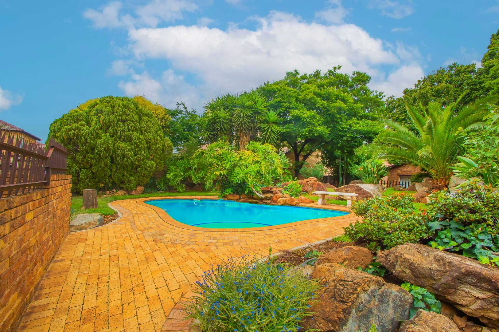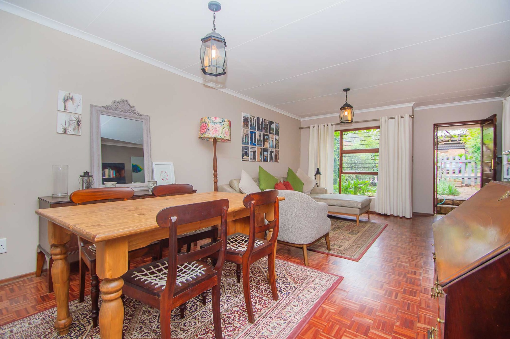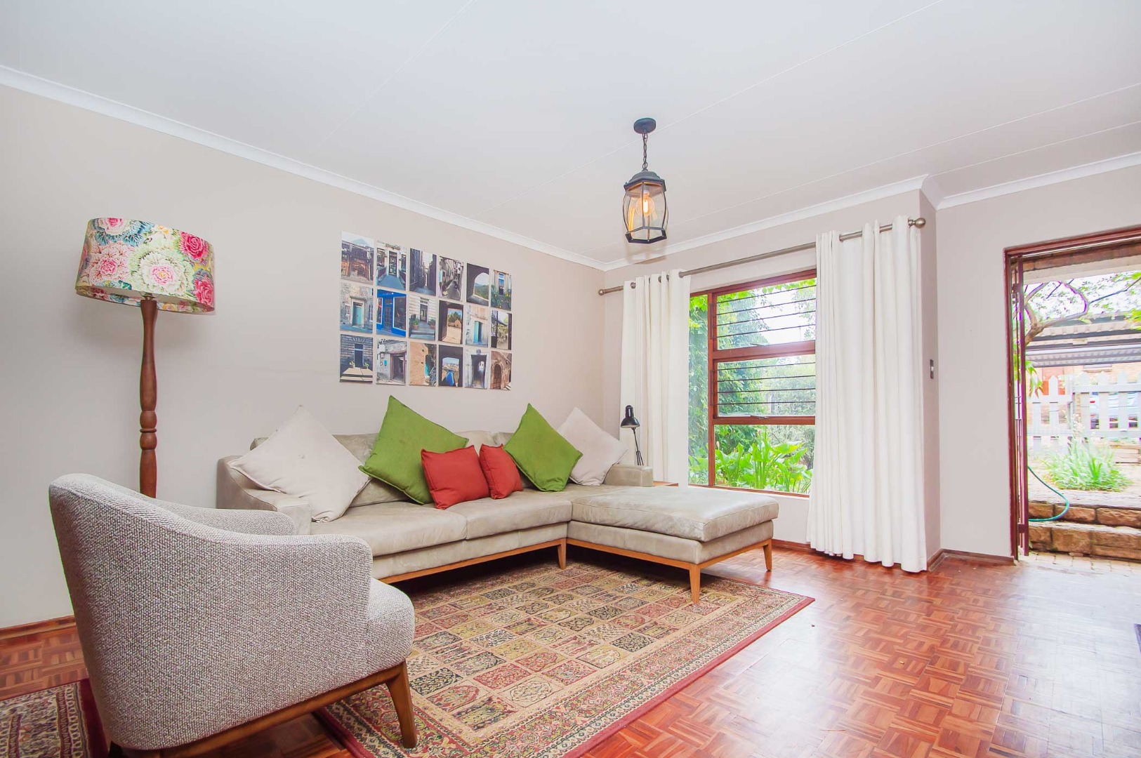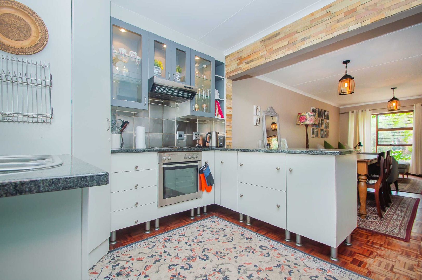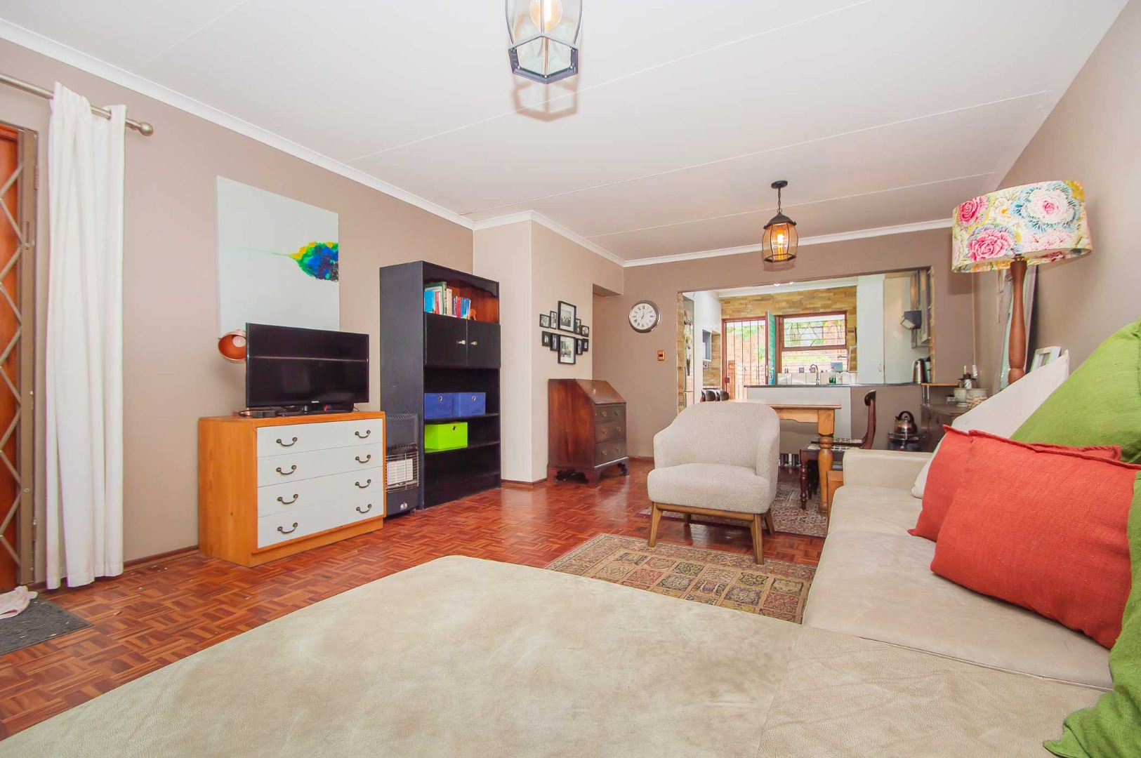 The lounge leads out to a charming entertainment area complete with a built-in braai and adjustable