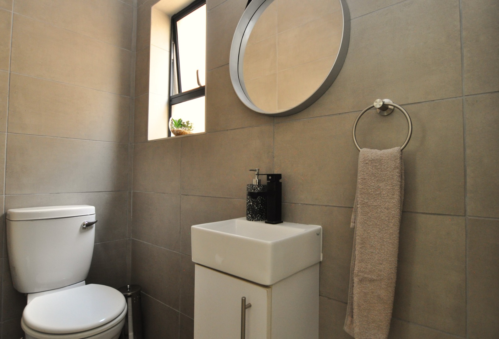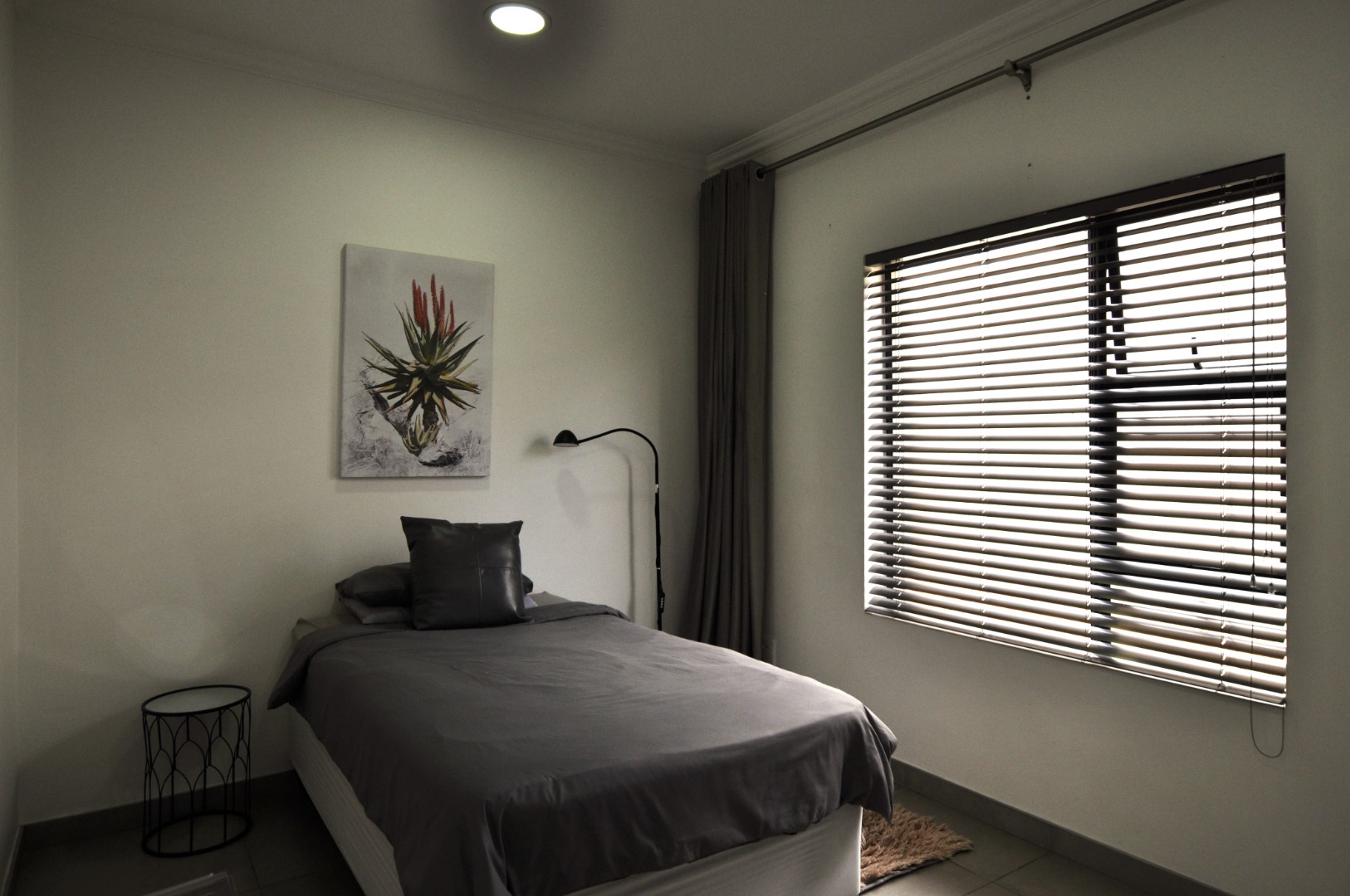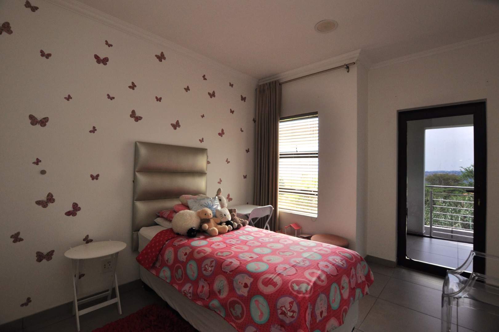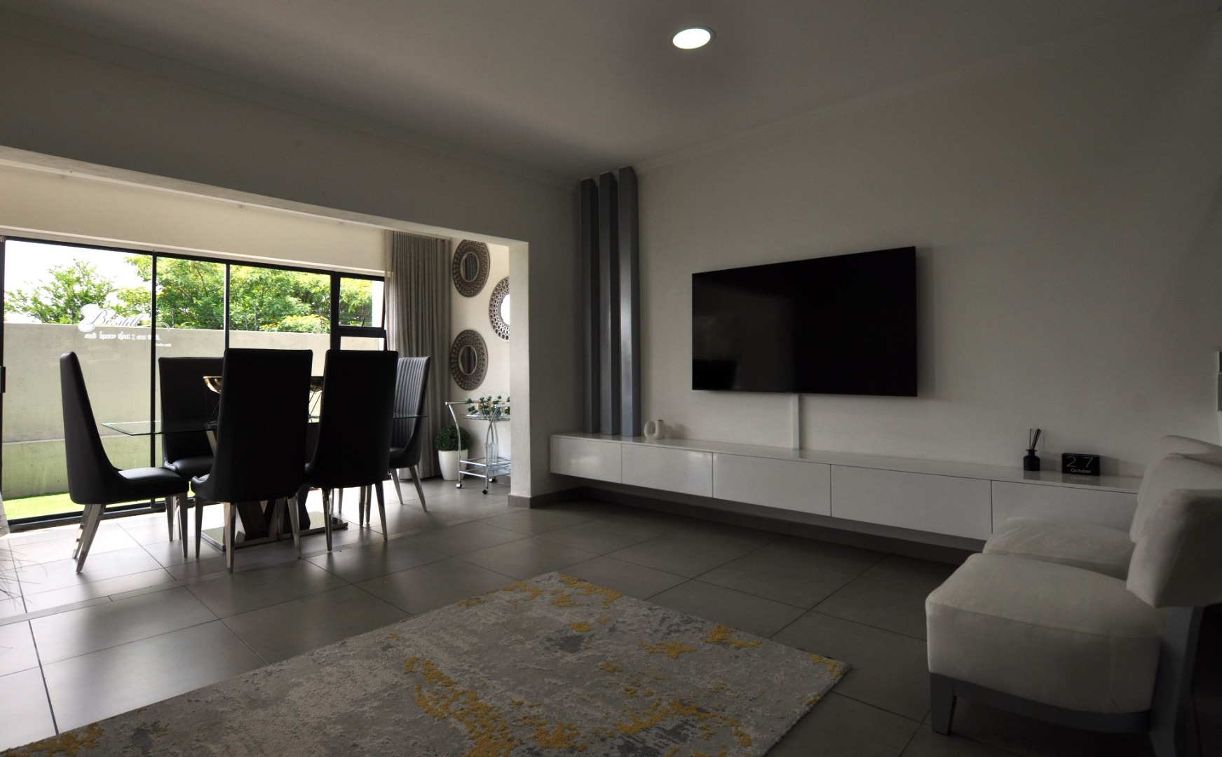Discover an exquisite contemporary residence nestled within a prestigious estate in Allen's Nek, Roodepoort, South Africa. This architectural marvel presents a striking modern facade with a sophisticated grey and white palette, immediately captivating with its integrated double garage and elegantly paved driveway. Step inside to an expansive 195 sqm of meticulously designed living space, where an open-plan layout seamlessly connects the sophisticated lounge and dining areas. Abundant natural light floods these spaces through large windows, complemented by recessed lighting, creating an inviting and luminous ambiance. The heart of this home is its state-of-the-art kitchen, a culinary haven featuring sleek light grey and white cabinetry, pristine subway tile backsplashes, and premium stainless steel appliances, including a gas range. A cleverly integrated breakfast bar beneath the stylish staircase offers a casual dining experience, while the overall design ensures both functionality and aesthetic appeal. The modern staircase, with its metallic accents and sleek railing, serves as a central design feature, leading to the private quarters above. This distinguished property boasts four generously proportioned bedrooms and two and a half luxurious bathrooms, including a convenient guest toilet. Each bedroom is a sanctuary of comfort, featuring extensive built-in cabinetry for ample storage, neutral decor, and large windows that invite serene views. The master suite, with its plush upholstered headboard and en-suite access, promises a private retreat. An integrated vanity/desk area in one of the rooms adds a touch of practical elegance. Outdoor living is elevated by a private balcony, offering picturesque views of distant hills – a perfect setting for tranquil moments. The property is part of a secure estate, providing peace of mind with 24-hour security, an access gate, security post, and electric fencing. Modern conveniences include fibre connectivity, ensuring seamless digital living. This residence epitomizes refined estate living, blending contemporary design with unparalleled security and comfort. Key Features: * Modern Architectural Design * 4 Bedrooms, 2.5 Bathrooms * Open-Plan Living & Dining * Contemporary Kitchen with Premium Appliances * Integrated Double Garage * Private Balcony with Scenic Views * Secure Estate Living with 24-Hour Security * Fibre Connectivity * 195 sqm Floor Size * Paved Driveway