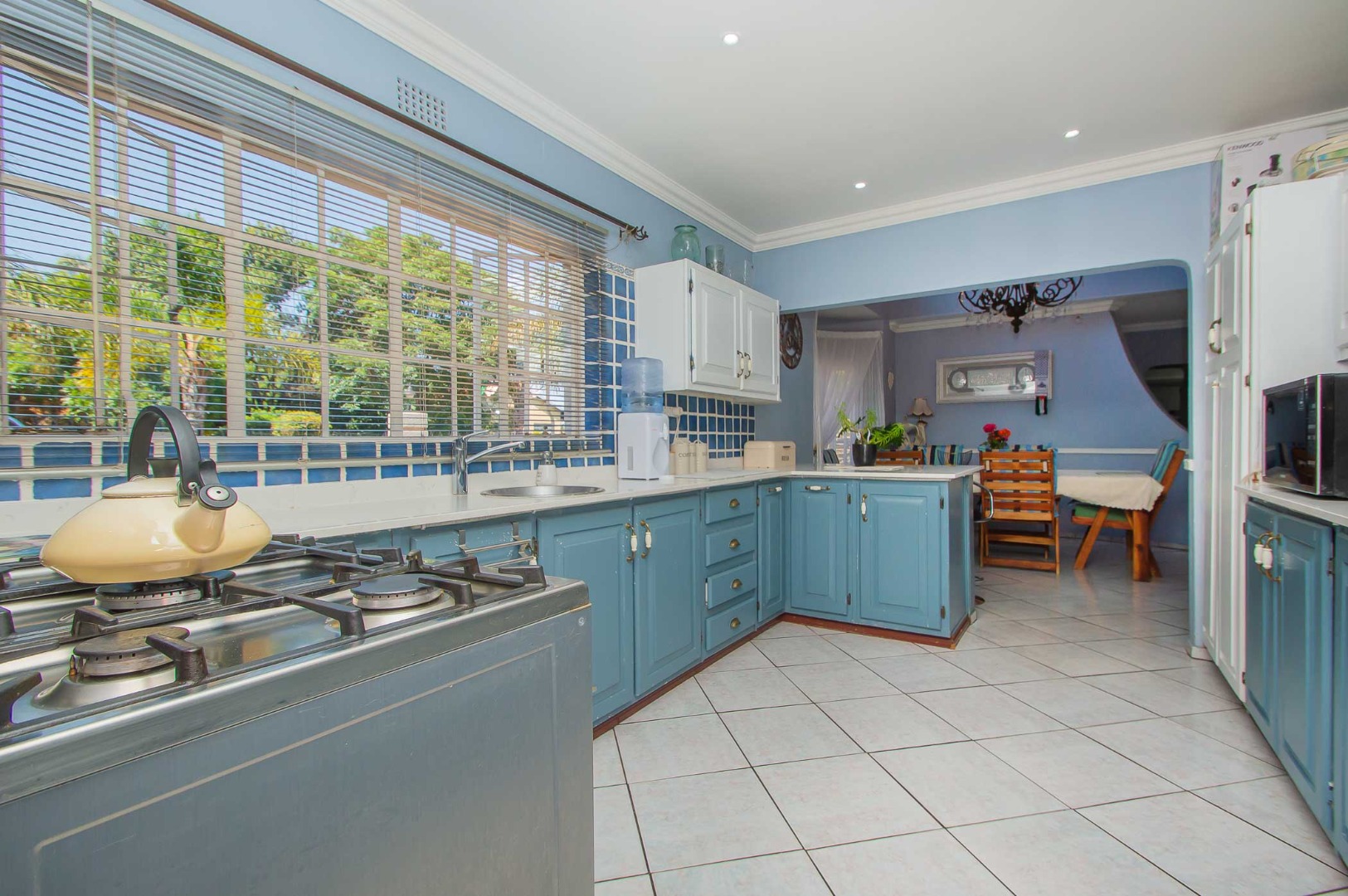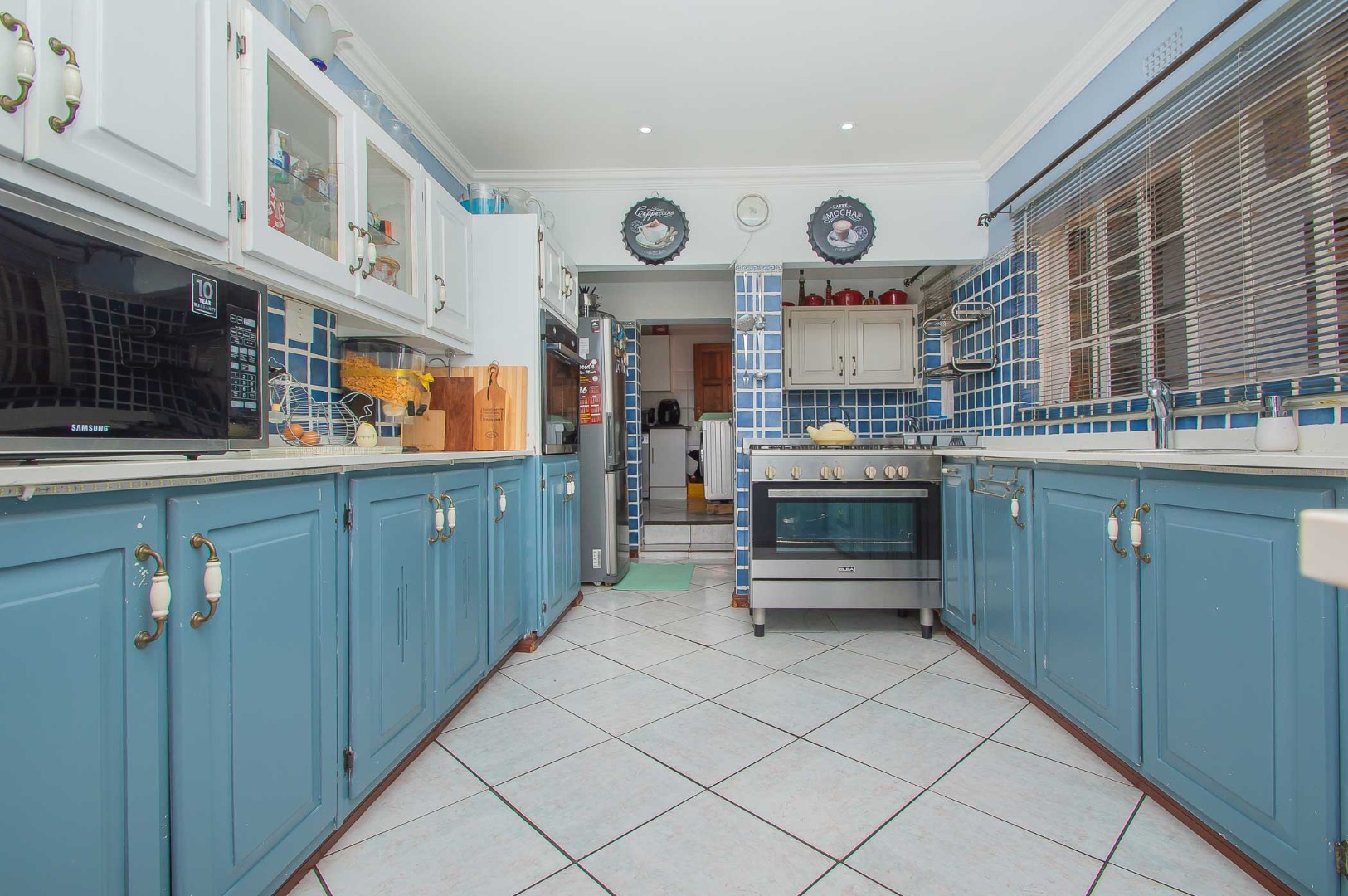 The stylish kitchen features Caesarstone countertops and is complemented by a separate scullery and laundry, ensuring practicality without compromising on design.