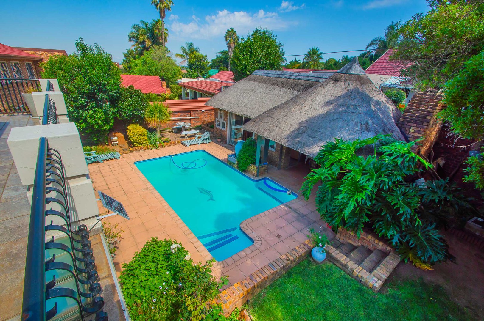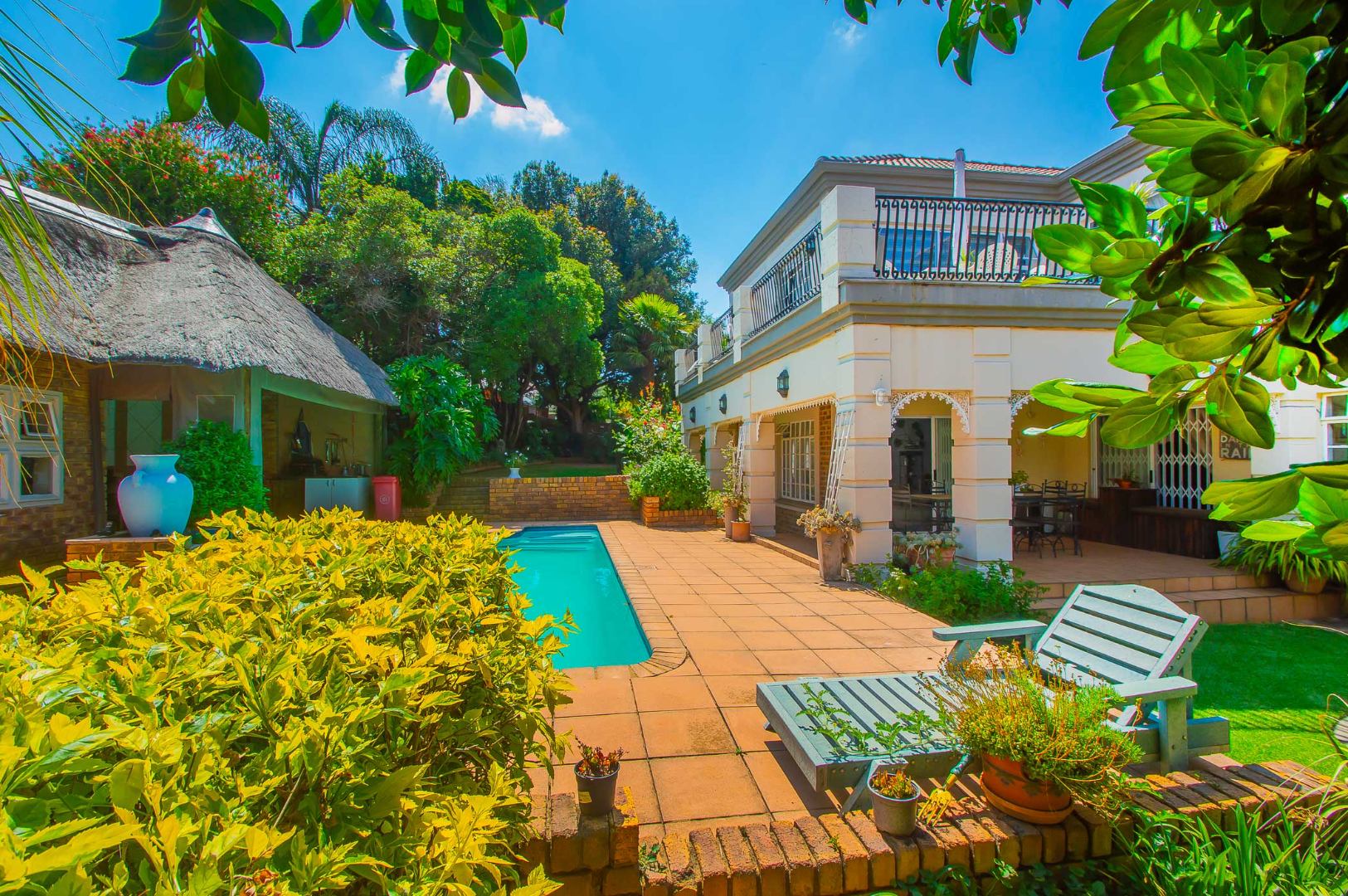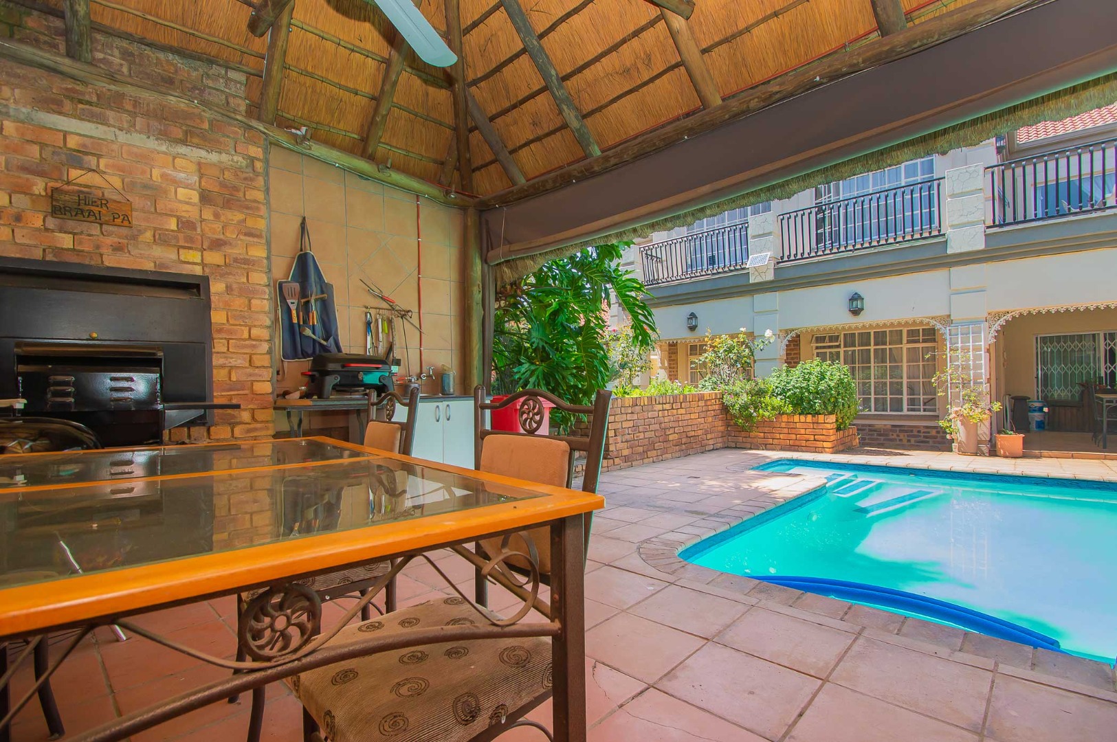 Entertain in style around the sparkling pool and expansive Lapa area with its drop-down weather