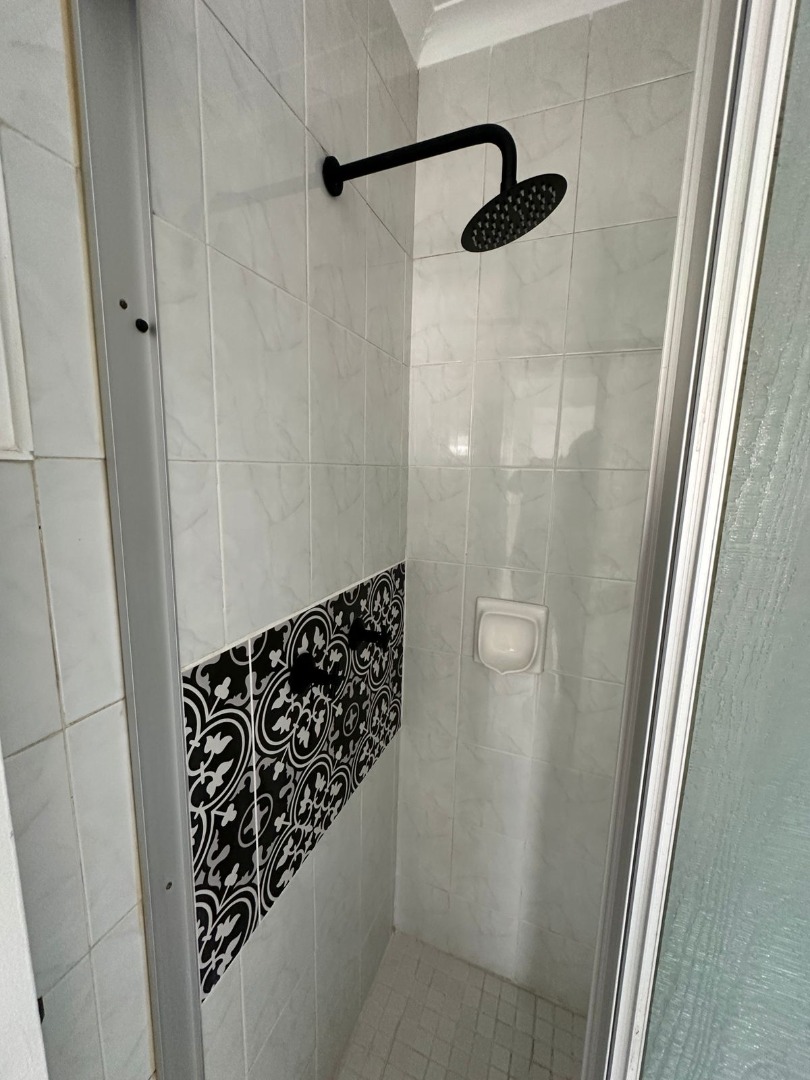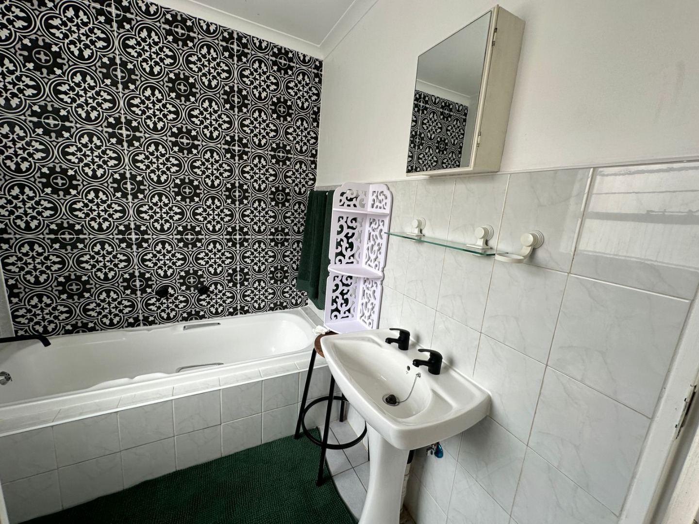 The spacious bedroom offers built-in cupboards and comfortably accommodates a double or queen-size bed. The renovated bathroom is well-appointed, featuring contemporary fittings with both a bath and shower, adding to the apartment’s convenience.