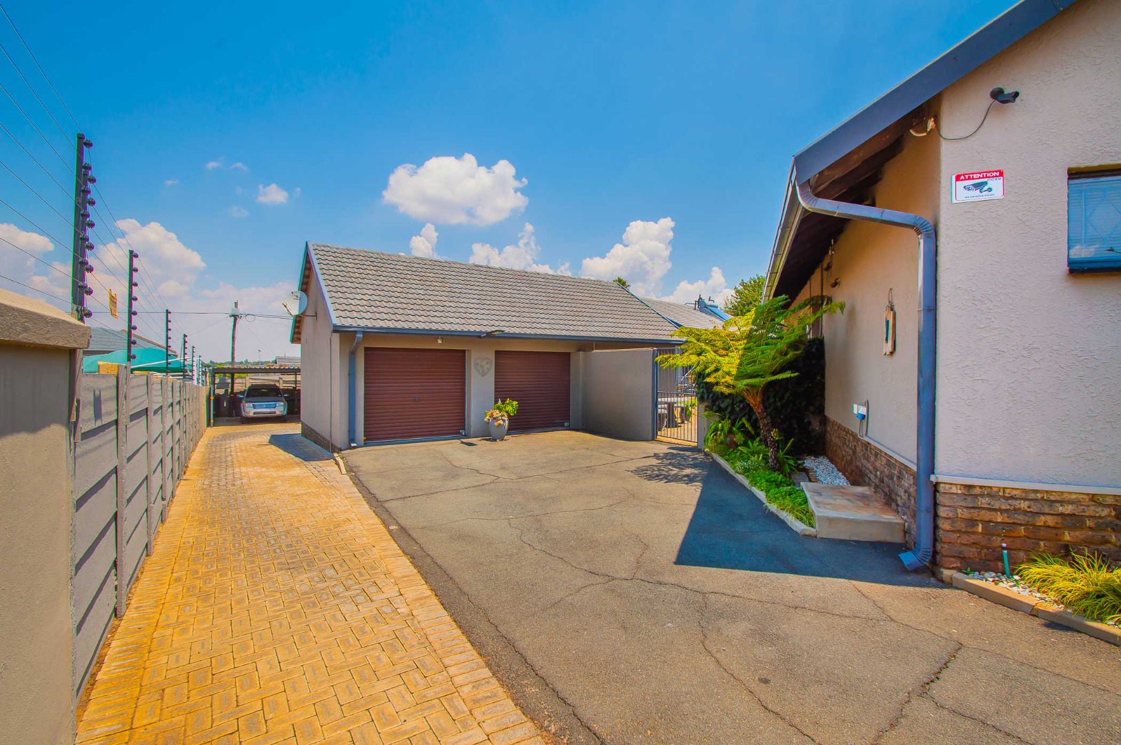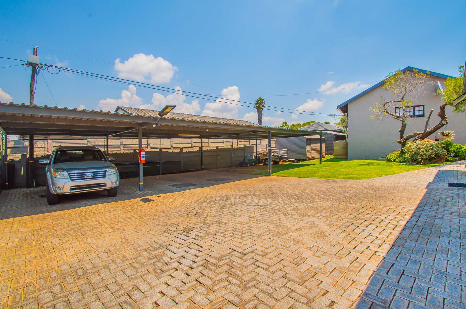 Security is well-addressed with an alarm system, electric fencing, security gates, and burglar bars, ensuring peace of mind. Parking is generous, with two garages and a paved driveway providing ample space for multiple vehicles, plus covered parking for at least 4 cars. There is a domestic toilet, and a Wendy house for storage.