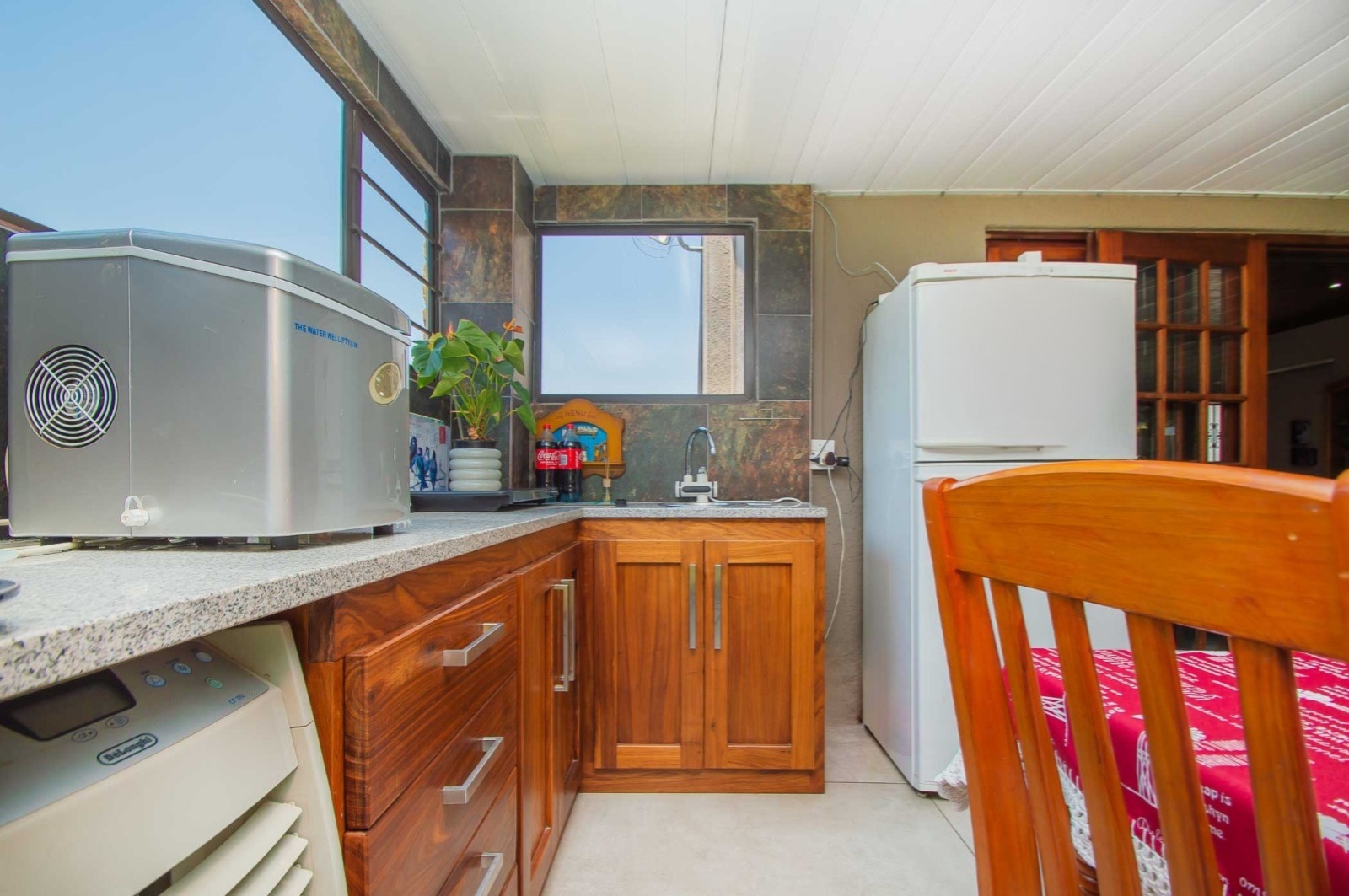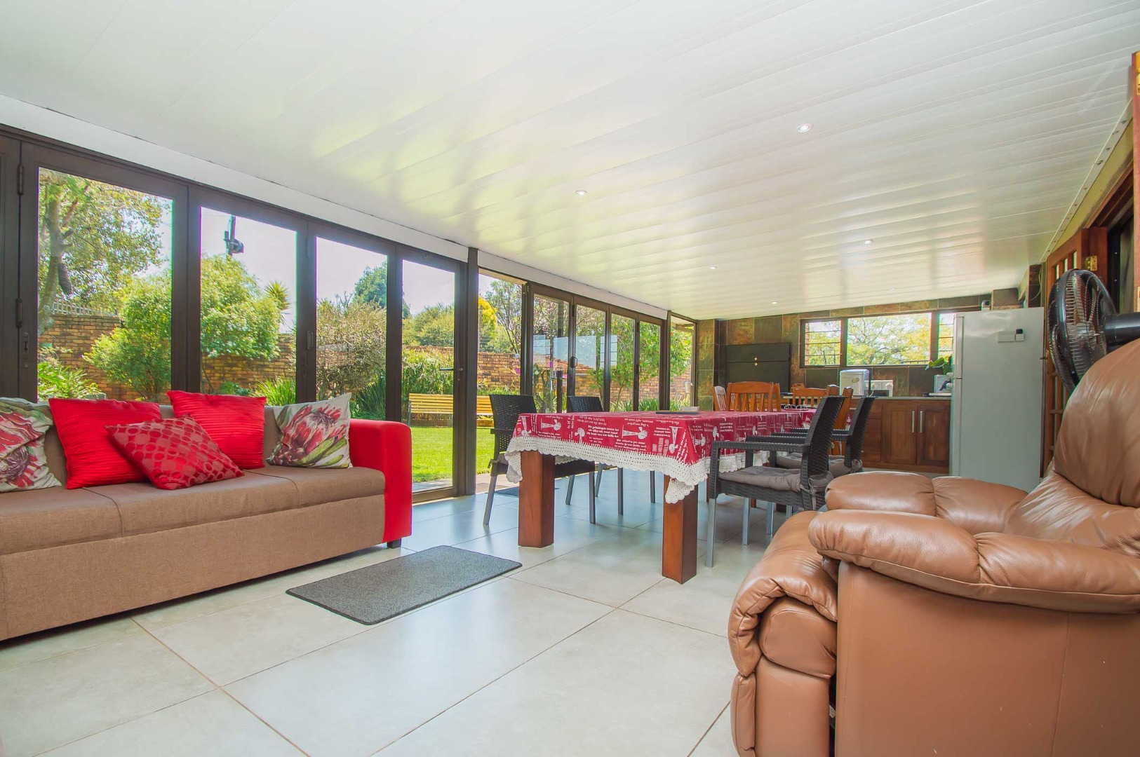 The expansive 1485 sqm erf features a meticulously maintained garden with mature trees and lush landscaping, perfect for outdoor enjoyment. A delightful aluminium enclosed patio, complete with a built-in braai, extends the living space outdoors, ideal for entertaining. The property also benefits from not 1, but 2 FLATS (each with their own private entrances)!