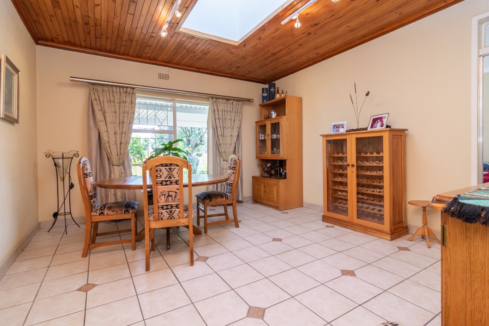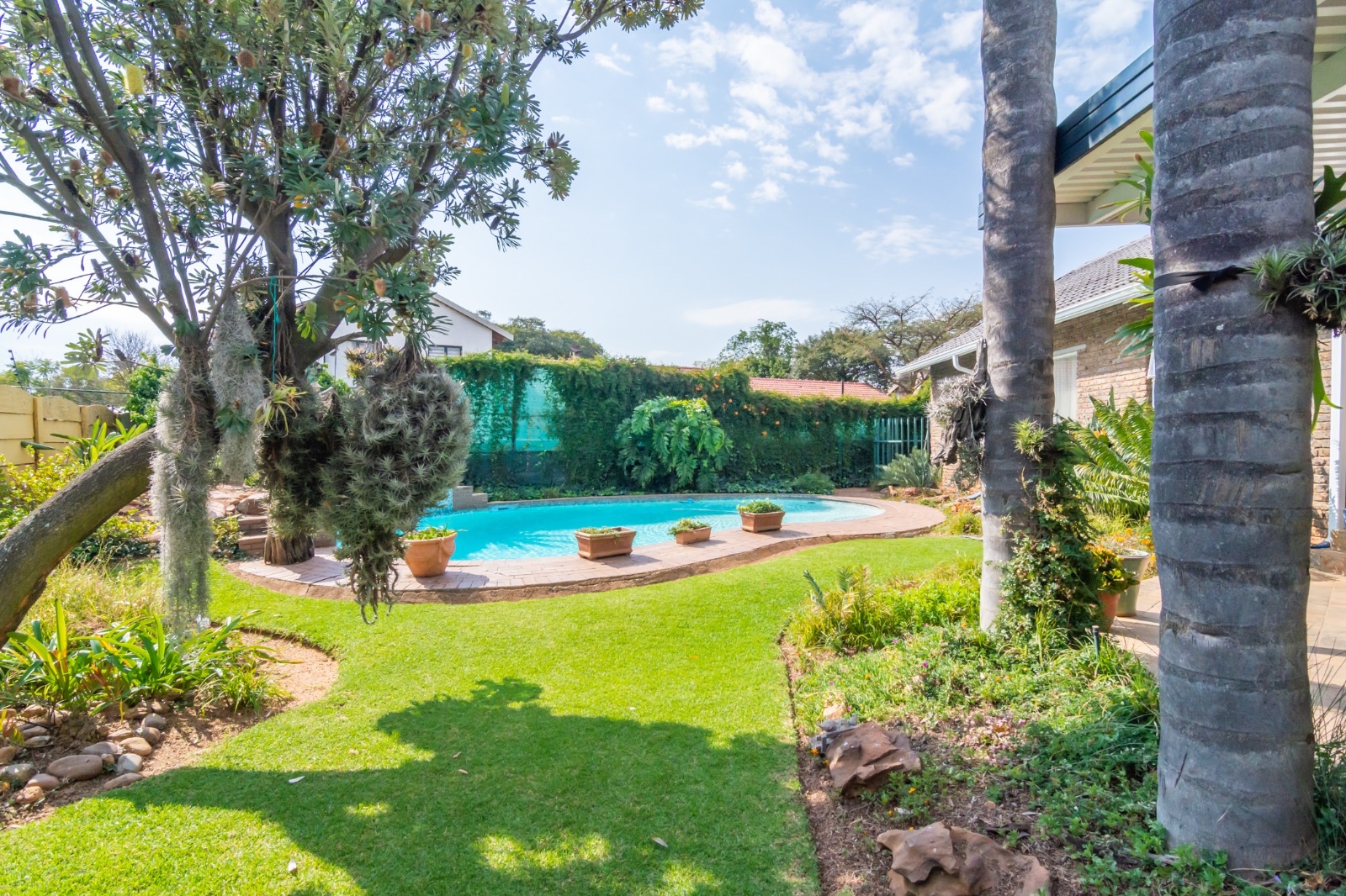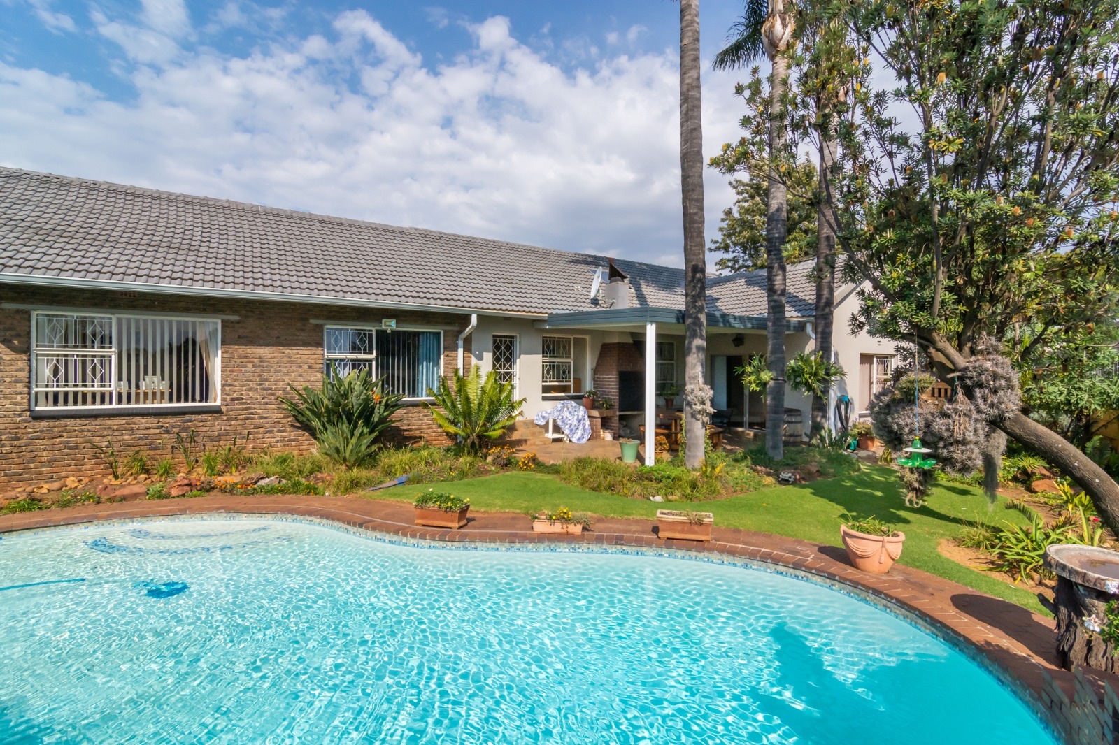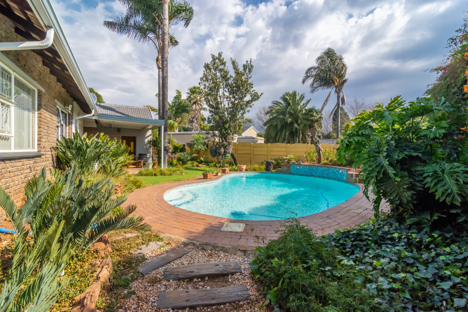 The landscaped garden wrapping around the property with a plant nursery, various cycads, palm trees, stone settings, will inspire every garden lover to add ideas. The covered, tiled patio area features a built-in-braai which overlooks the sparkling swimming pool in the back garden where you can easily entertain family and friends.