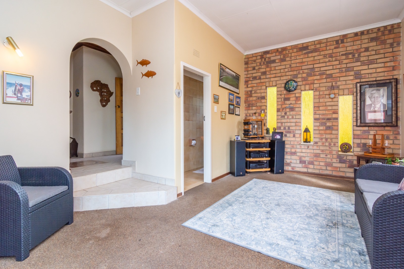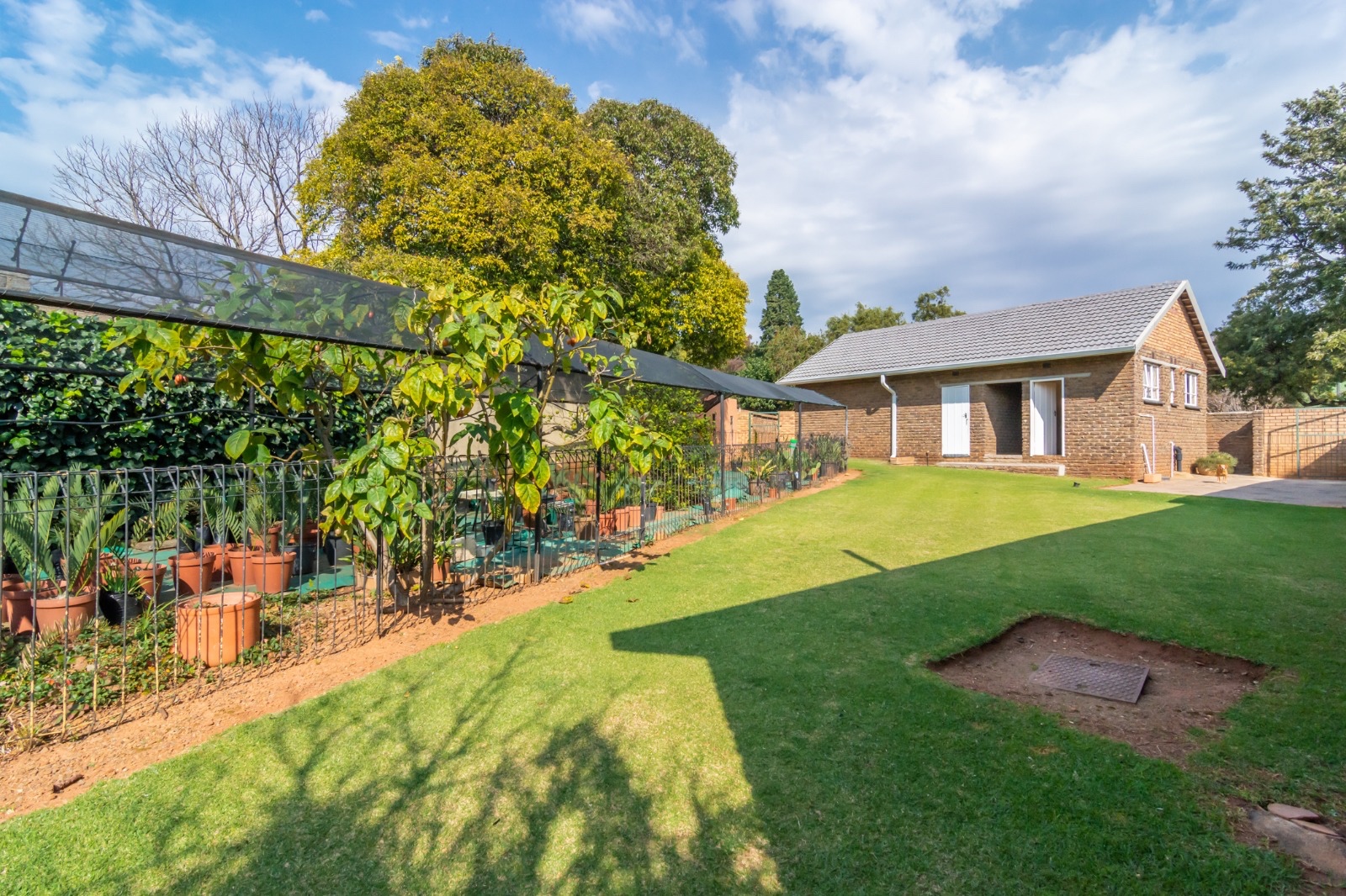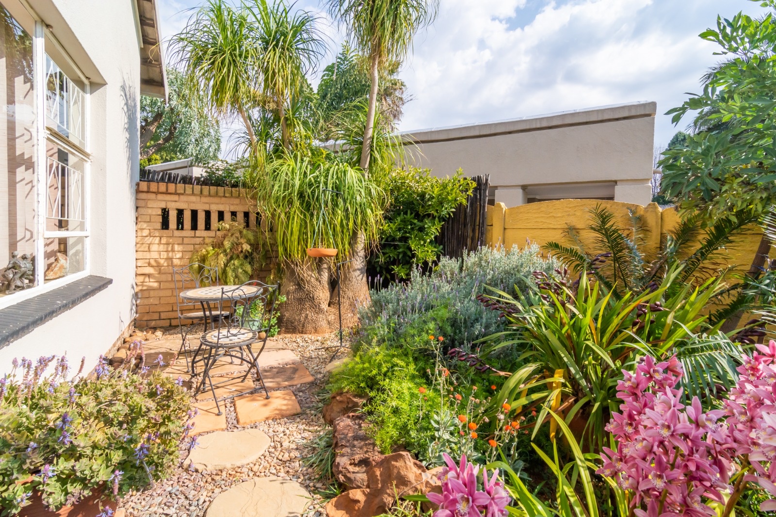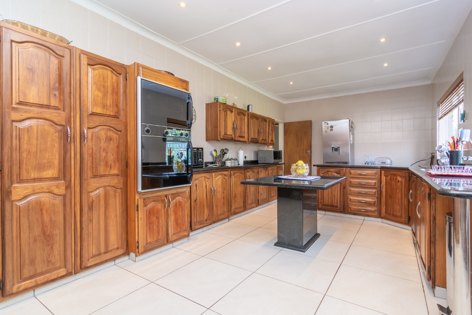 The landscaped garden wrapping around the property with a plant nursery, various cycads, palm trees, stone settings, will inspire every garden lover to add ideas. The covered, tiled patio area features a built-in-braai which overlooks the sparkling swimming pool in the back garden where you can easily entertain family and friends.