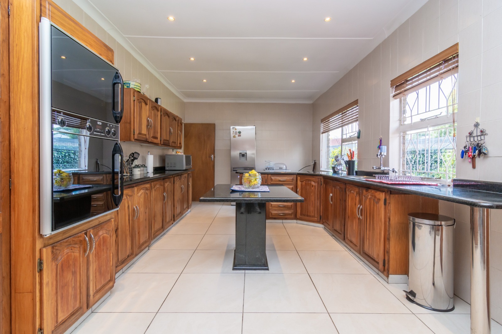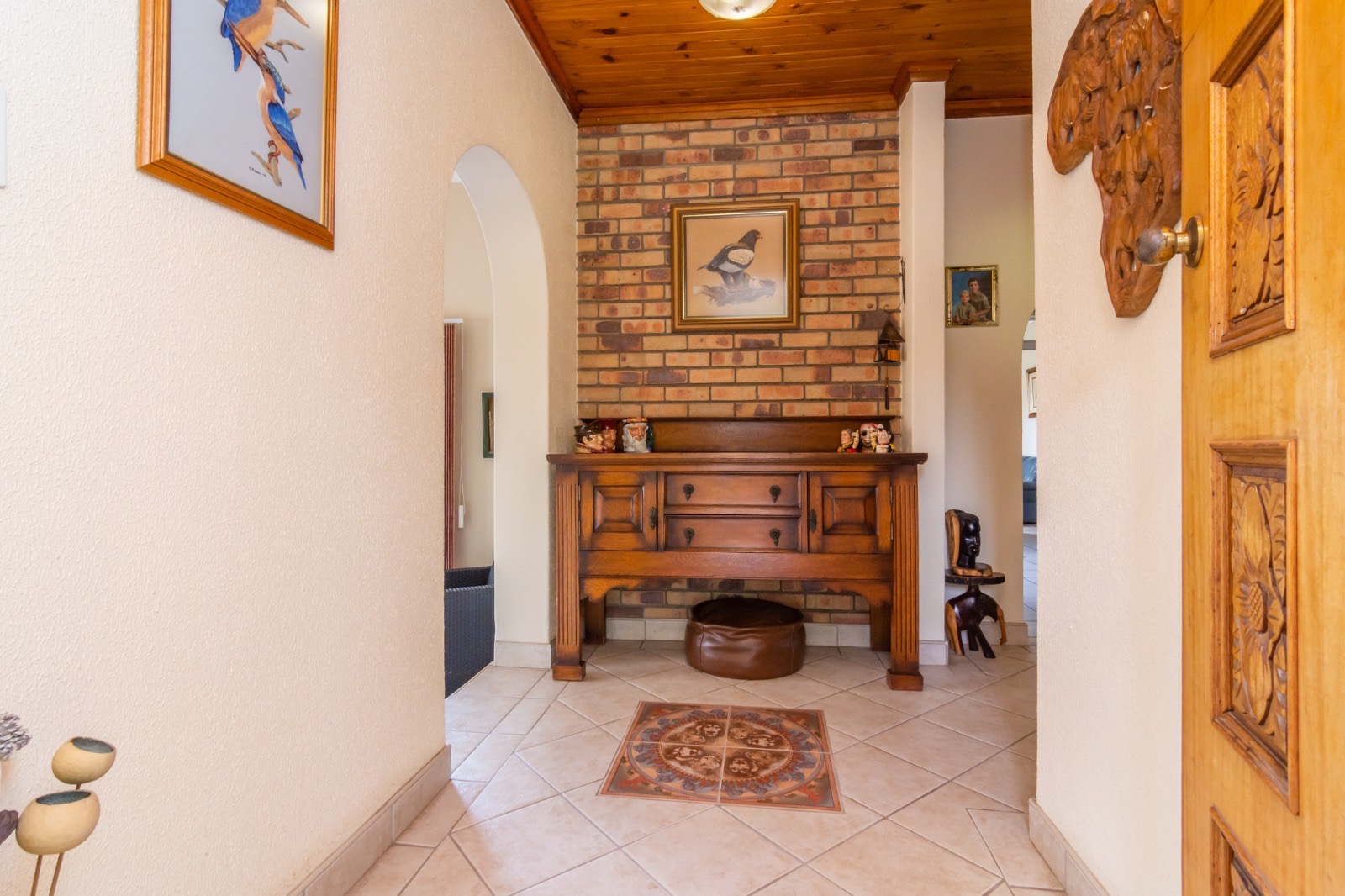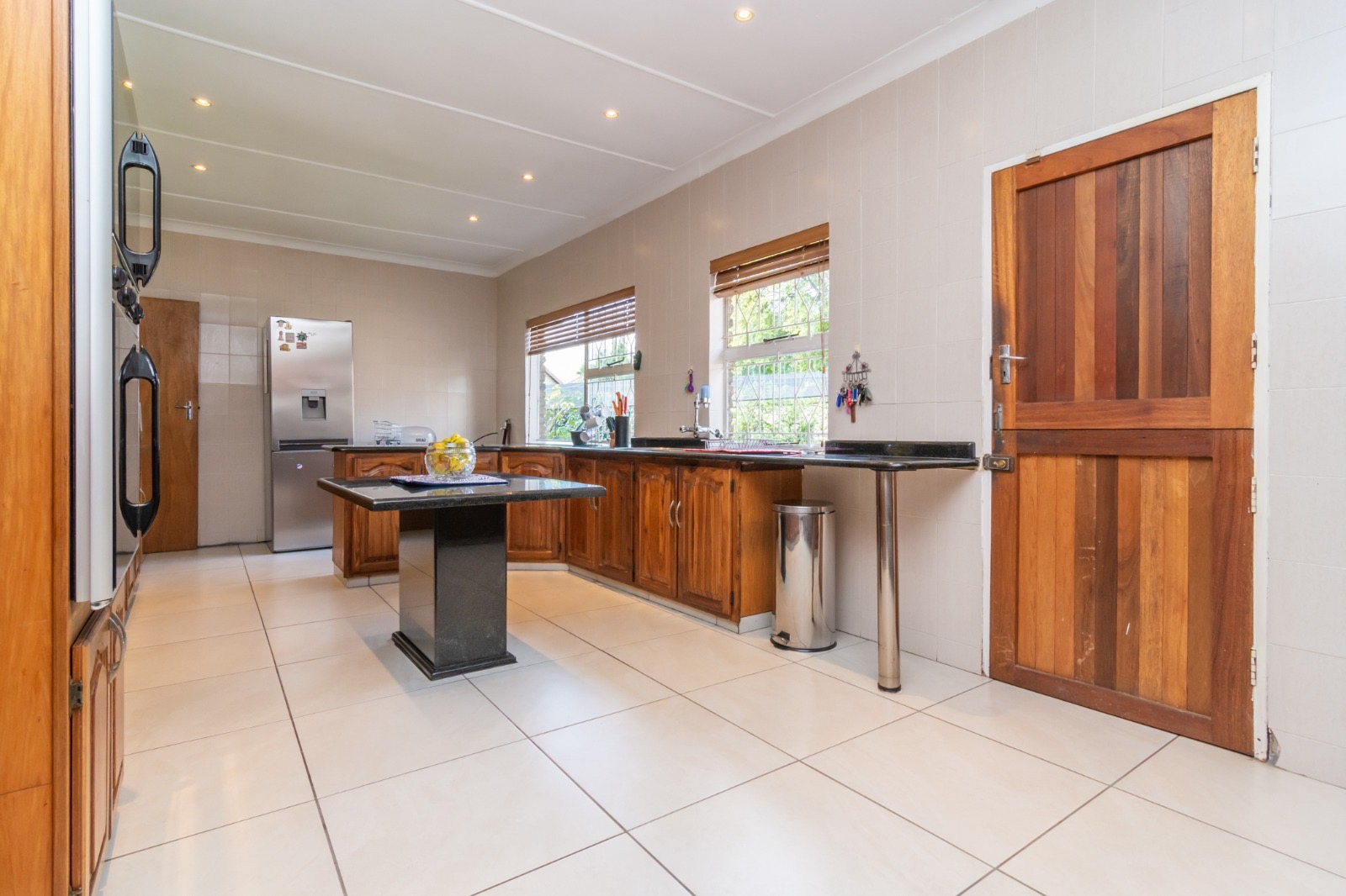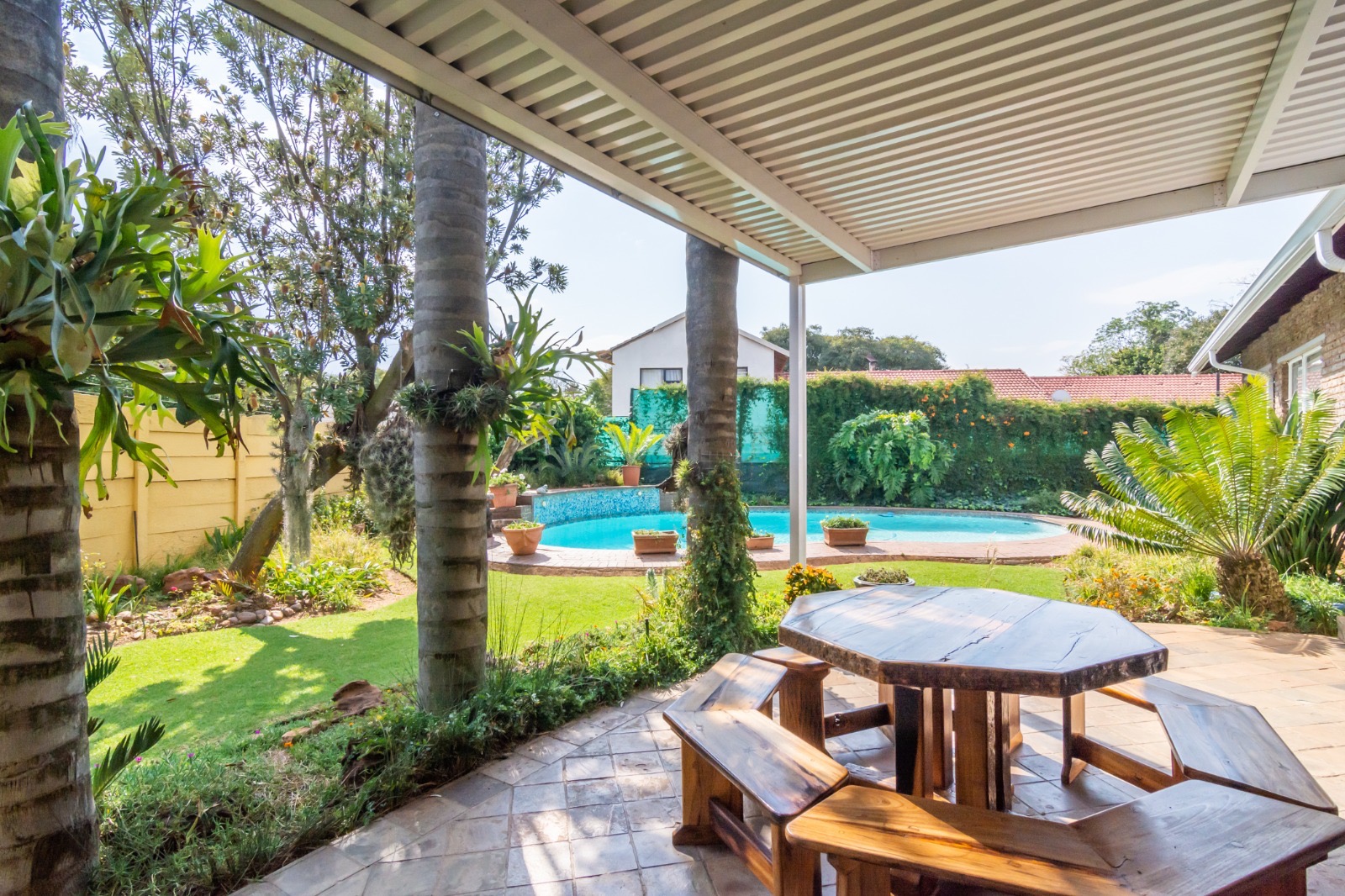 The landscaped garden wrapping around the property with a plant nursery, various cycads, palm trees, stone settings, will inspire every garden lover to add ideas. The covered, tiled patio area features a built-in-braai which overlooks the sparkling swimming pool in the back garden where you can easily entertain family and friends.