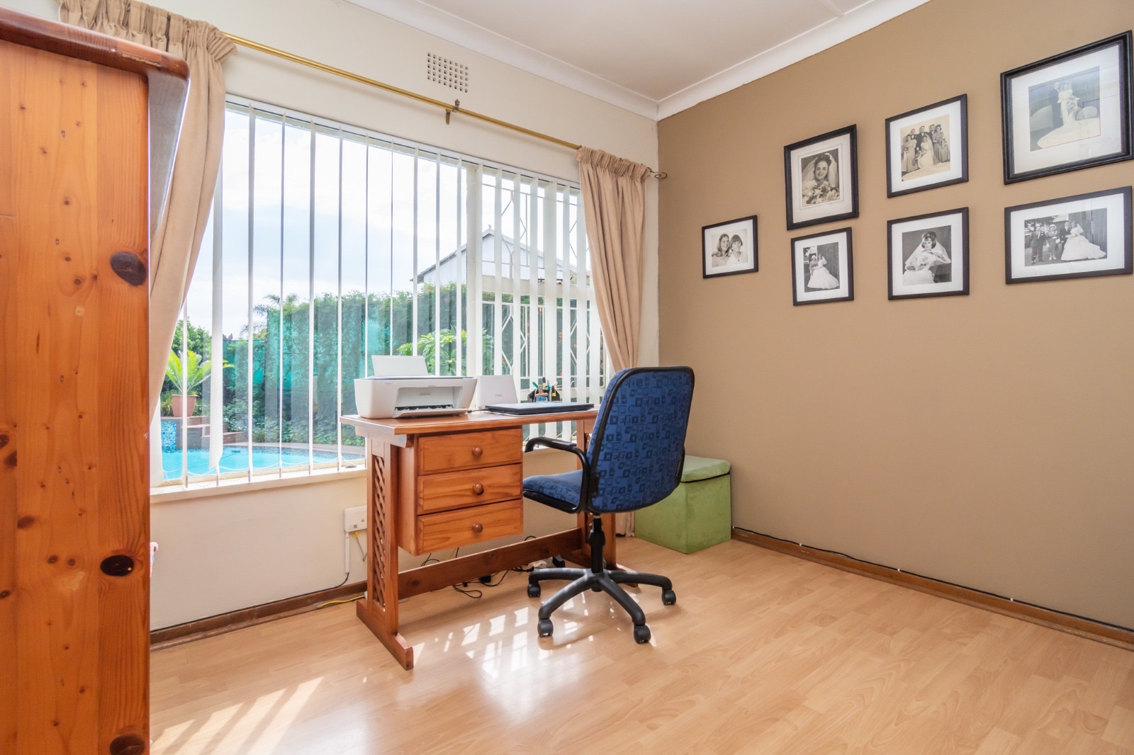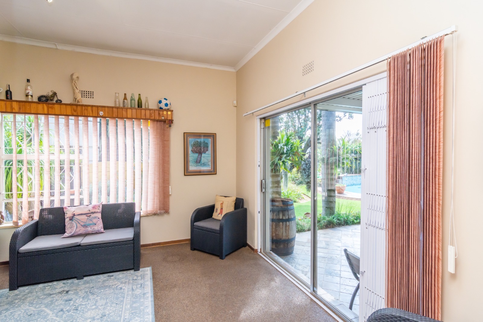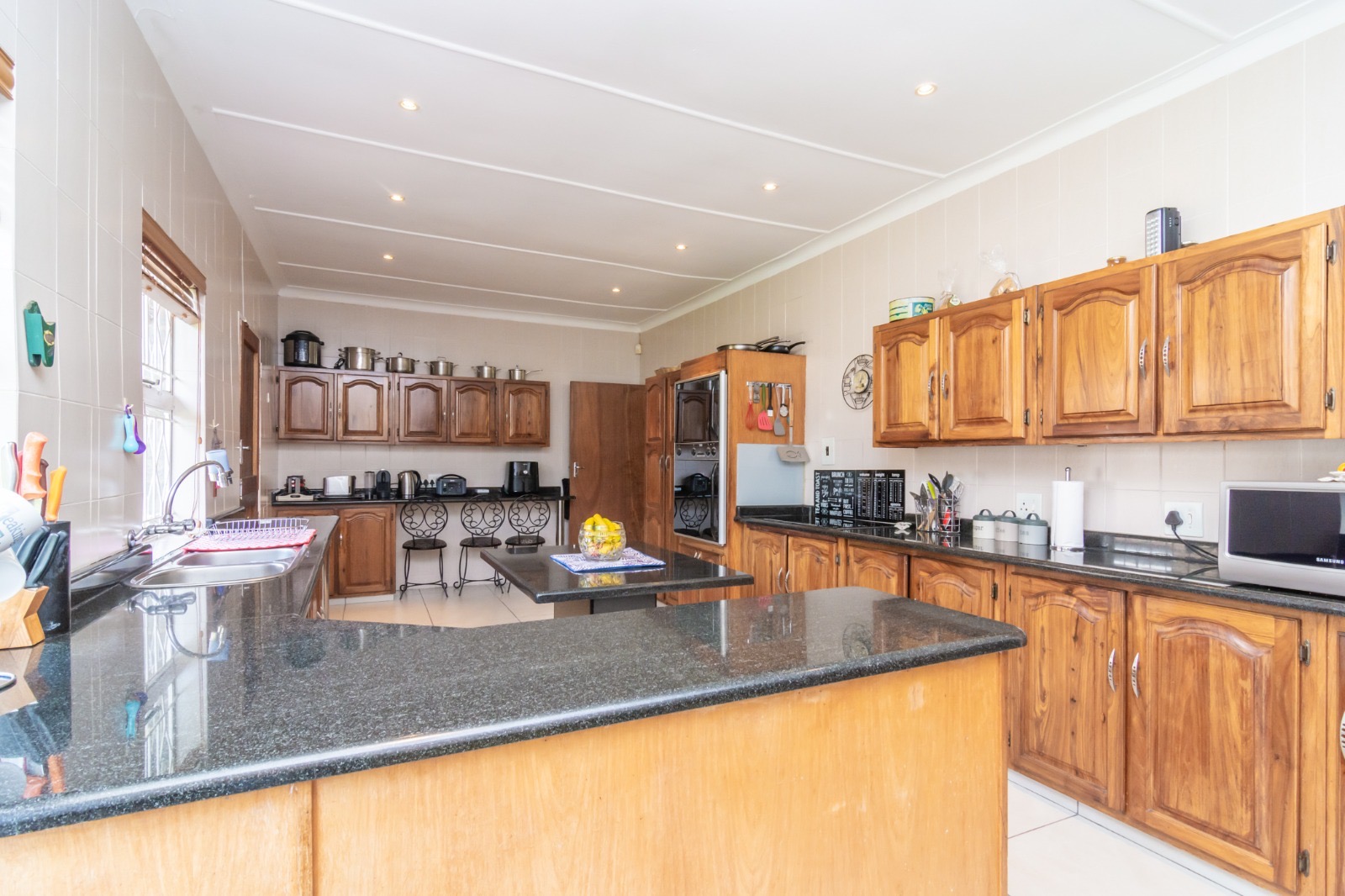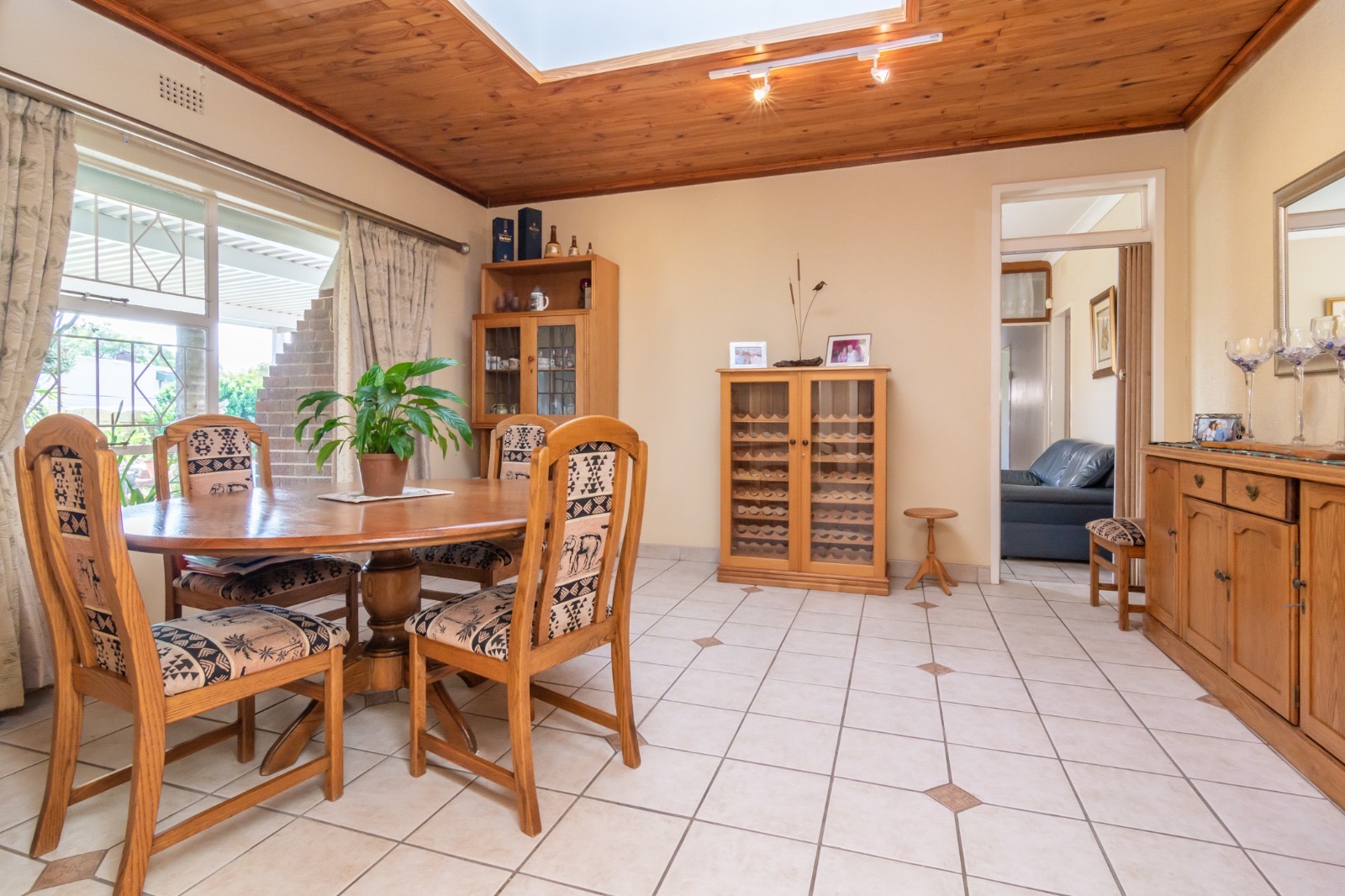 The landscaped garden wrapping around the property with a plant nursery, various cycads, palm trees, stone settings, will inspire every garden lover to add ideas. The covered, tiled patio area features a built-in-braai which overlooks the sparkling swimming pool in the back garden where you can easily entertain family and friends.