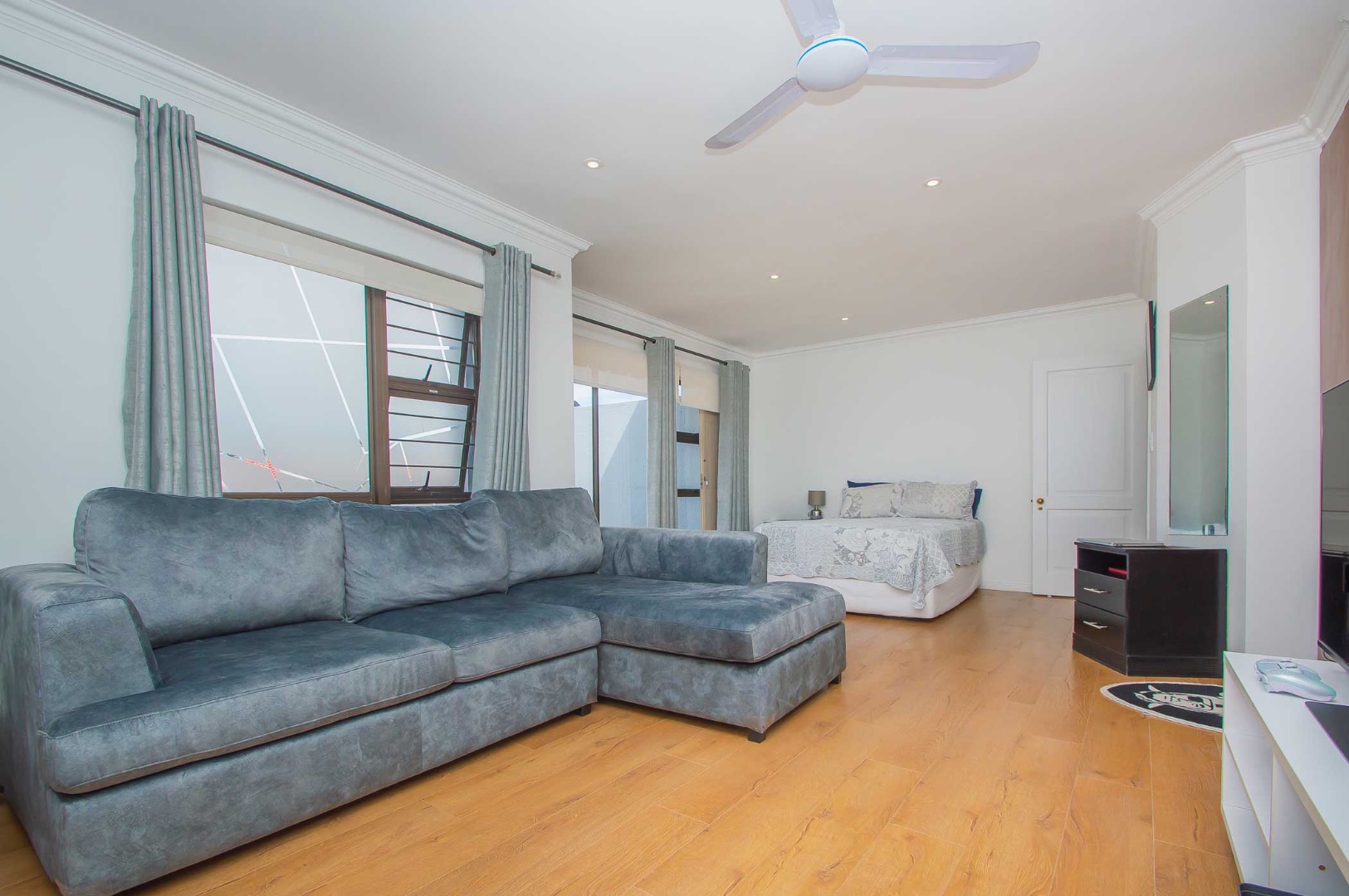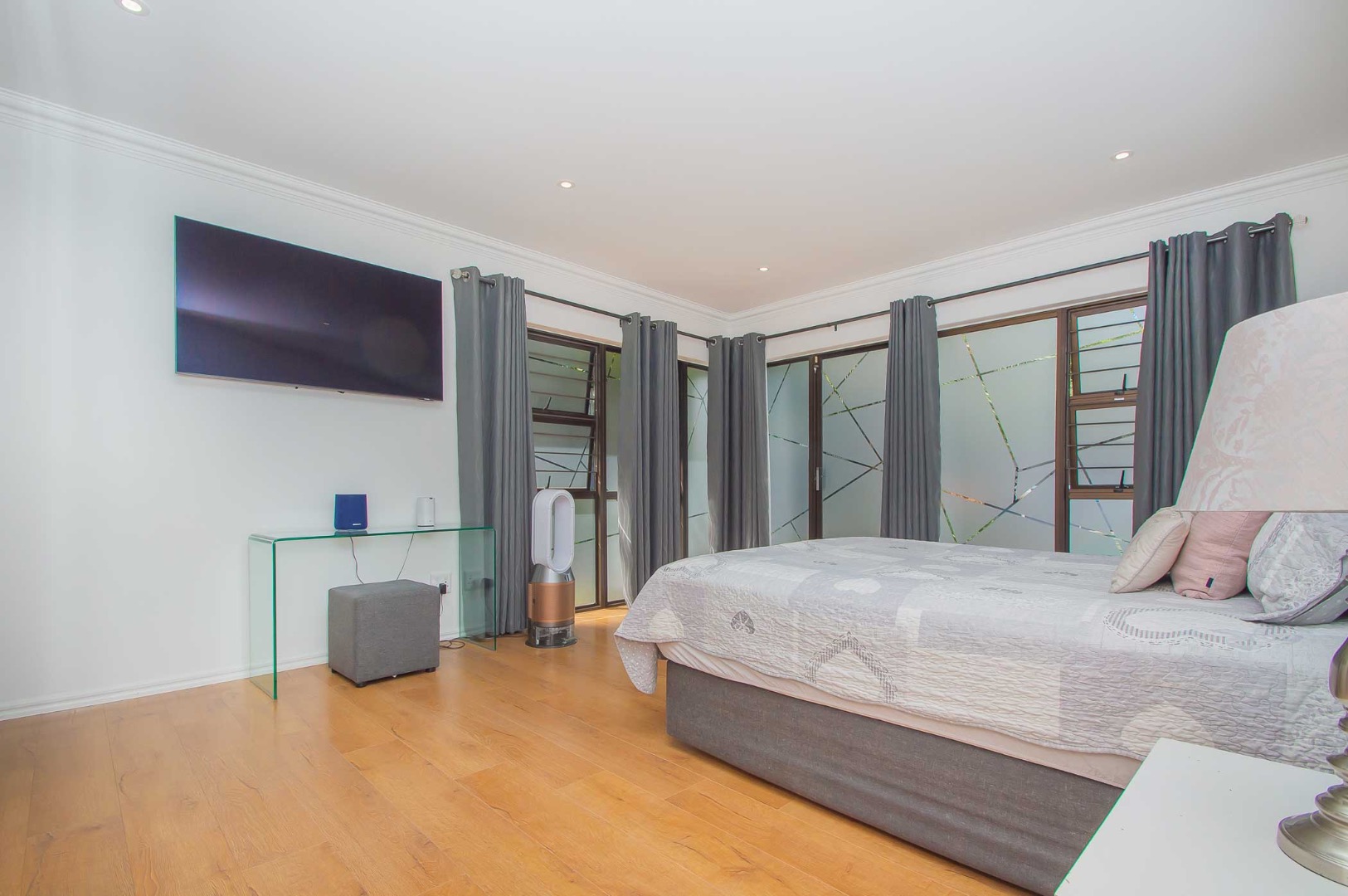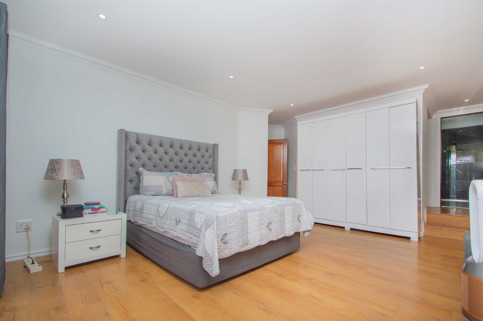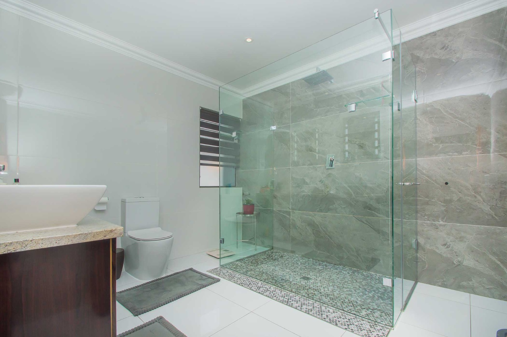 4 large, modern bedrooms, each featuring downlighting, contemporary cornices and trim, and built-in cupboards (main features walk-in closet). Upstairs, the double-volume retreat awaits complete with a pajama lounge, space for a king-sized bed, and access to a secluded balcony fitted with a retractable awning offering stunning views.