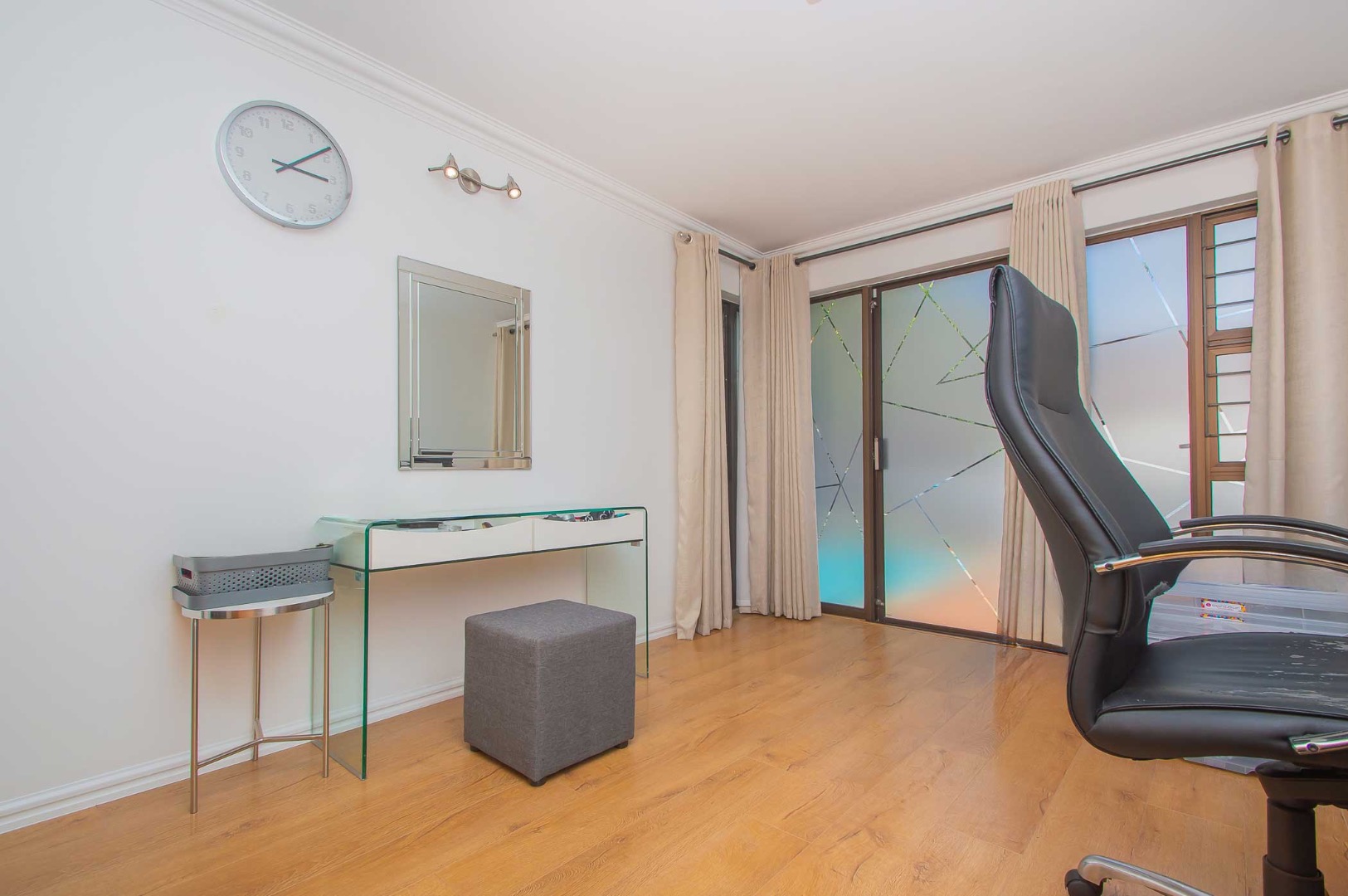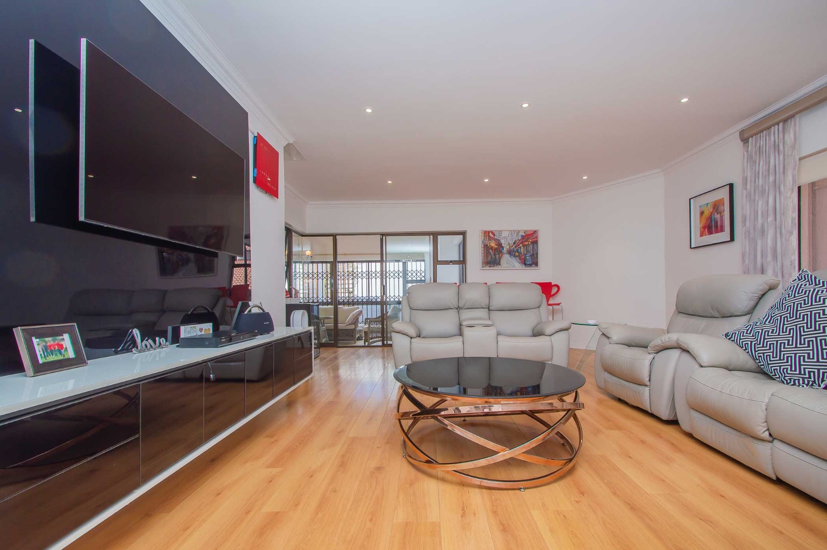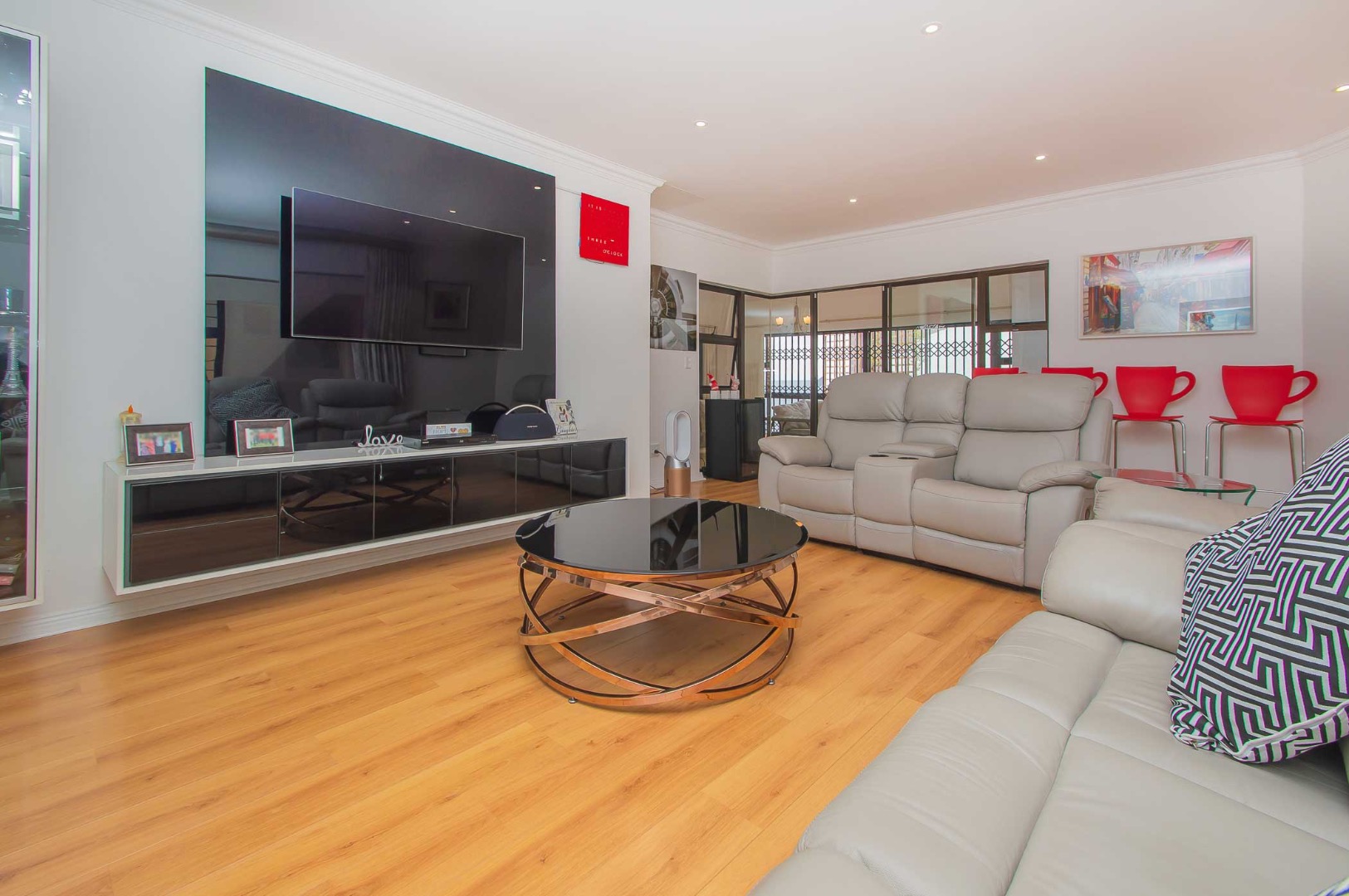 4 large, modern bedrooms, each featuring downlighting, contemporary cornices and trim, and built-in cupboards (main features walk-in closet). Upstairs, the double-volume retreat awaits complete with a pajama lounge, space for a king-sized bed, and access to a secluded balcony fitted with a retractable awning offering stunning views.